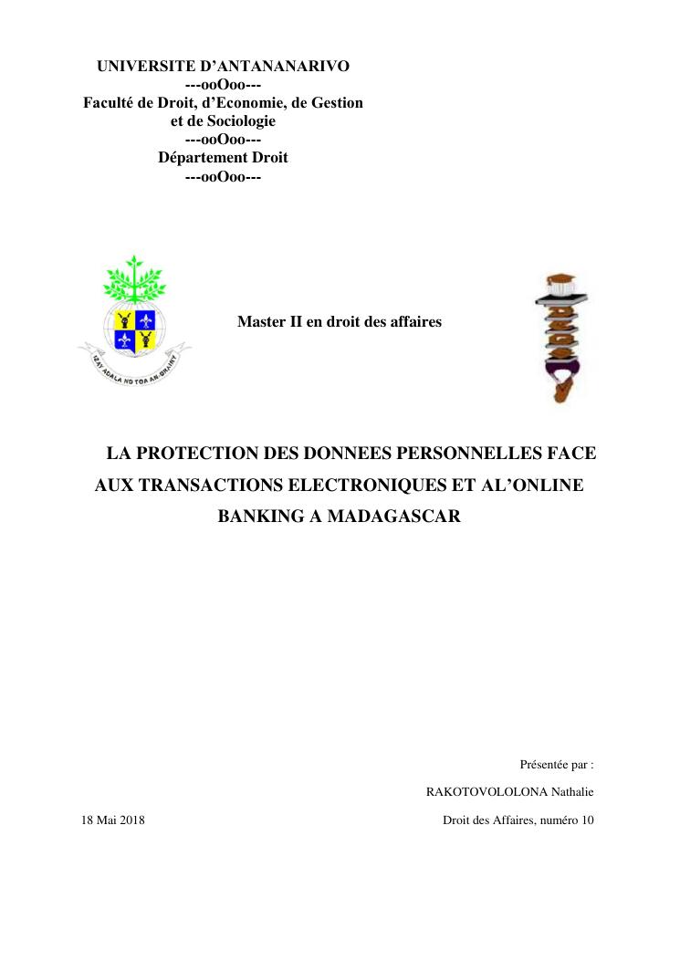 la protection des donnees personnelles face aux transactions electroniques et al'online banking a madagascar
