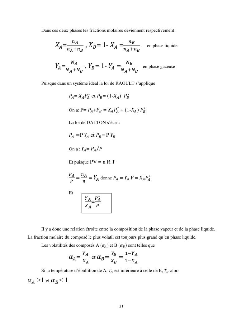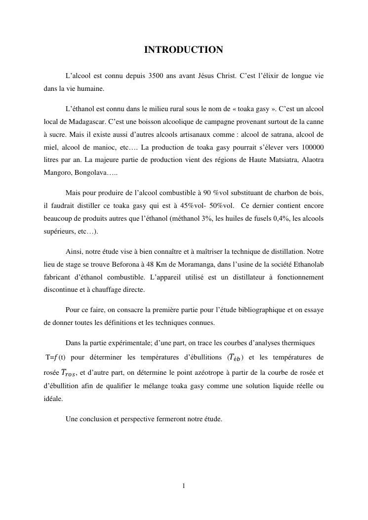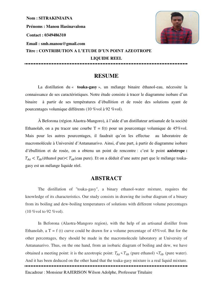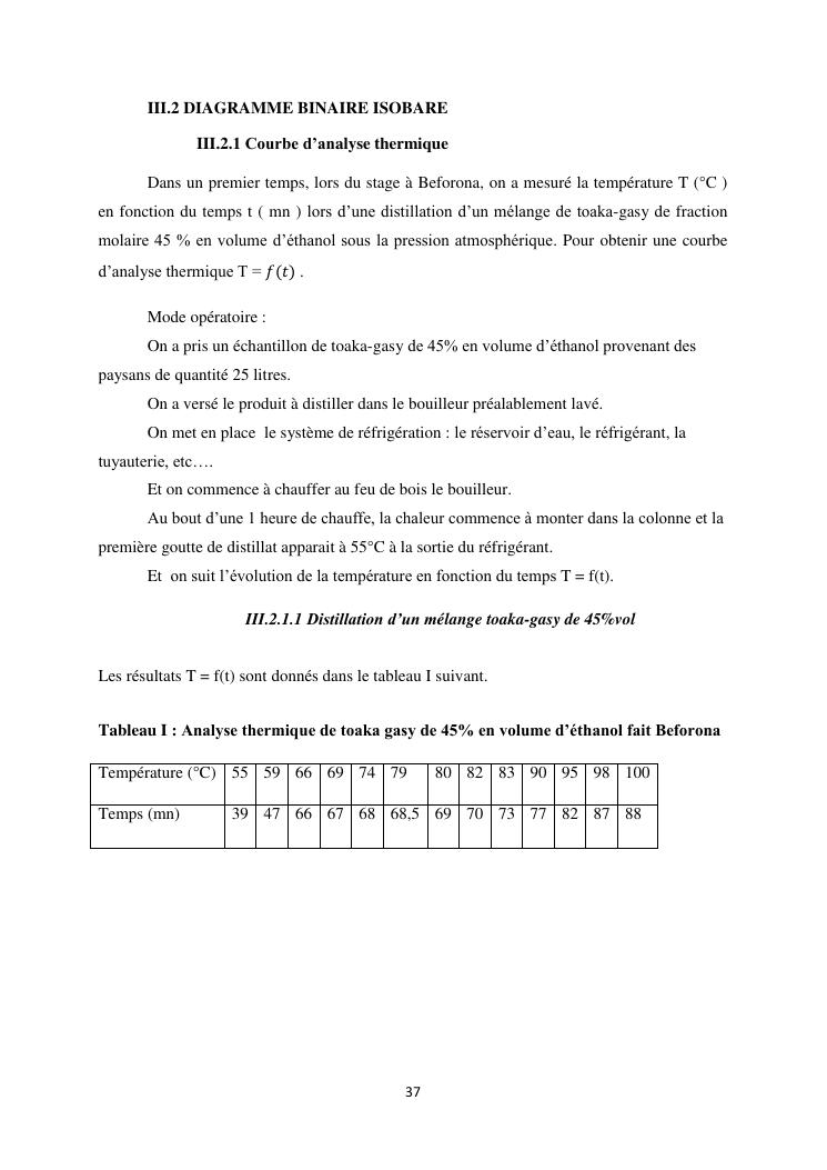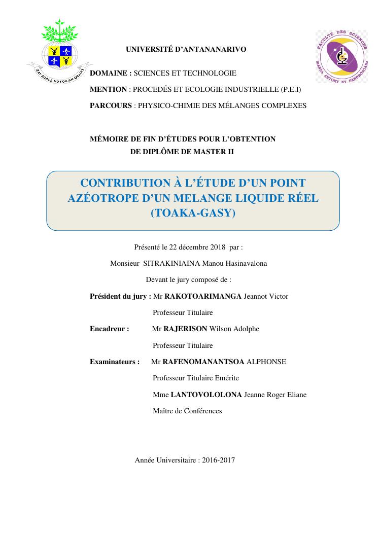 contribution à l'étude d'un point azéotrope d'un melange liquide réel (toaka-gasy)