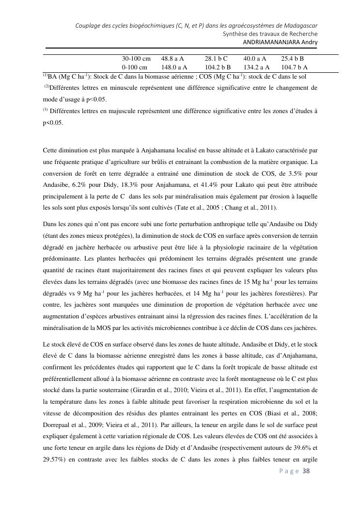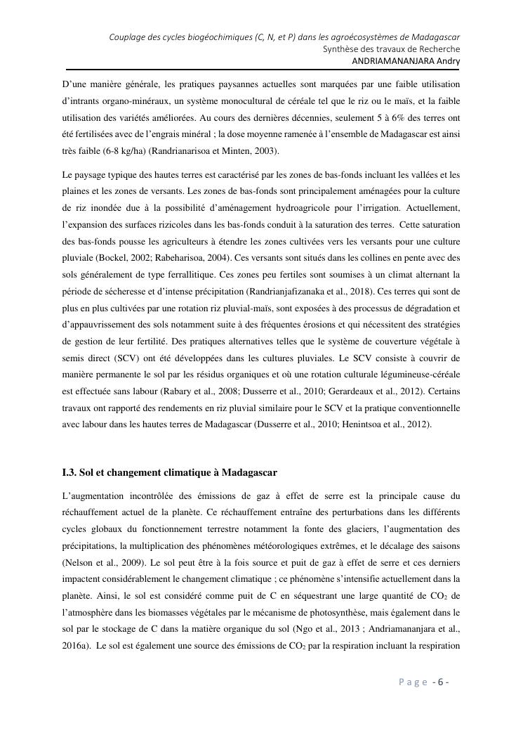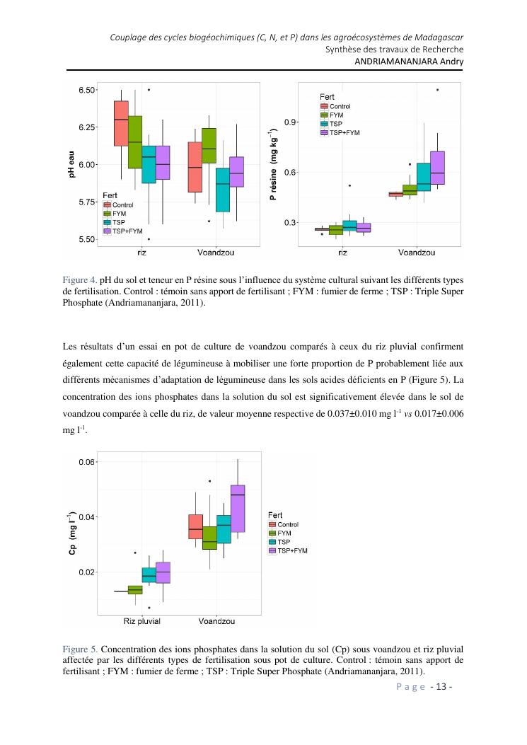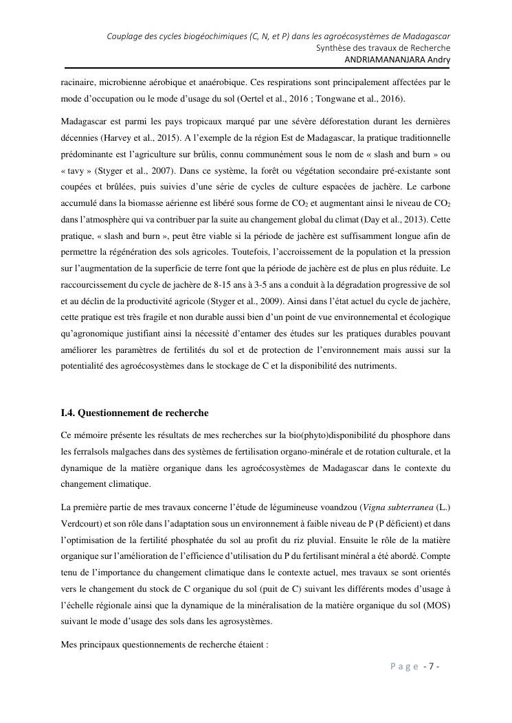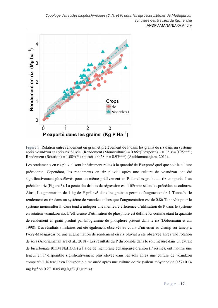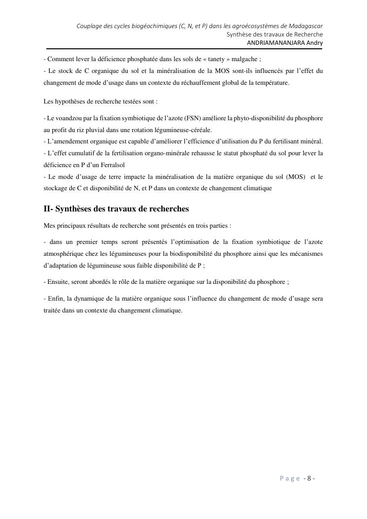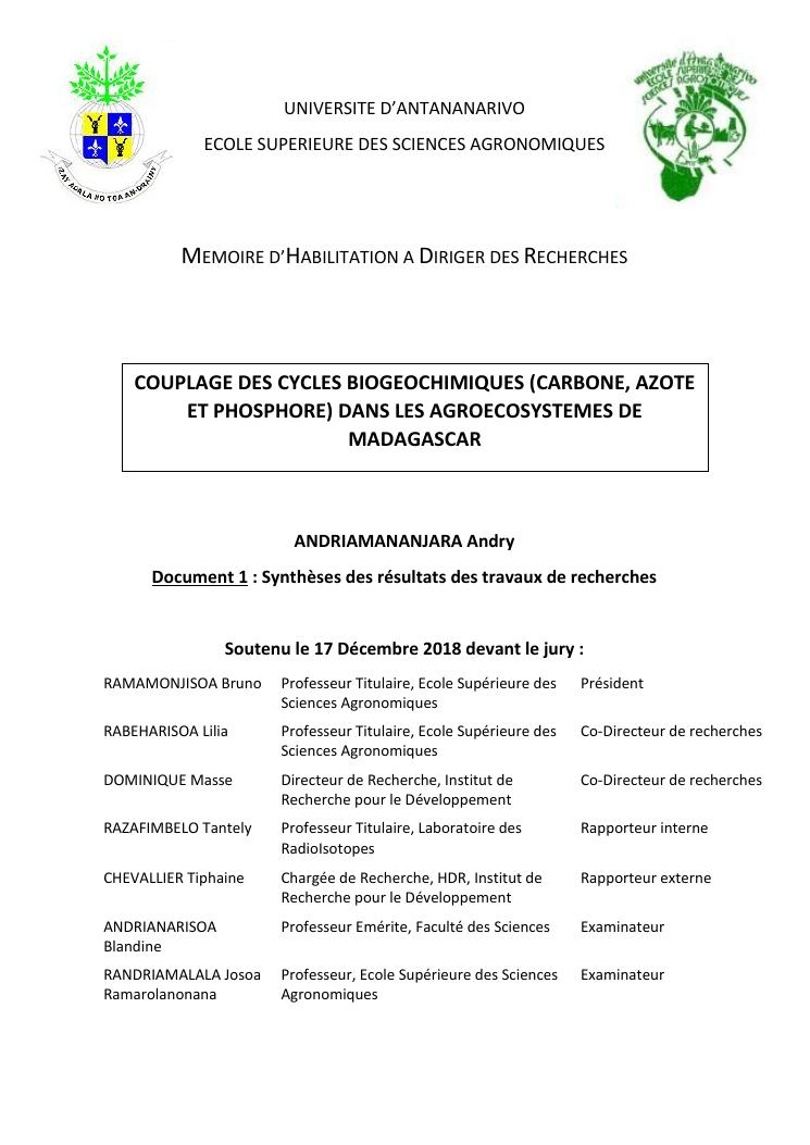 couplage des cycles biogeochimiques (carbone, azote et phosphore) dans les agroecosystemes de madagascar. document 1 : synthèses des résultats des travaux de recherches