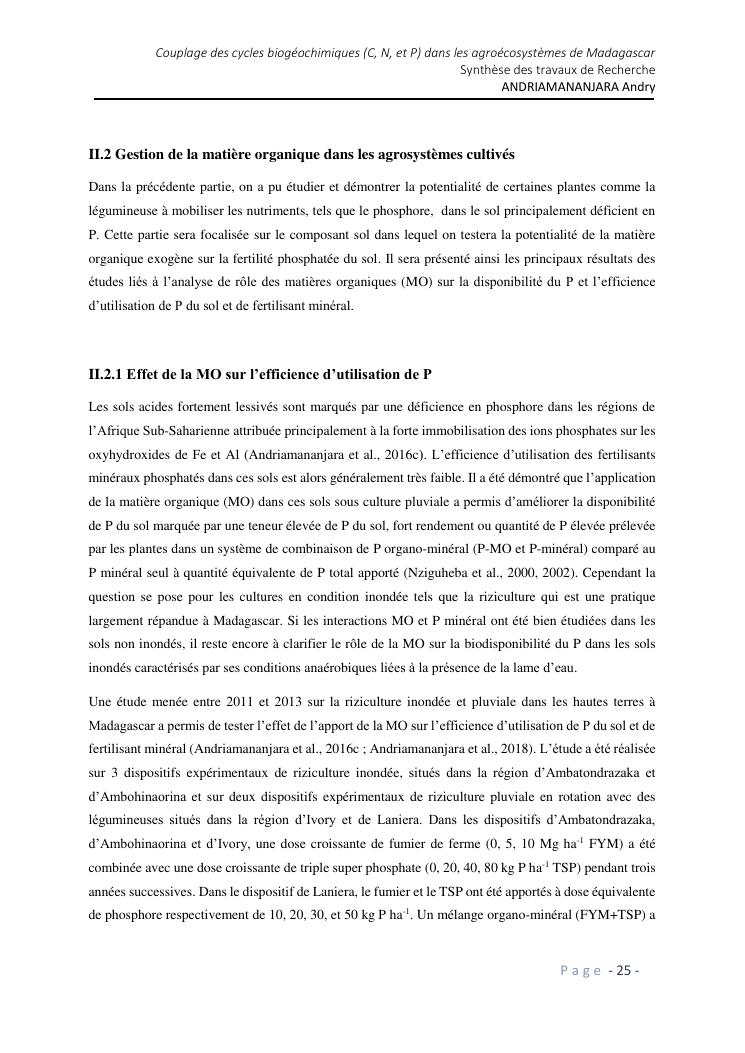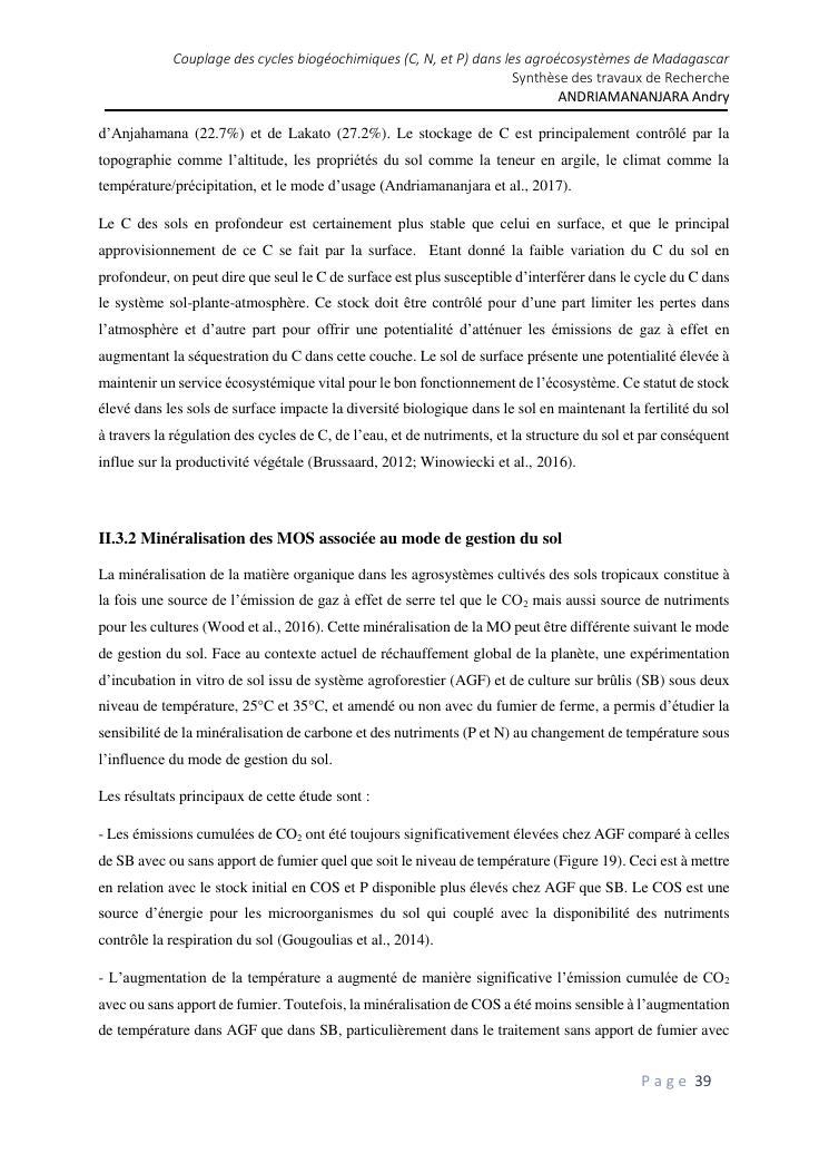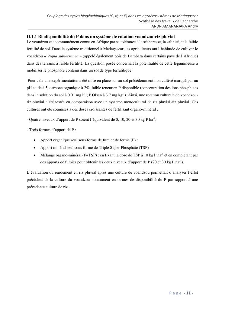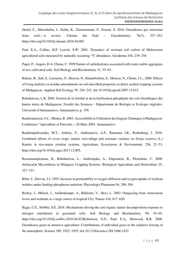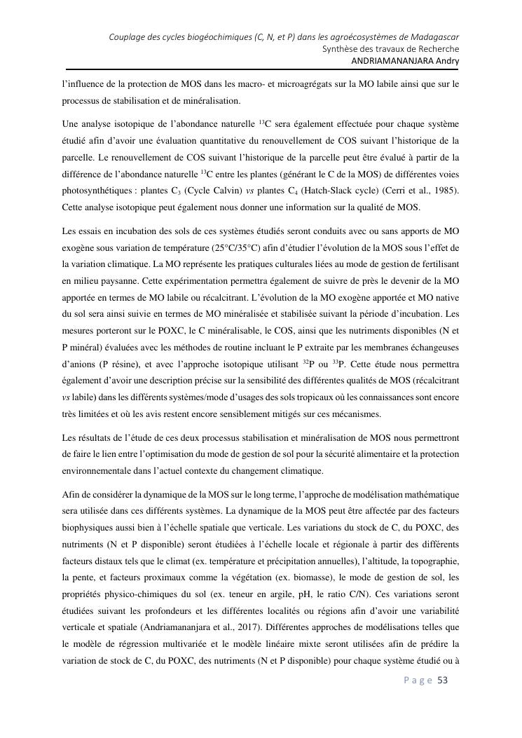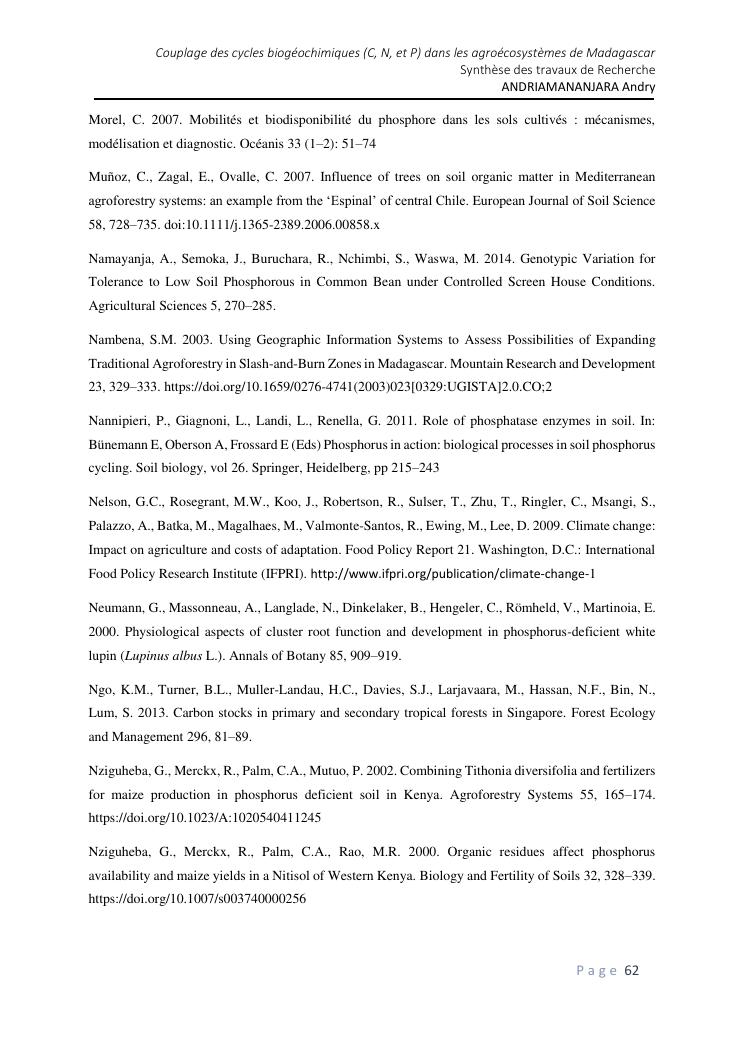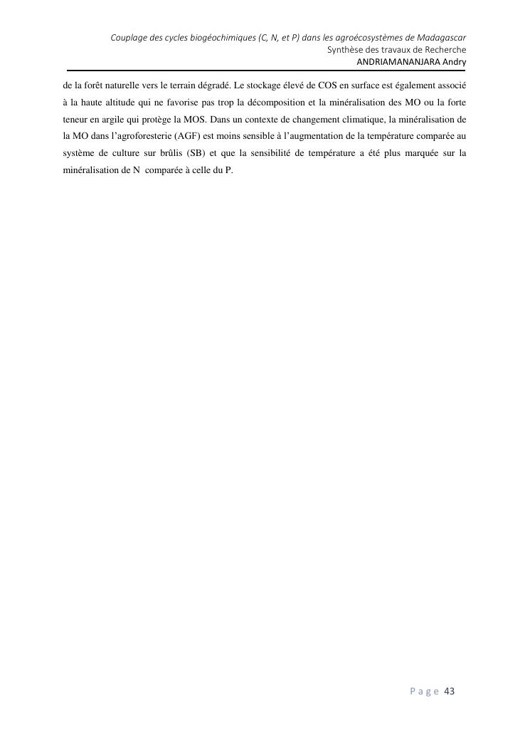 couplage des cycles biogeochimiques (carbone, azote et phosphore) dans les agroecosystemes de madagascar. document 1 : synthèses des résultats des travaux de recherches