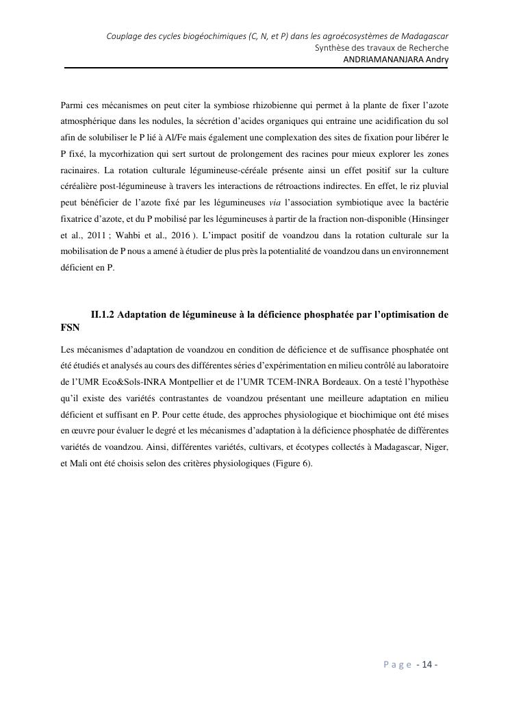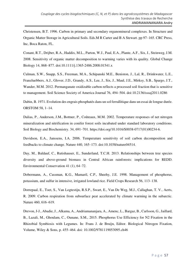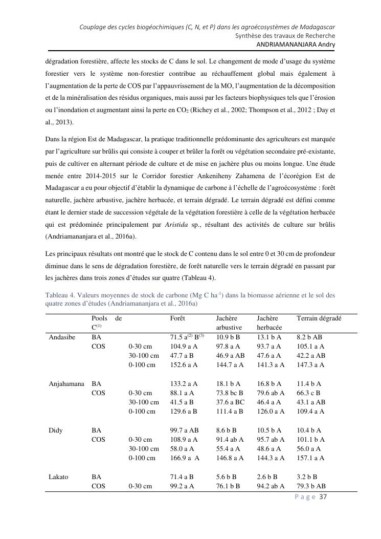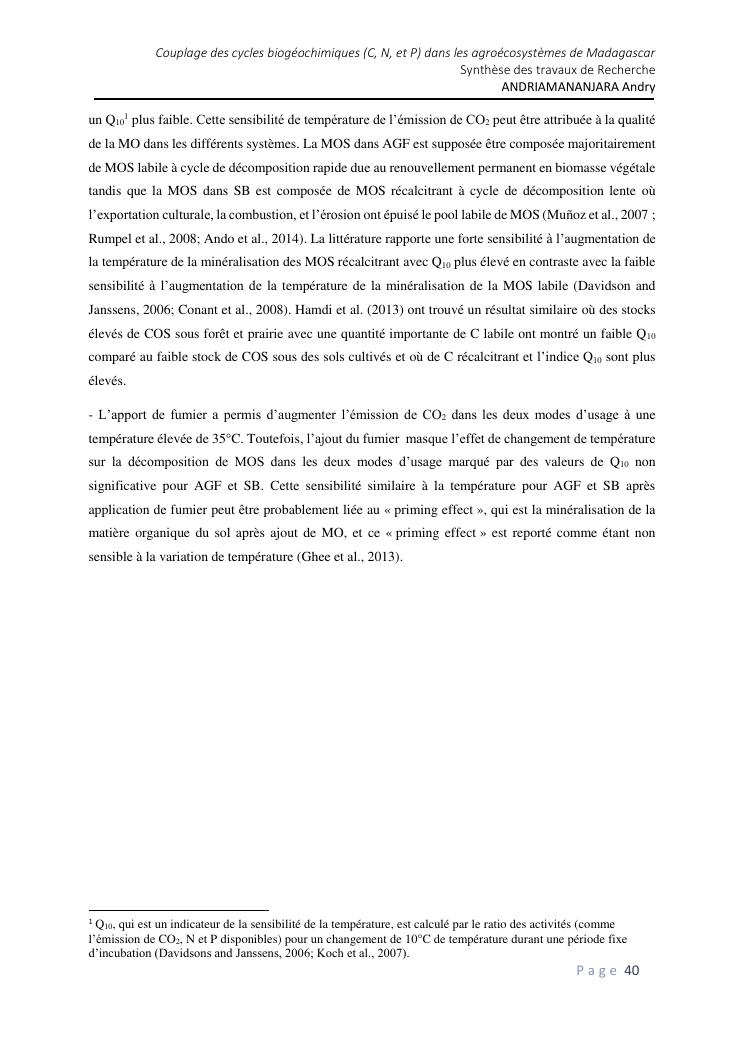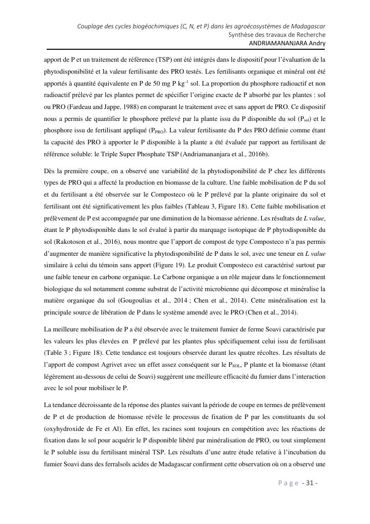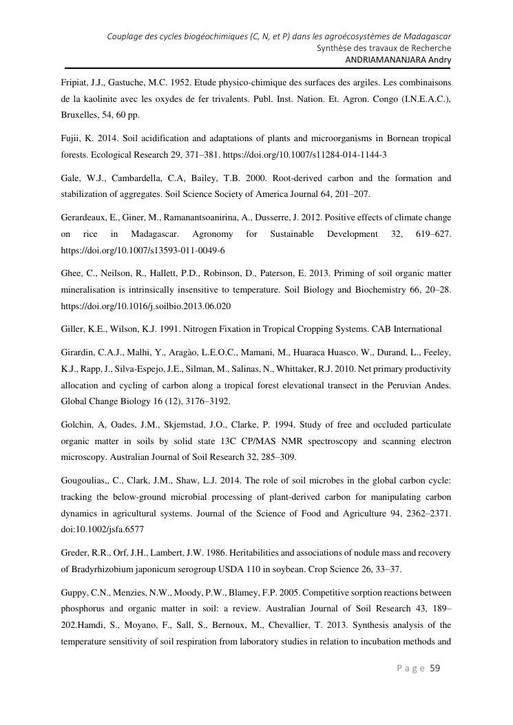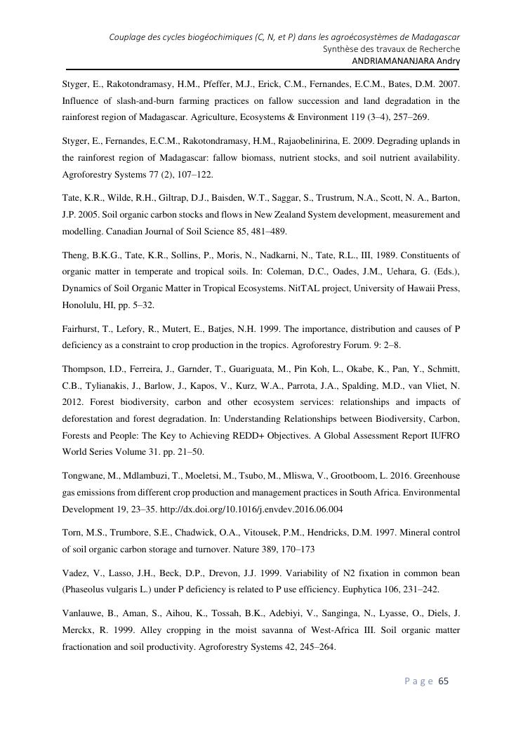 couplage des cycles biogeochimiques (carbone, azote et phosphore) dans les agroecosystemes de madagascar. document 1 : synthèses des résultats des travaux de recherches
