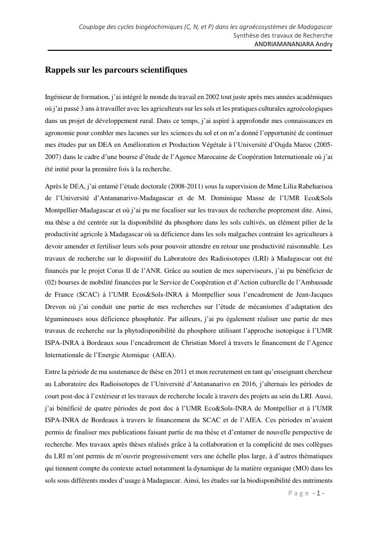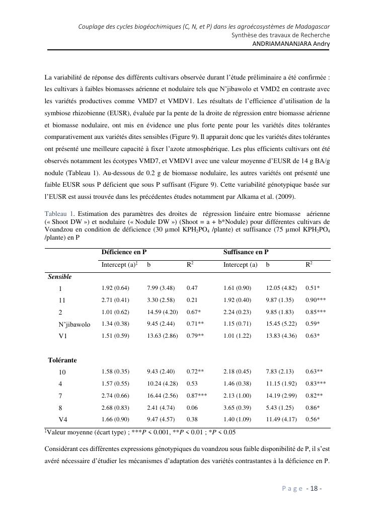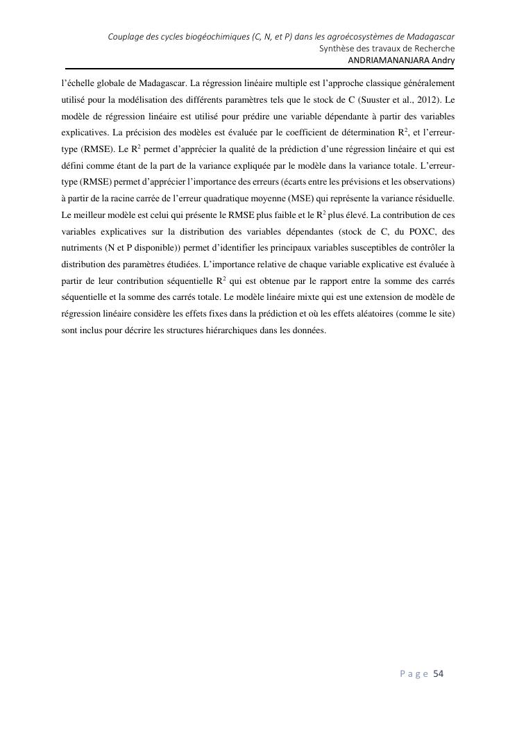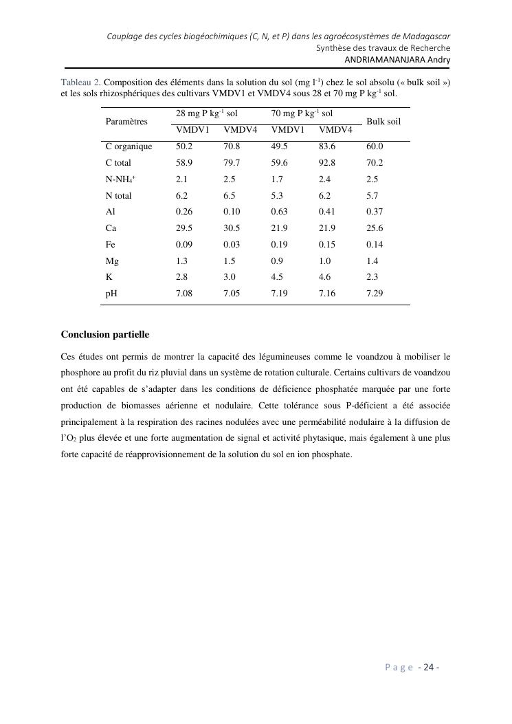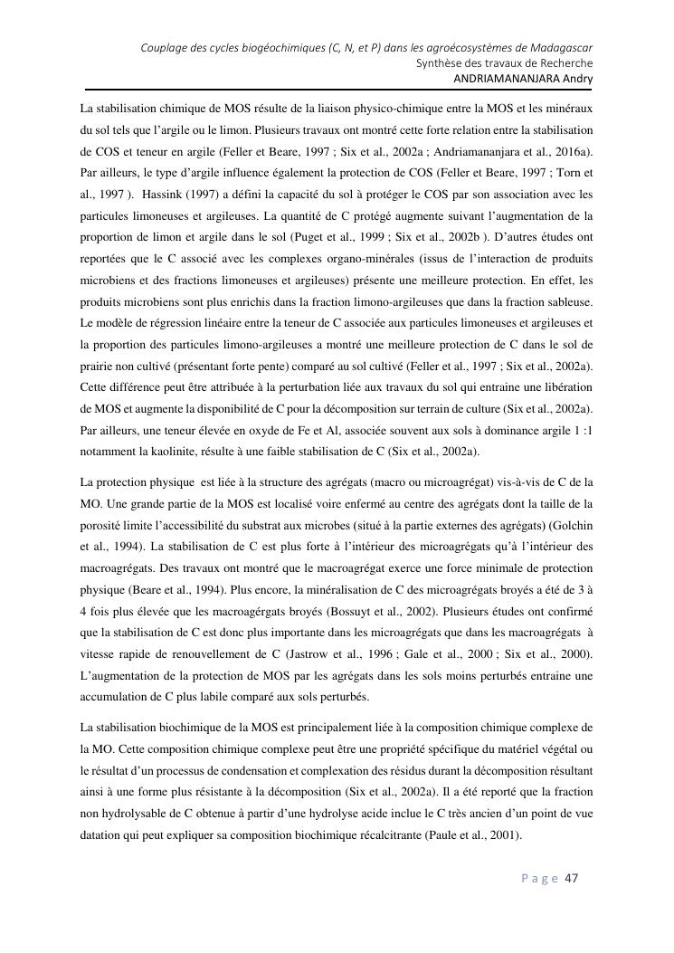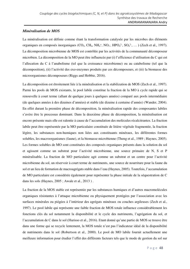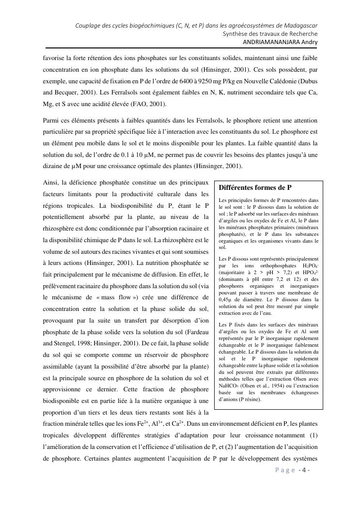couplage des cycles biogeochimiques (carbone, azote et phosphore) dans les agroecosystemes de madagascar. document 1 : synthèses des résultats des travaux de recherches