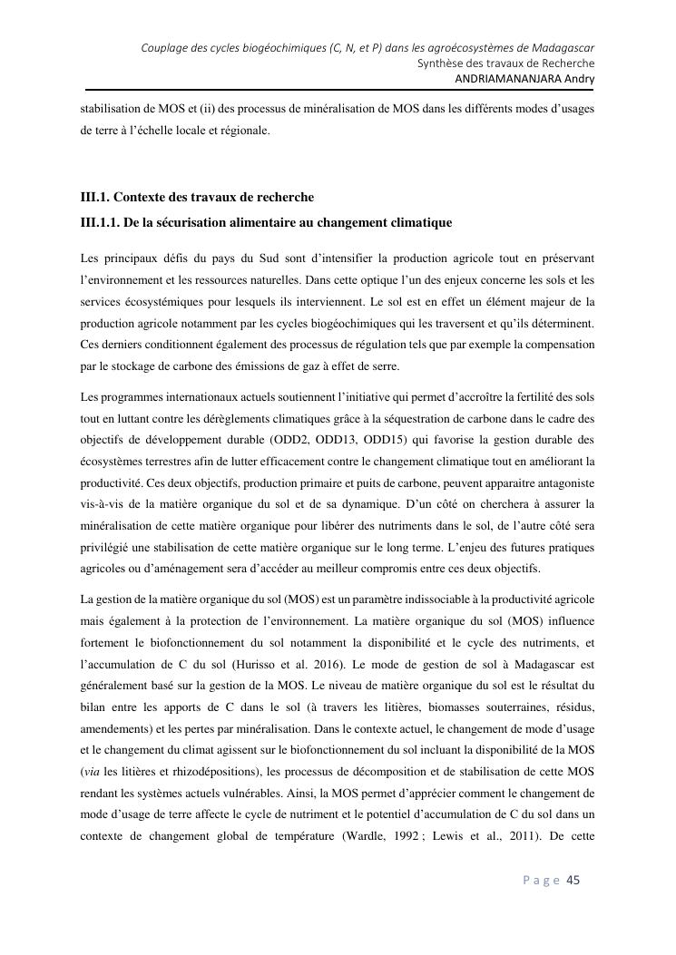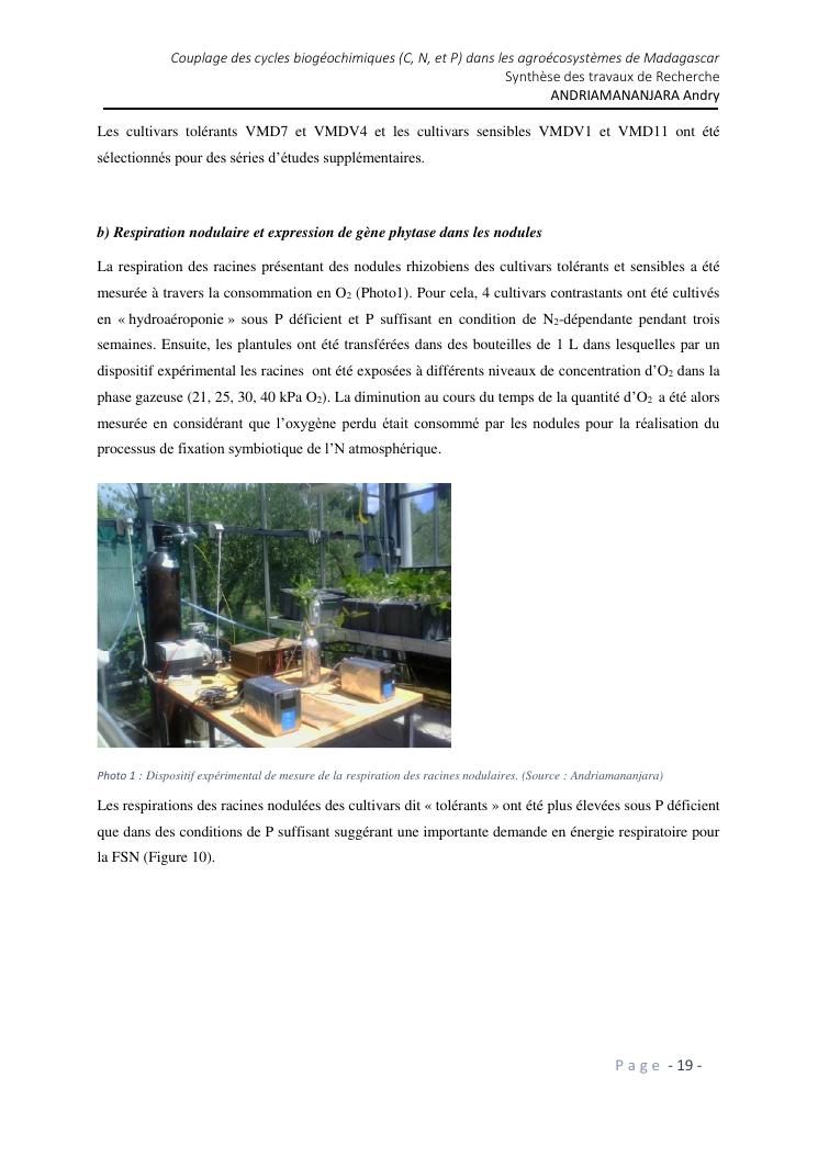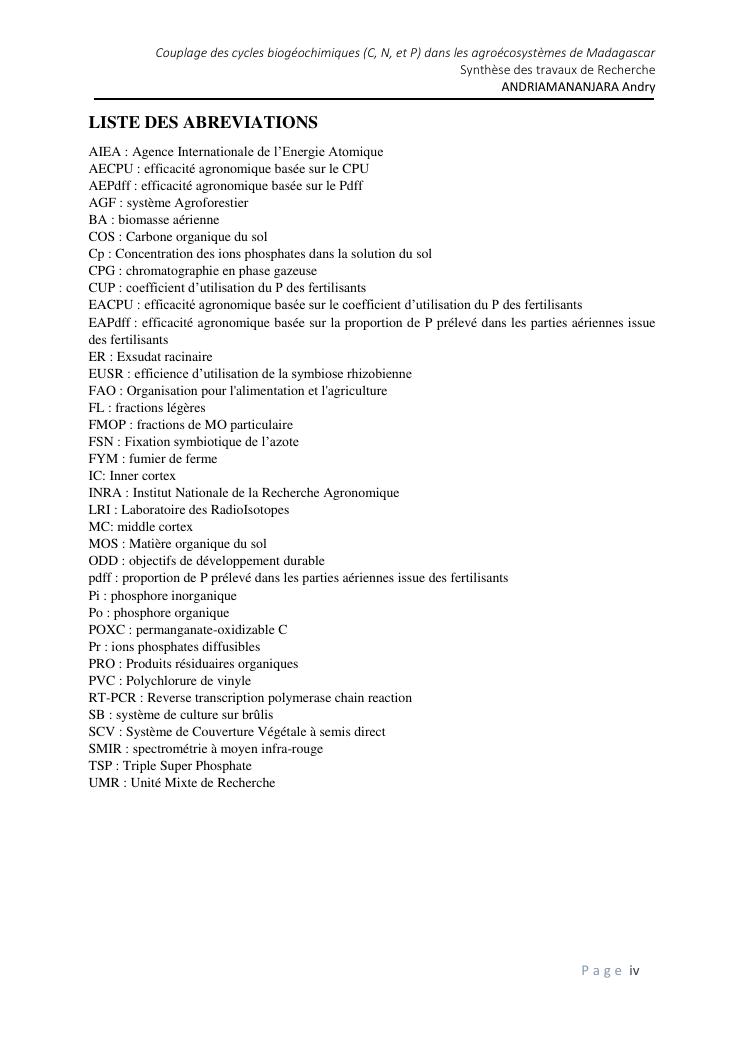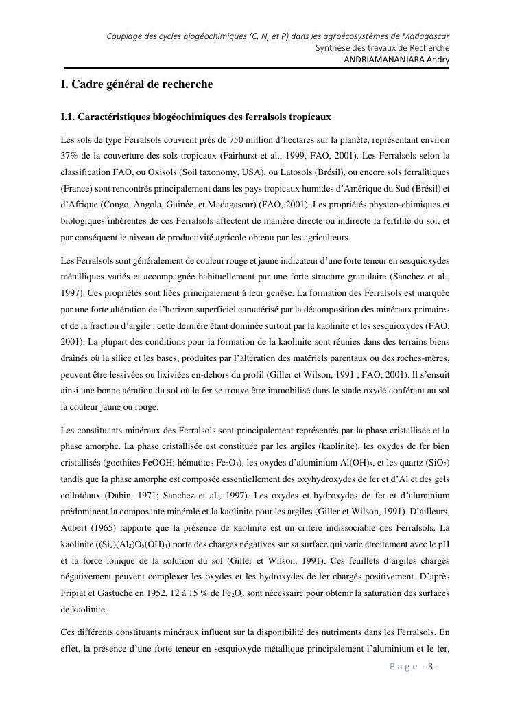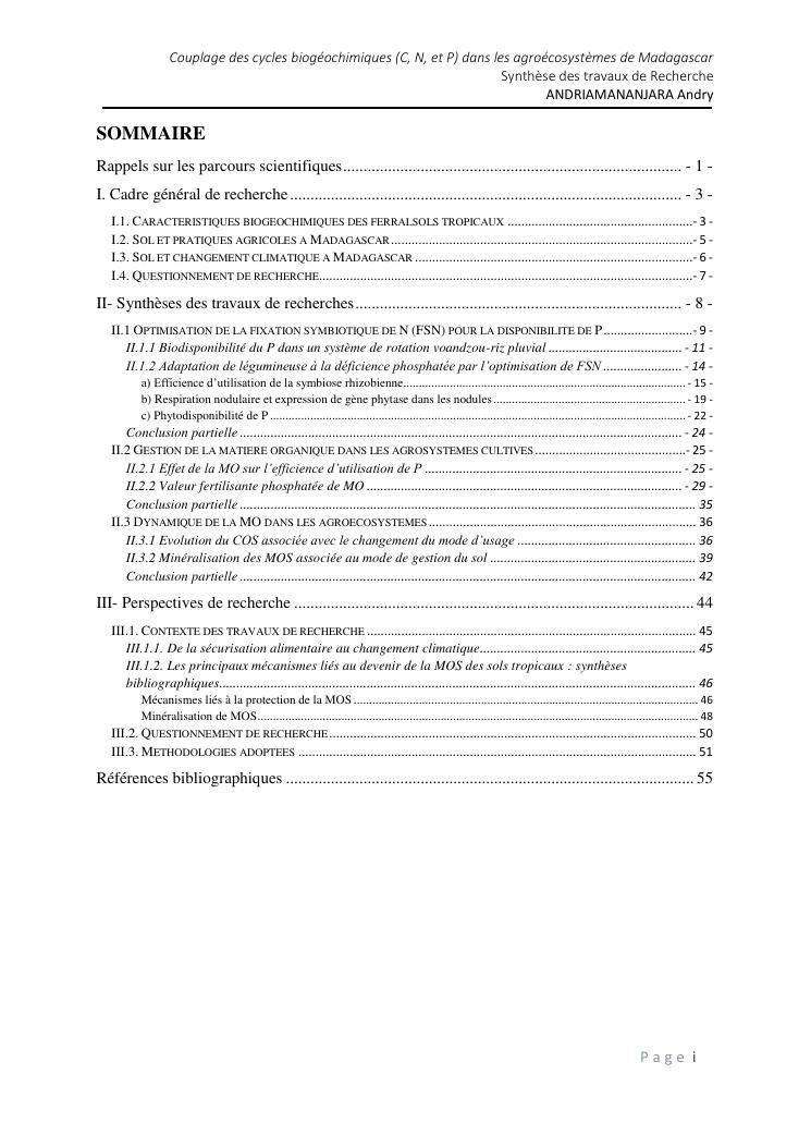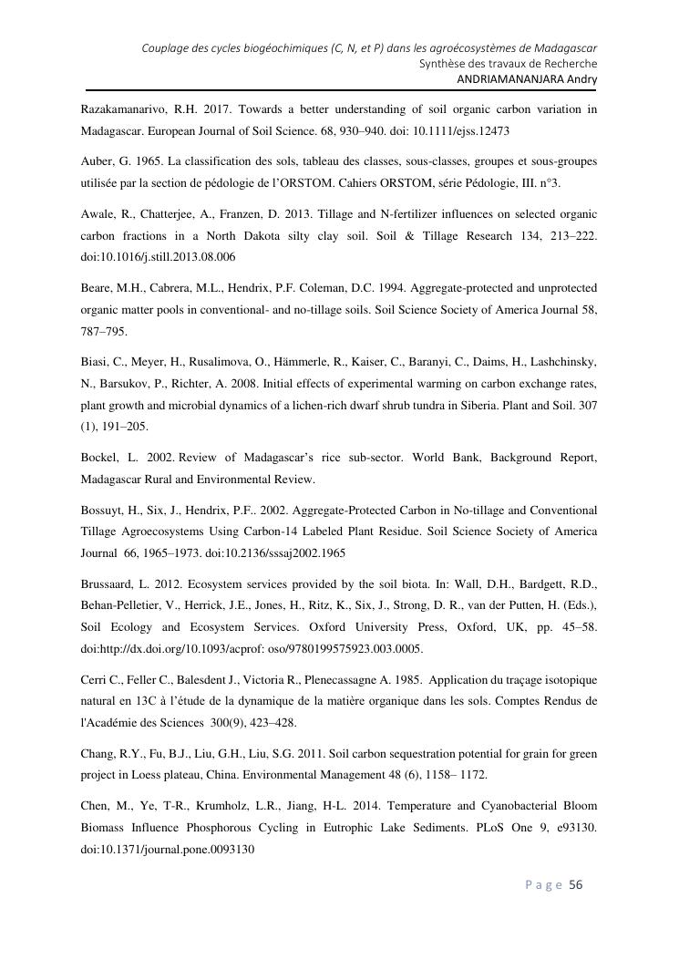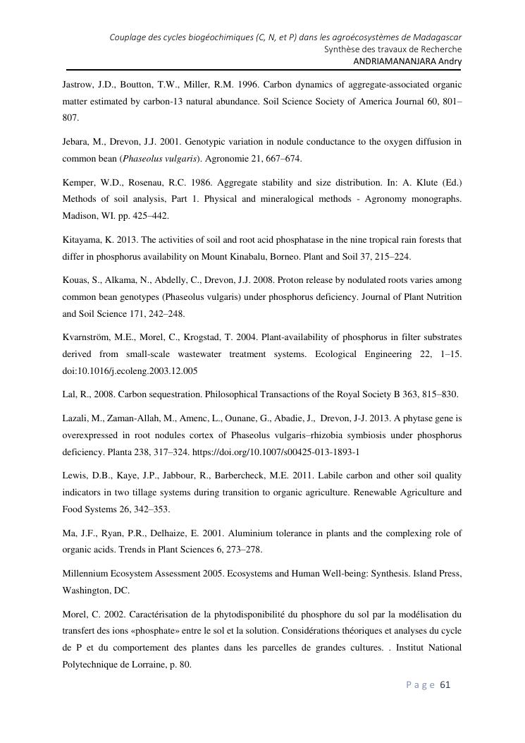 couplage des cycles biogeochimiques (carbone, azote et phosphore) dans les agroecosystemes de madagascar. document 1 : synthèses des résultats des travaux de recherches