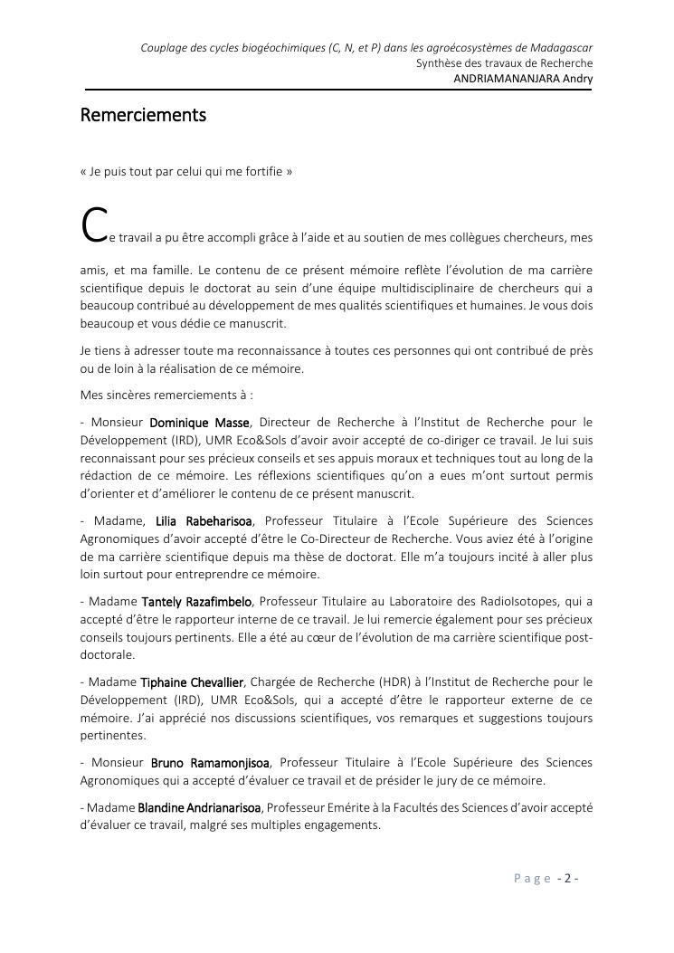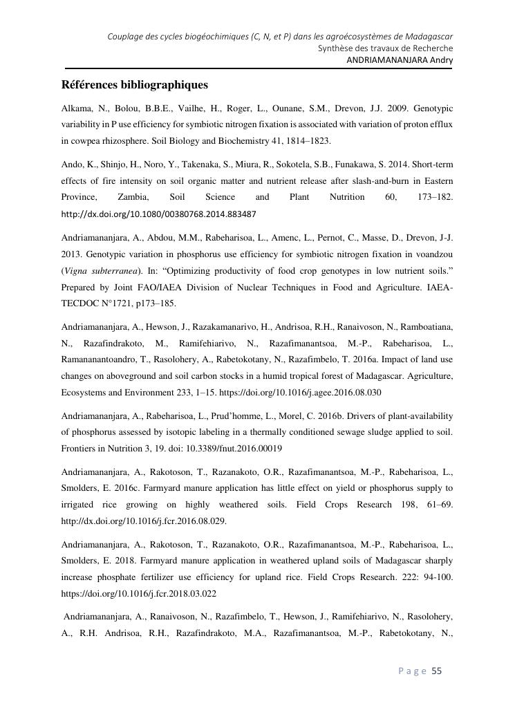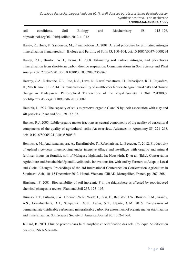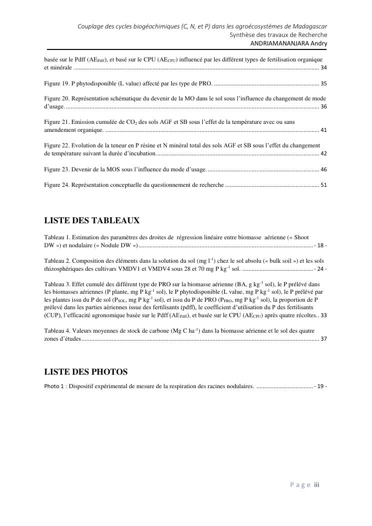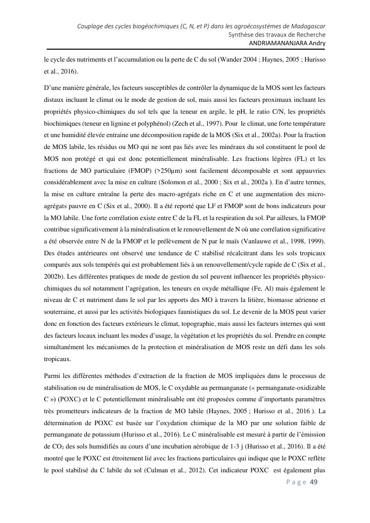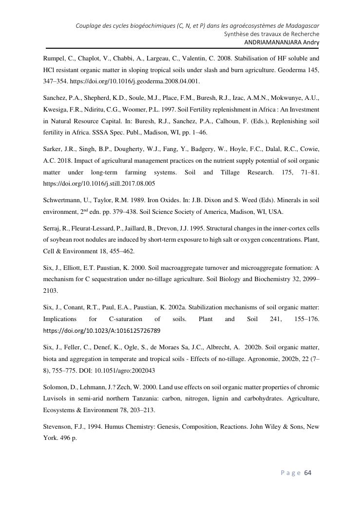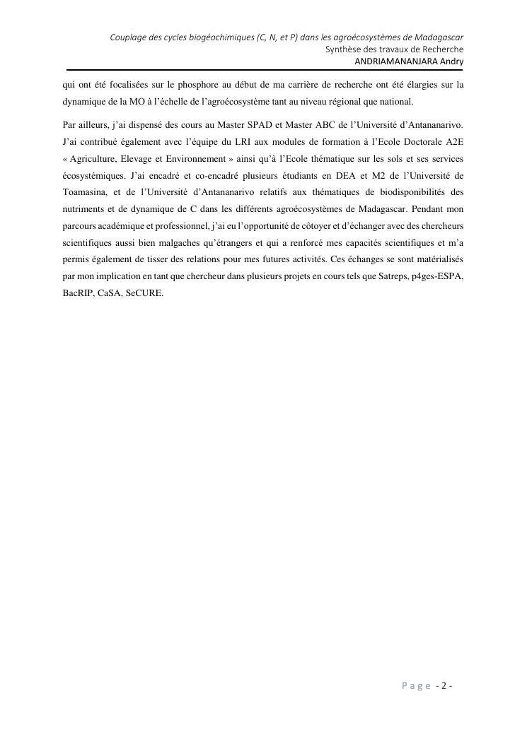 couplage des cycles biogeochimiques (carbone, azote et phosphore) dans les agroecosystemes de madagascar. document 1 : synthèses des résultats des travaux de recherches