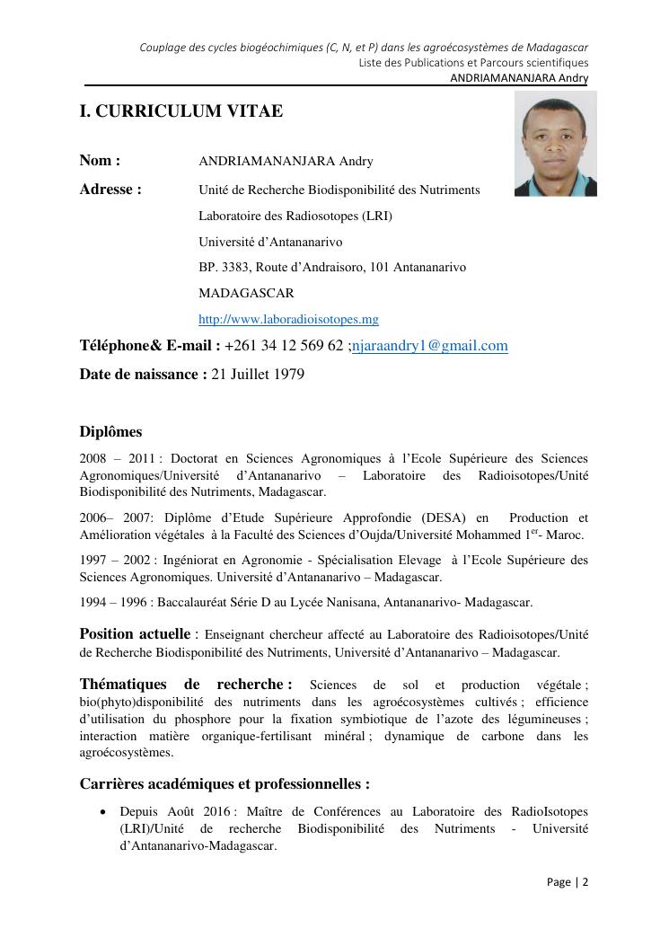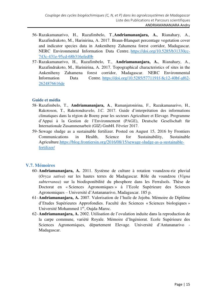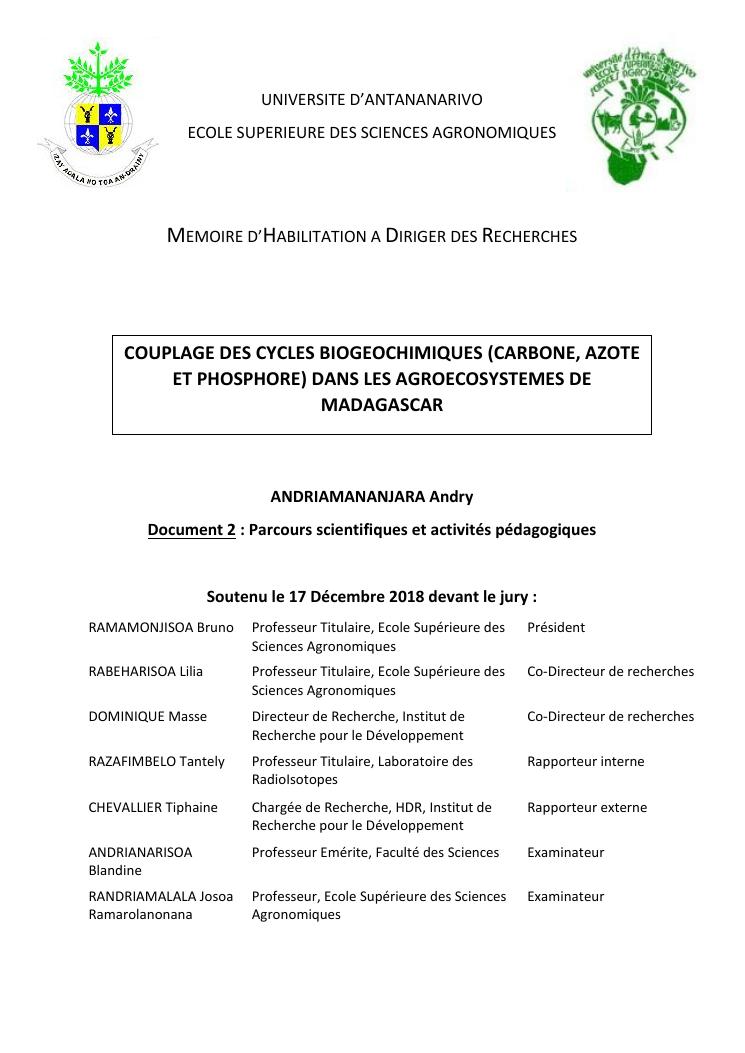 couplage des cycles biogeochimiques (carbone, azote et phosphore) dans les agroecosystemes de madagascar. document 2 : parcours scientifiques et activités pédagogiques