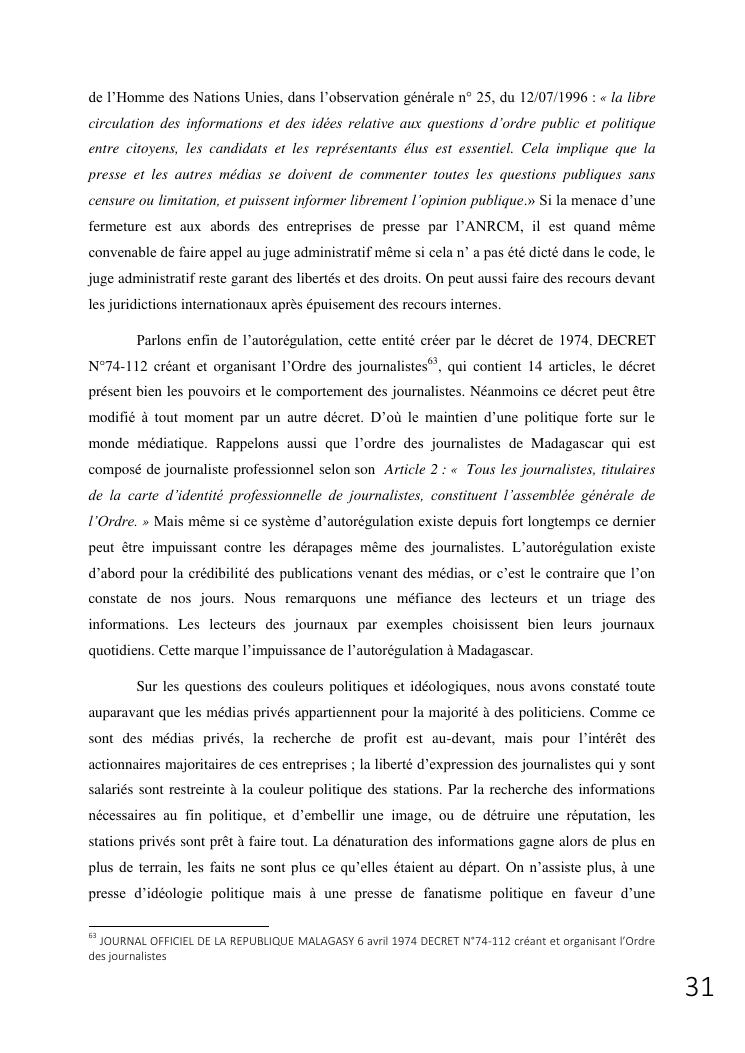 la liberté des médias à madagascar : entre règlementation, régulation et autorégulation