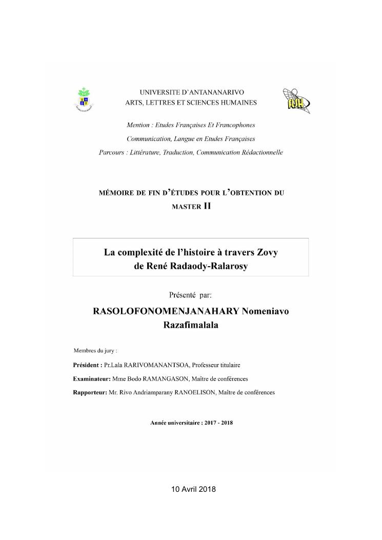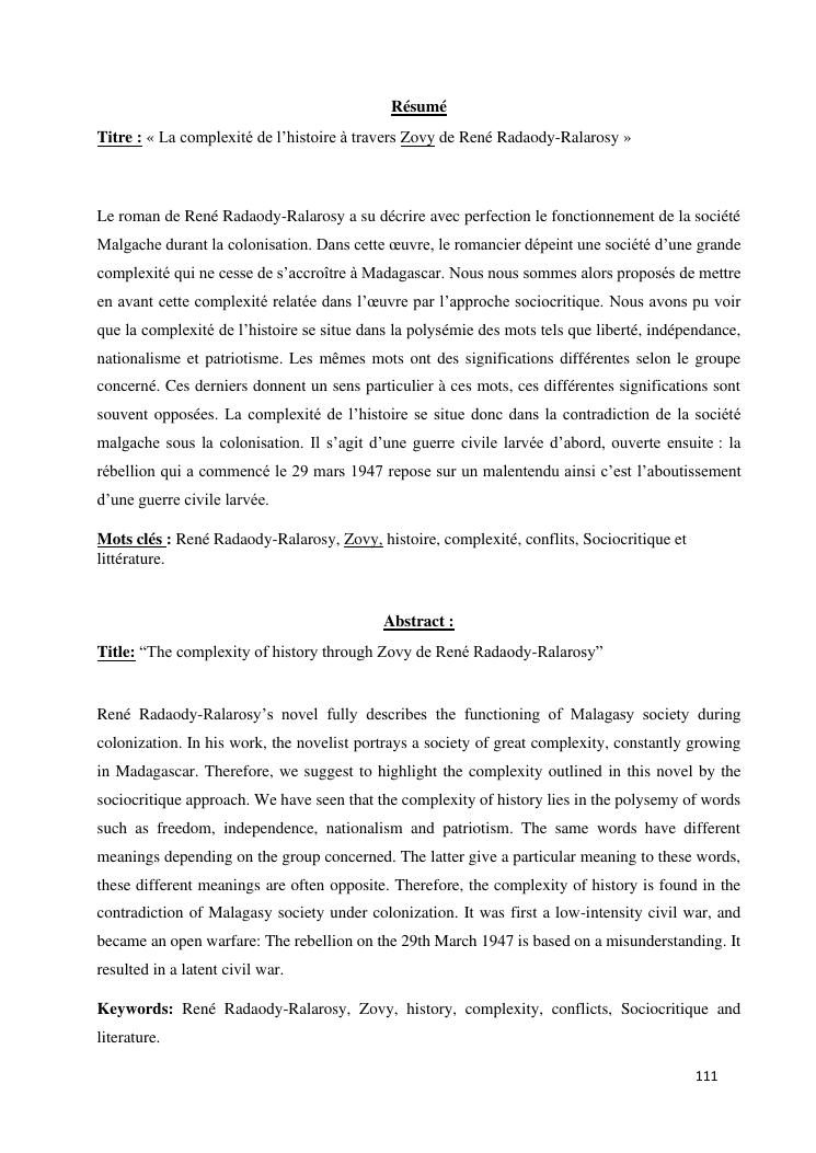 la complexité de l'histoire à travers zovy de rené radaody-ralarosy