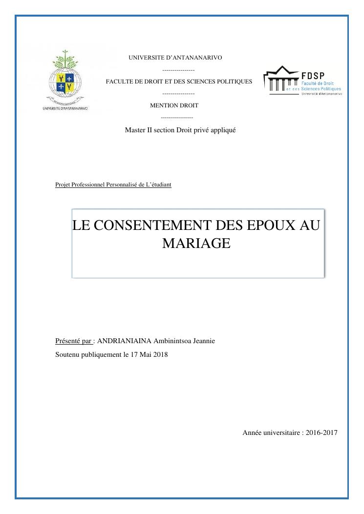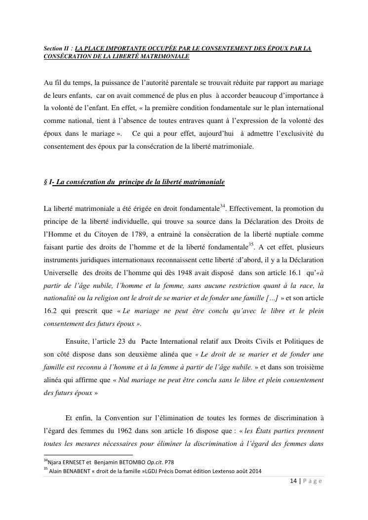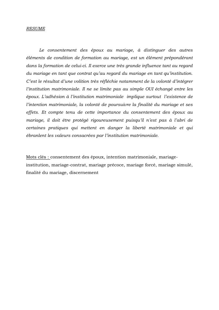 le consentement des epoux au mariage