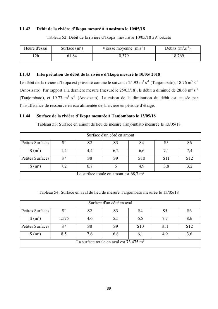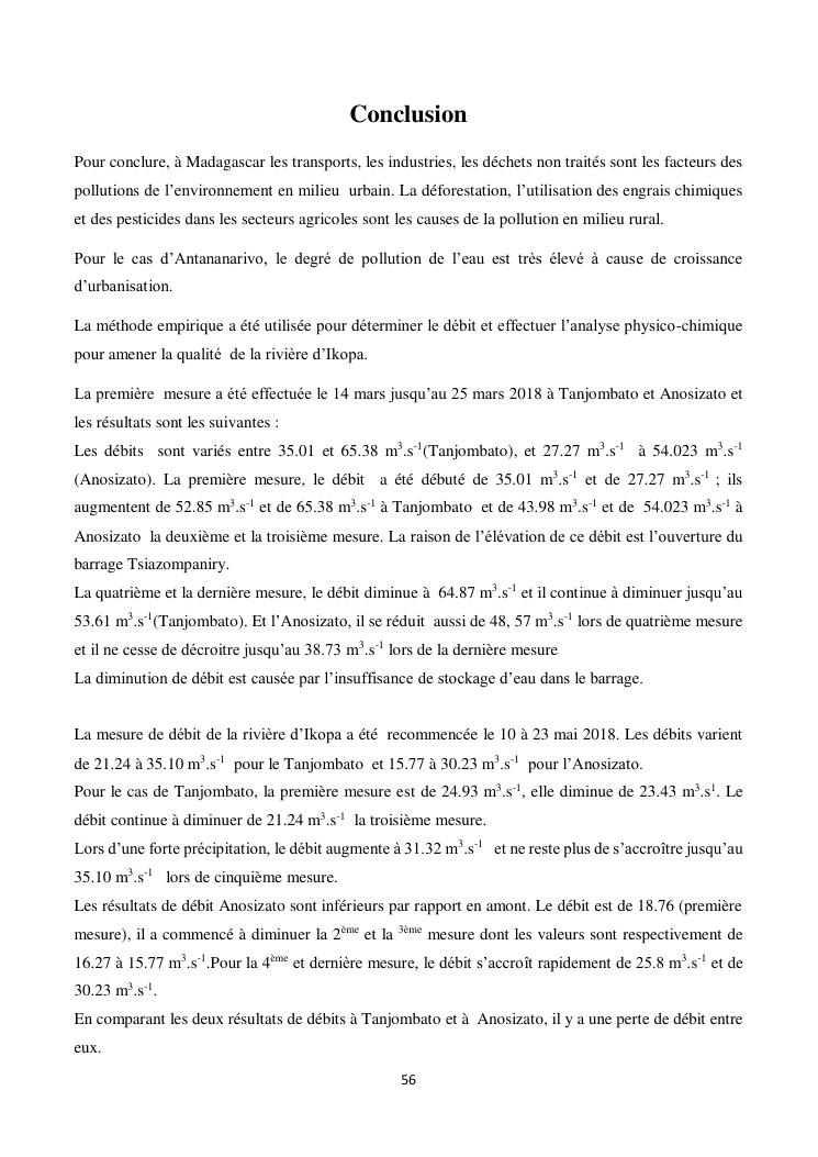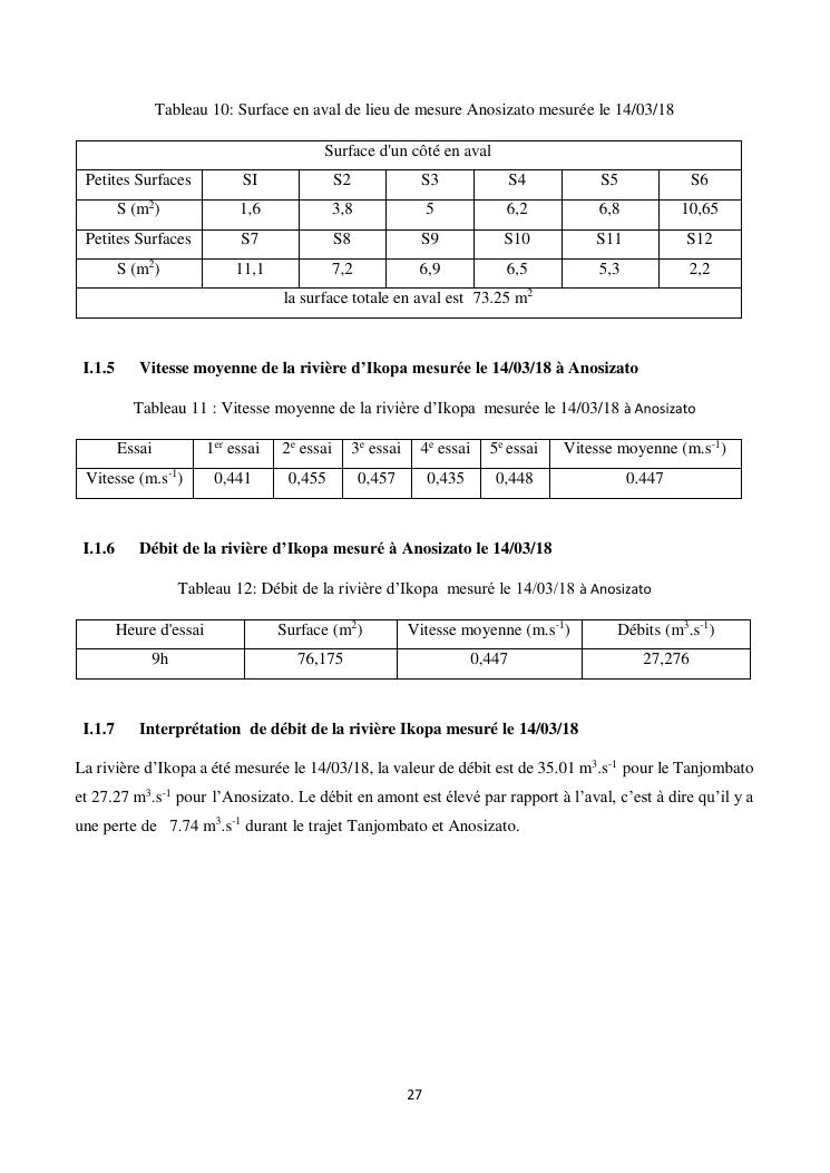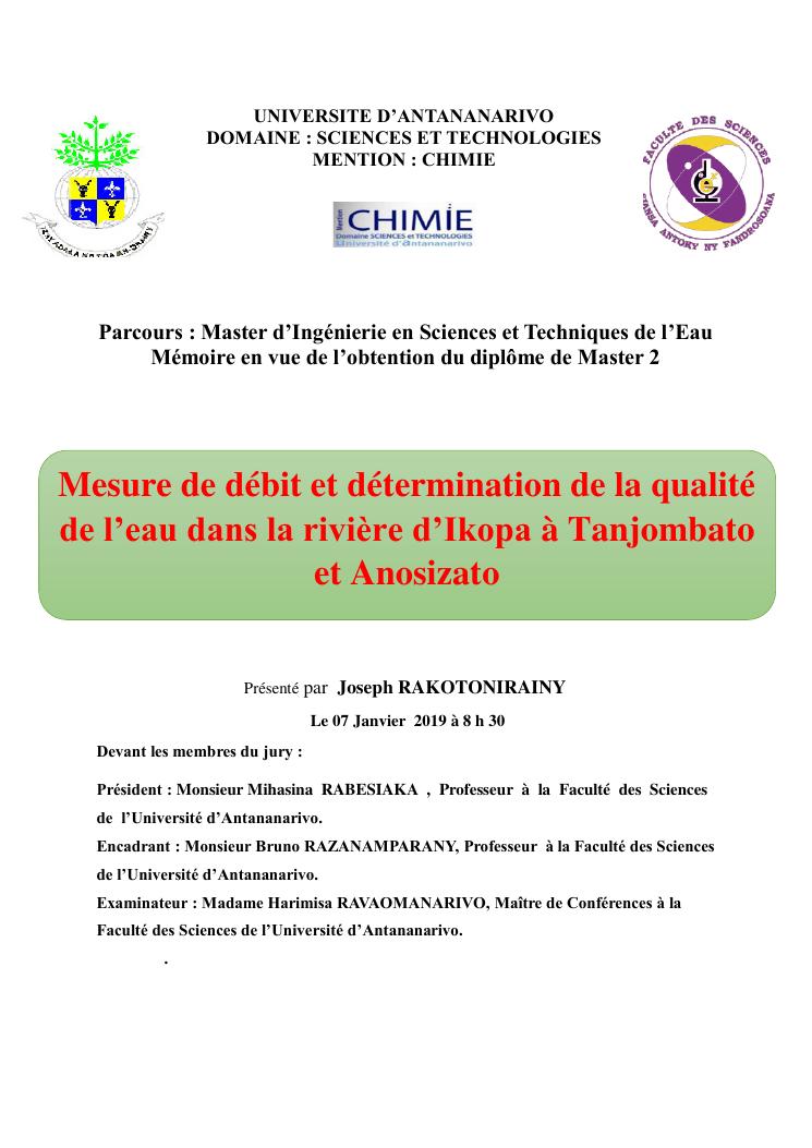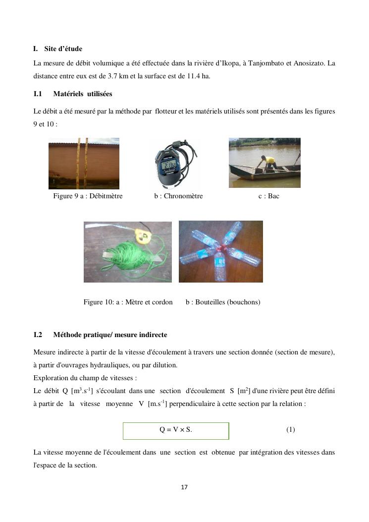 mesure de débit et détermination de la qualité de l'eau dans la rivière d'ikopa à tanjombato et anosizato