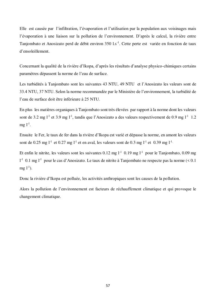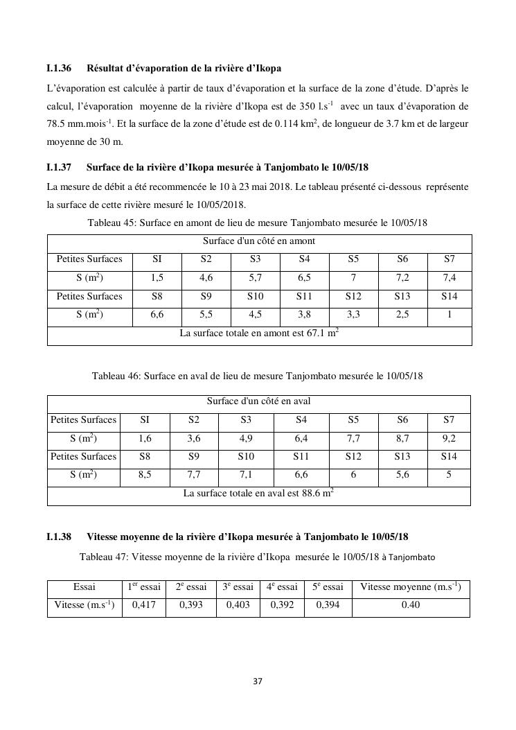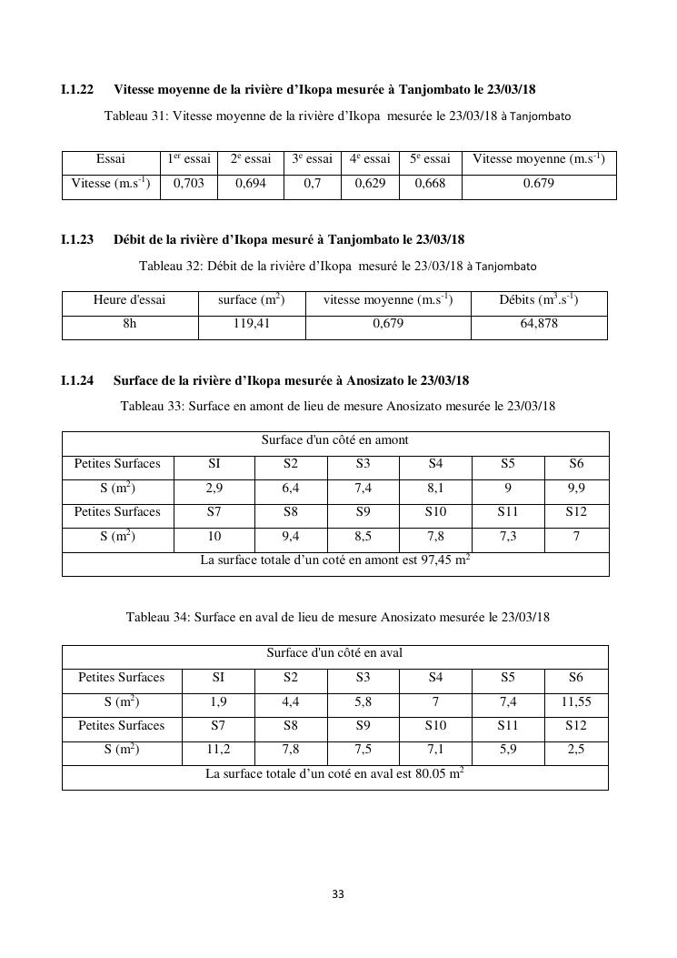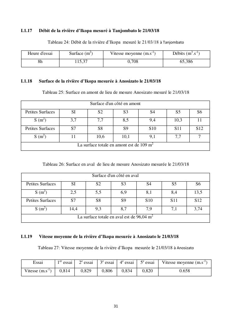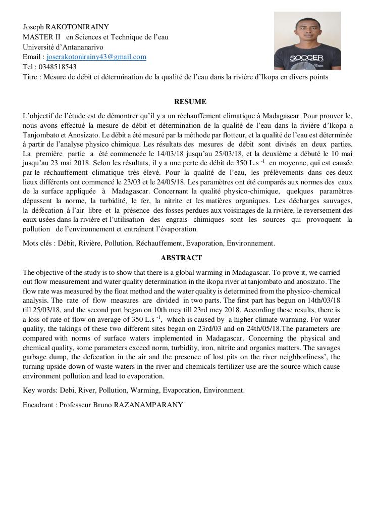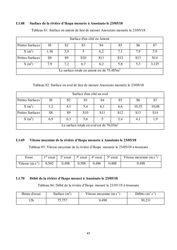 mesure de débit et détermination de la qualité de l'eau dans la rivière d'ikopa à tanjombato et anosizato