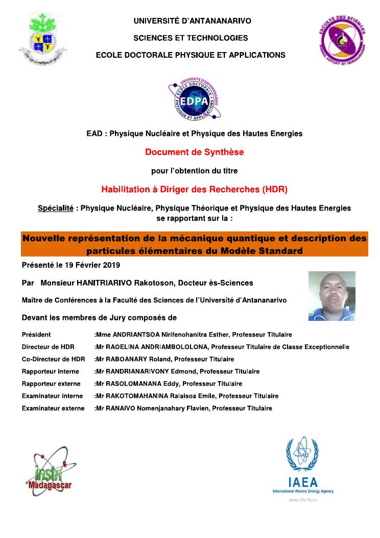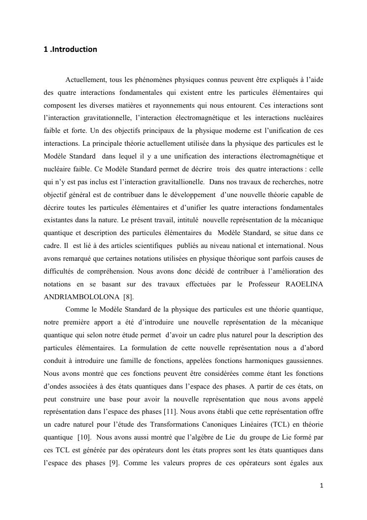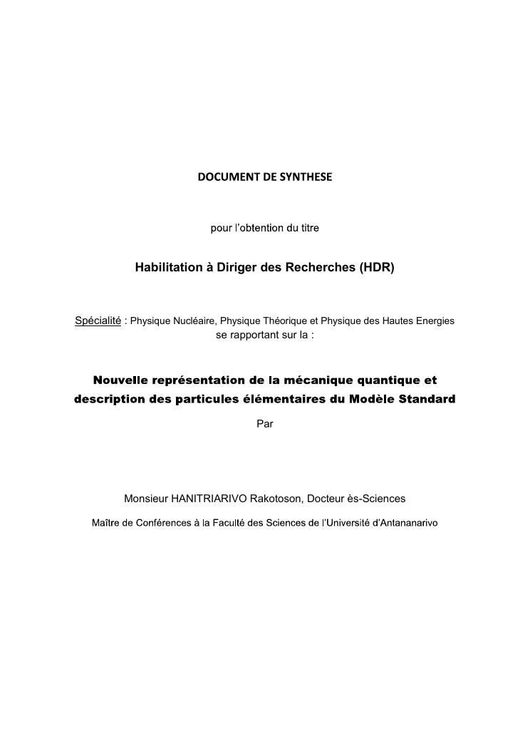 nouvelle representation de la mecanique quantique et description des particules elementaires du modele standard. volume i : document de sytheses