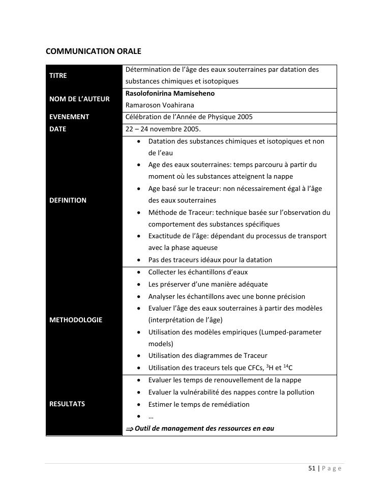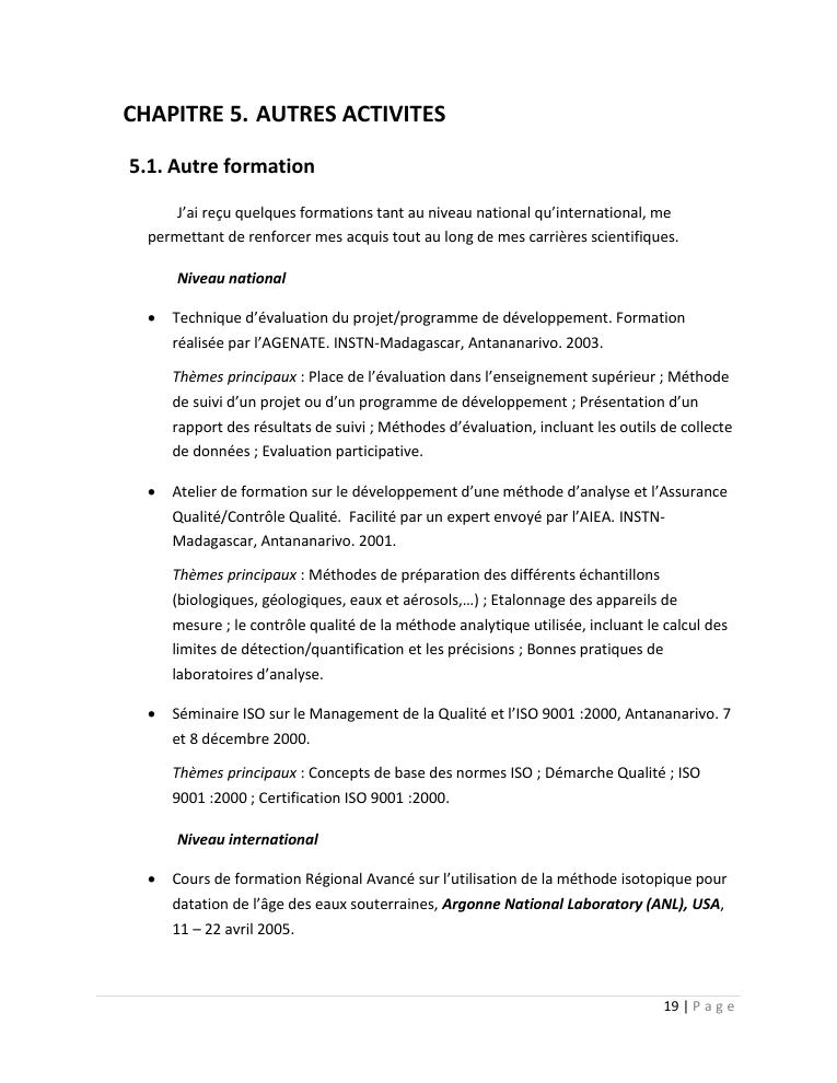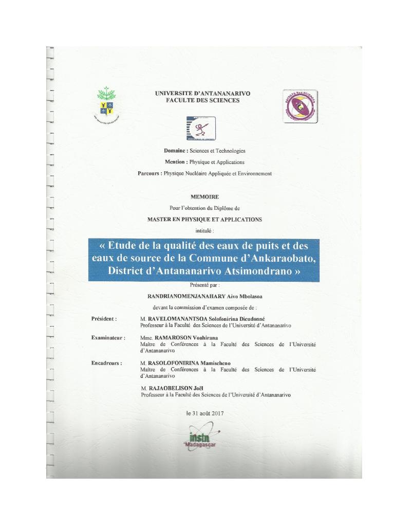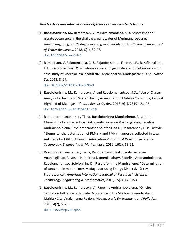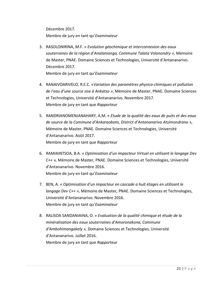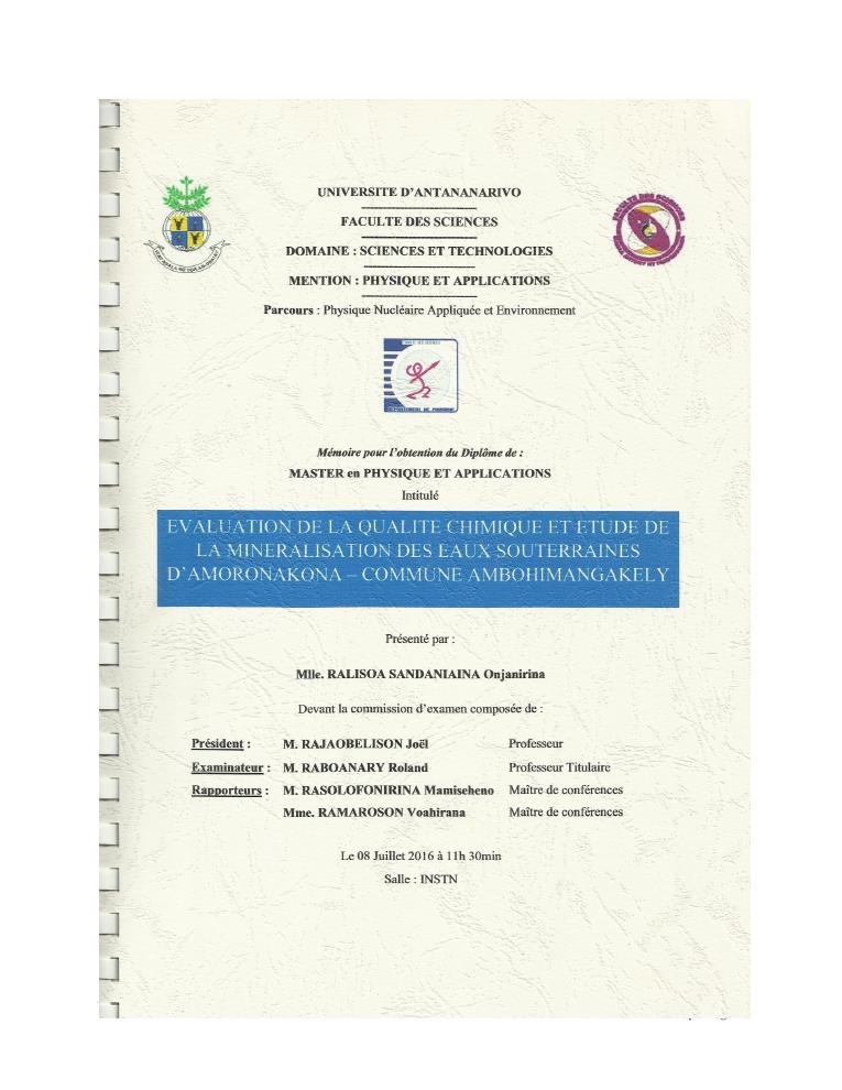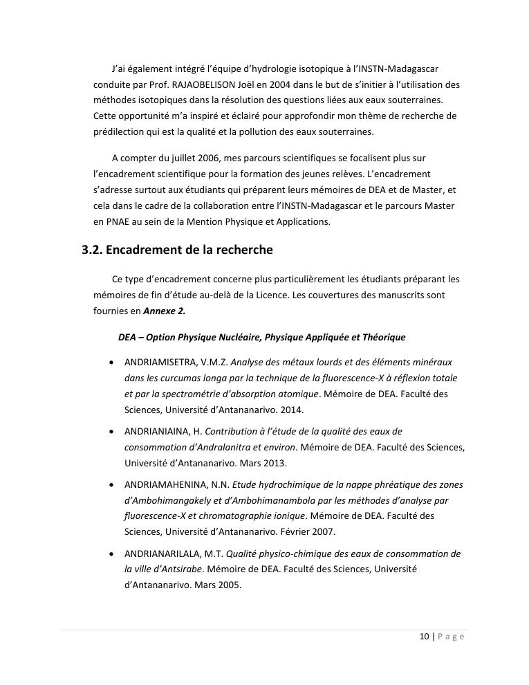 evaluation de la qualité physico-chimique des eaux souterraines et analyse statistique multivariée. volume i: curriculum vitae et realisations scientifiques
