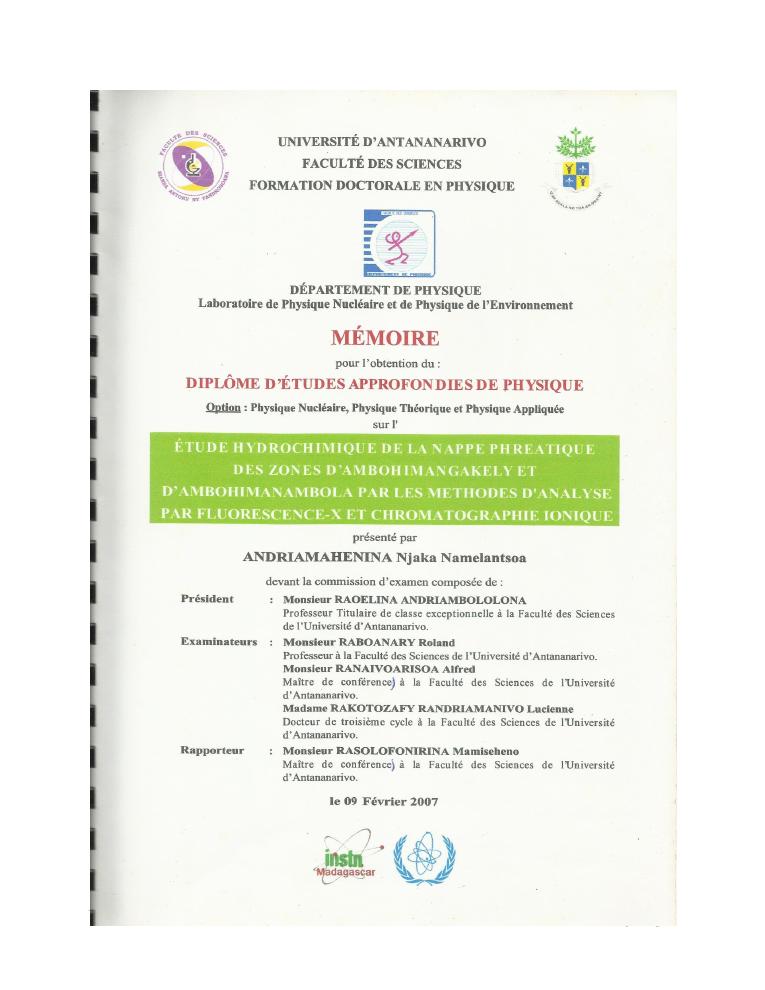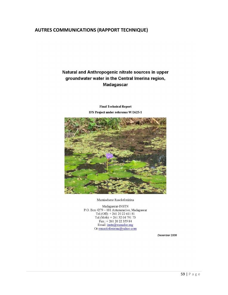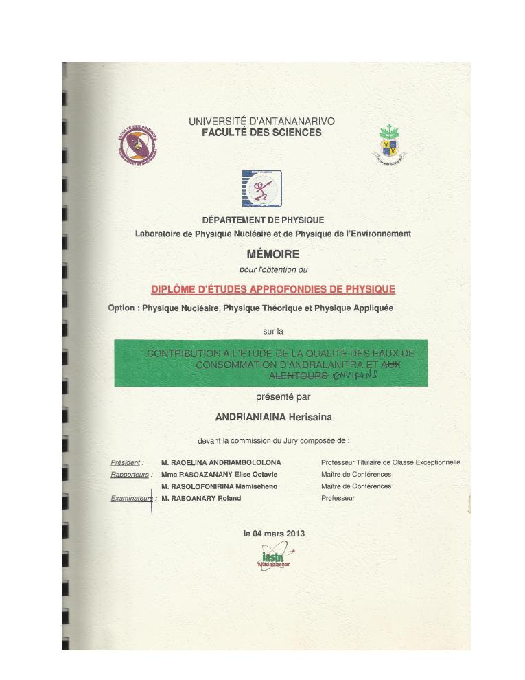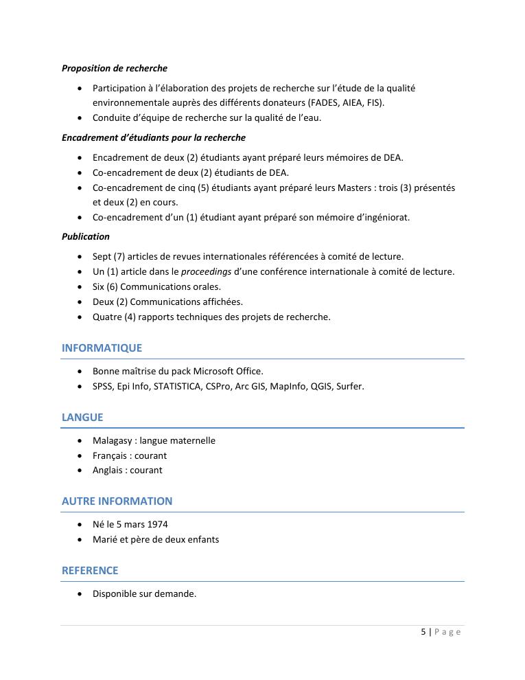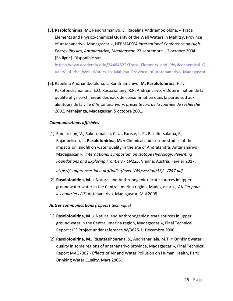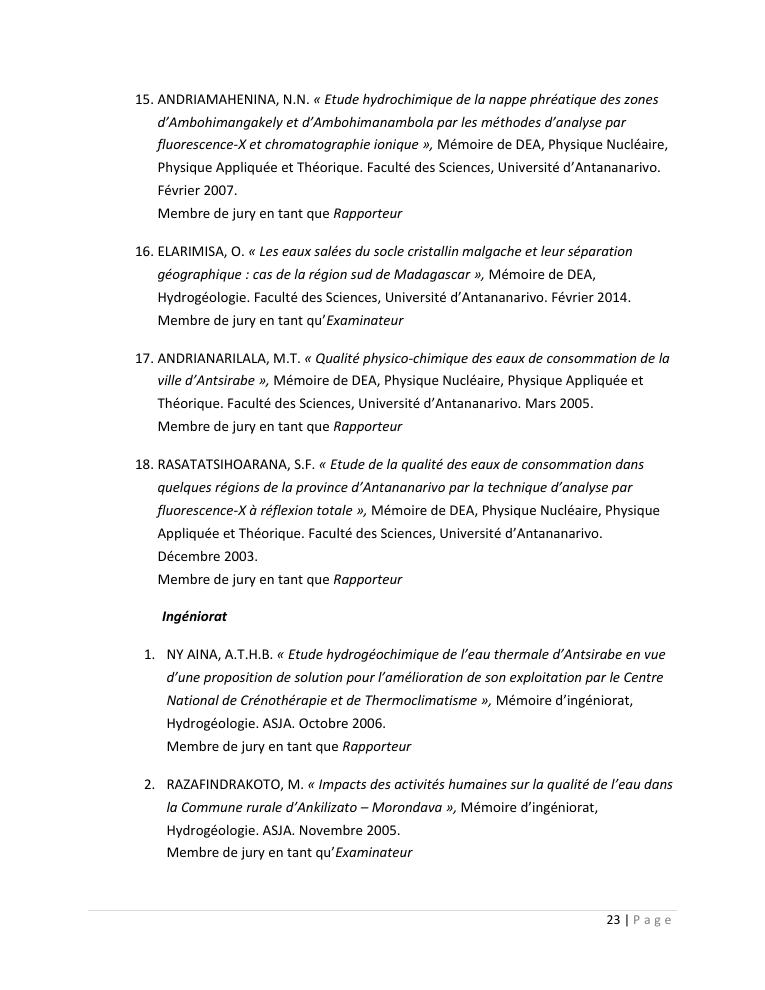 evaluation de la qualité physico-chimique des eaux souterraines et analyse statistique multivariée. volume i: curriculum vitae et realisations scientifiques