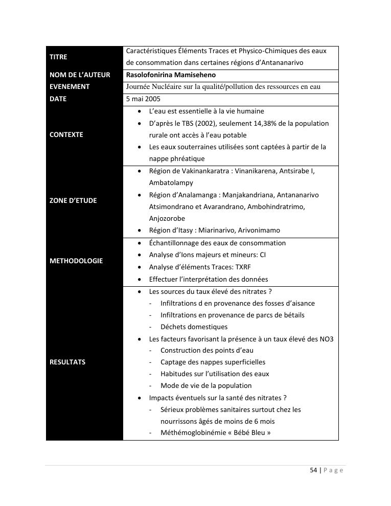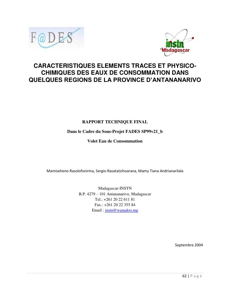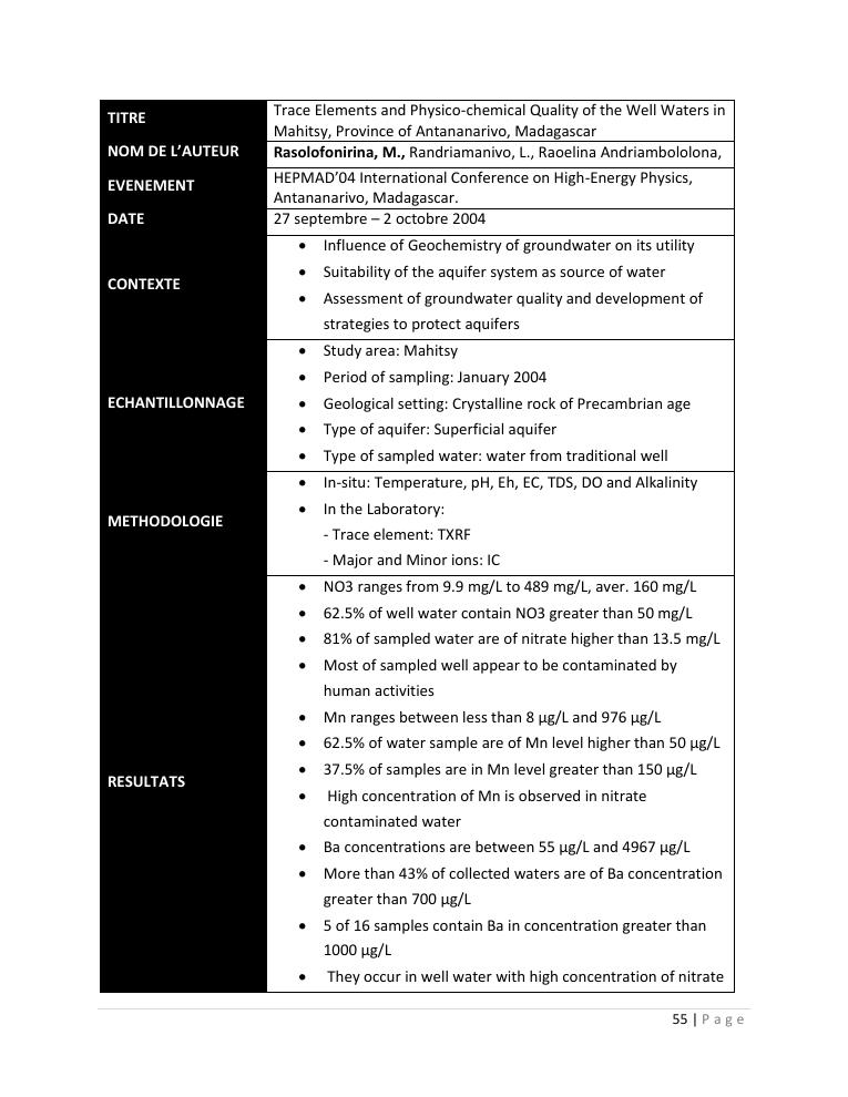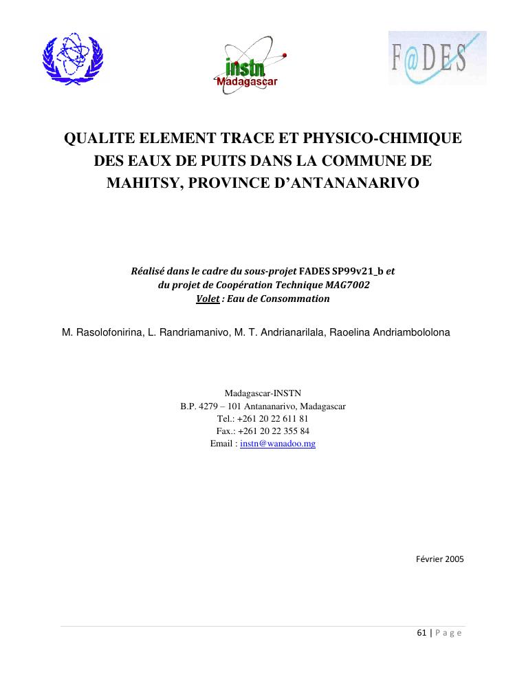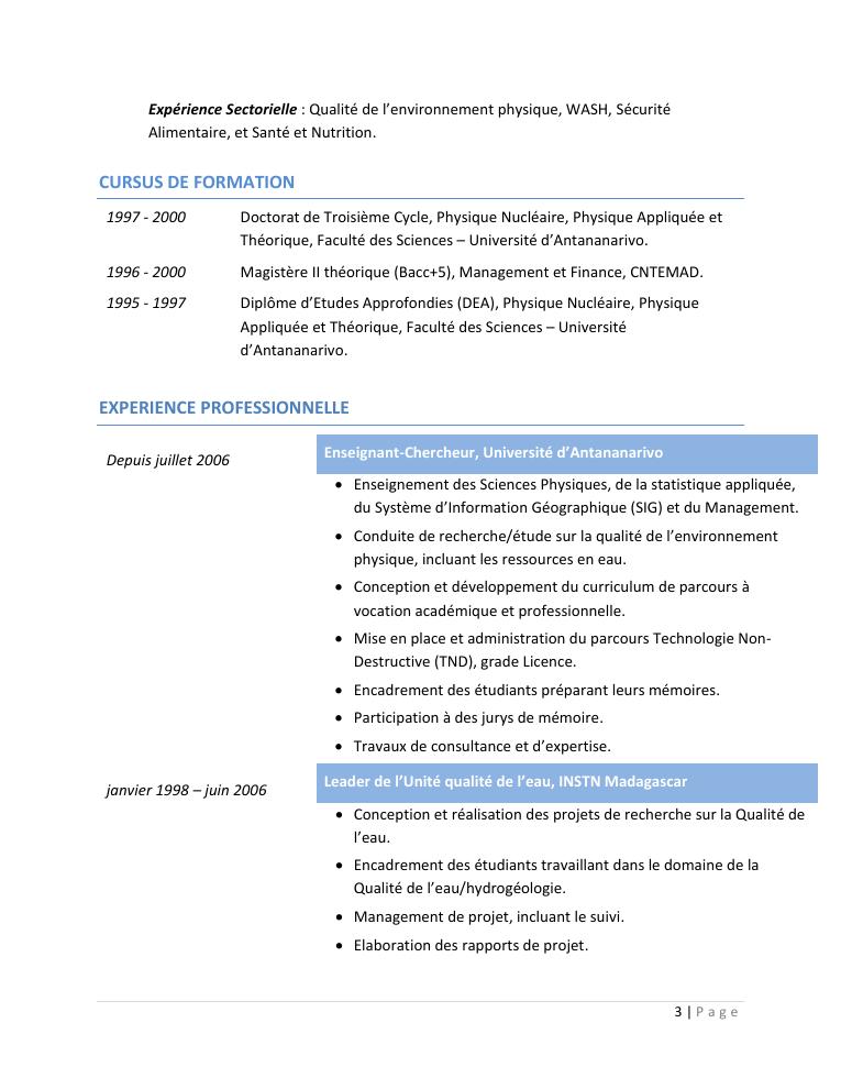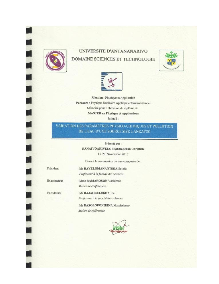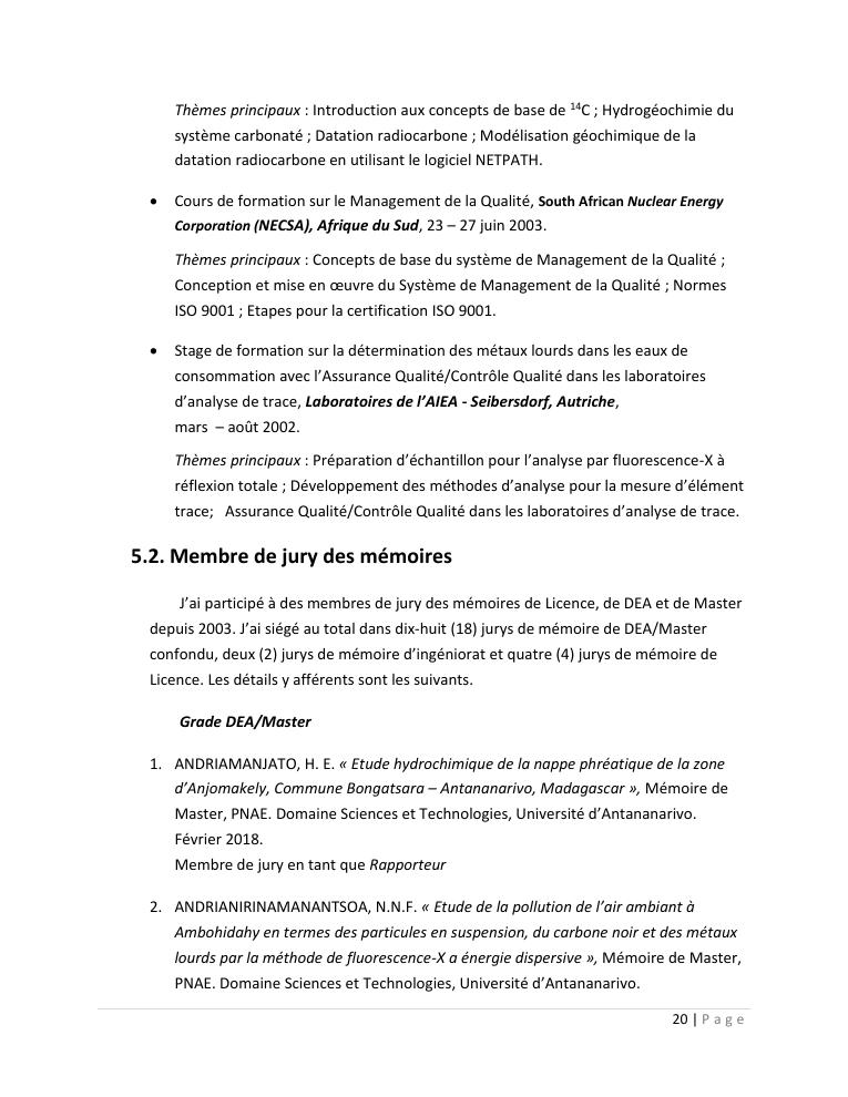 evaluation de la qualité physico-chimique des eaux souterraines et analyse statistique multivariée. volume i: curriculum vitae et realisations scientifiques