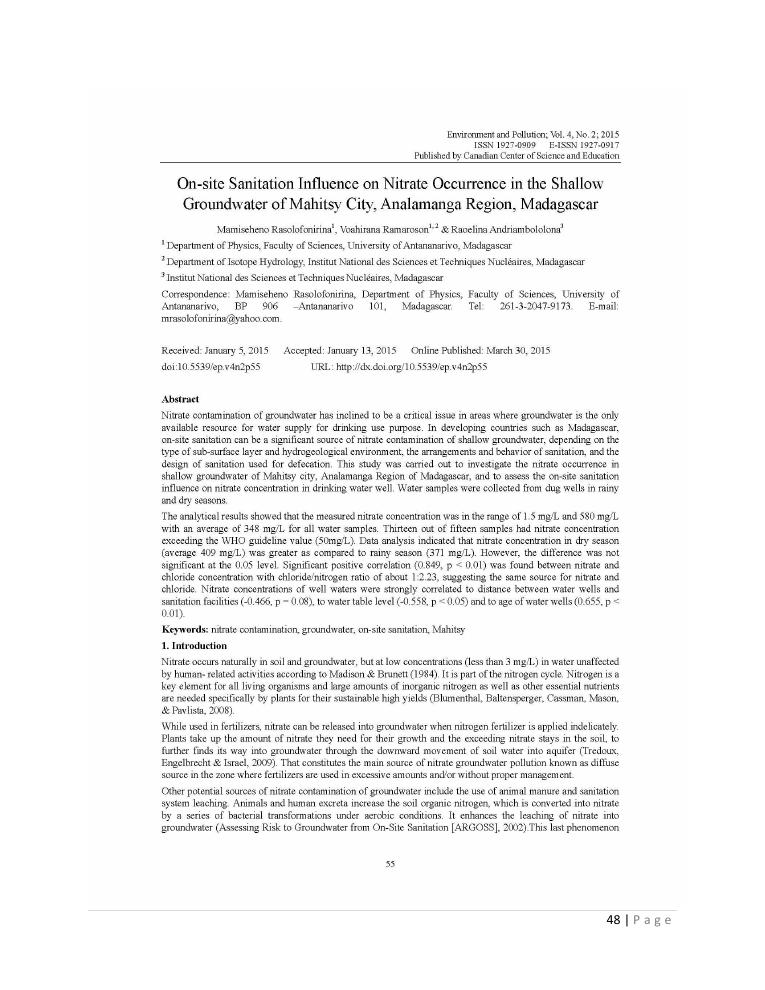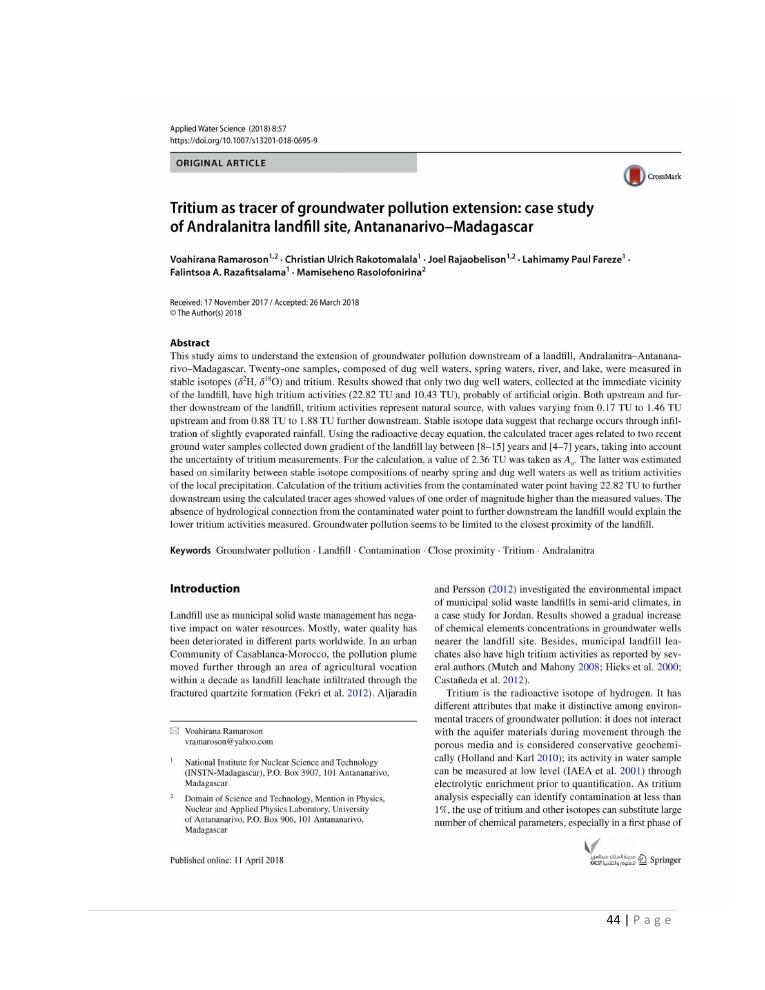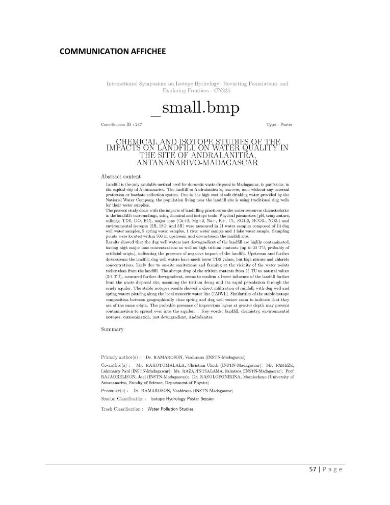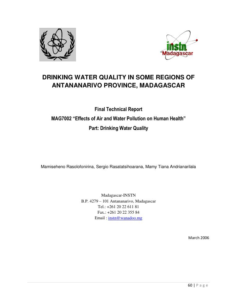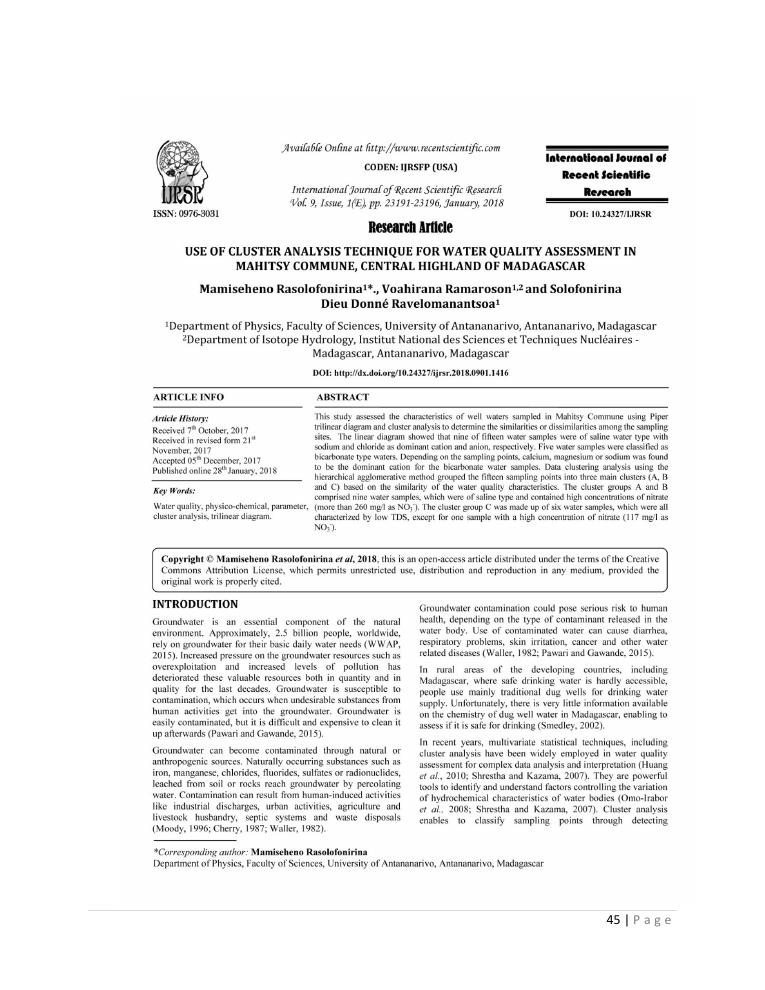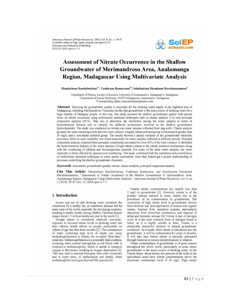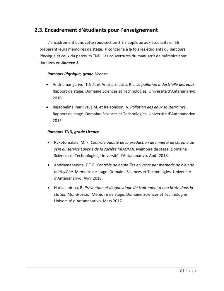 evaluation de la qualité physico-chimique des eaux souterraines et analyse statistique multivariée. volume i: curriculum vitae et realisations scientifiques
