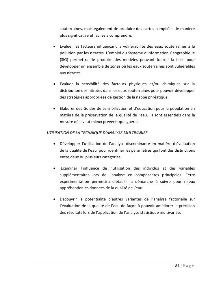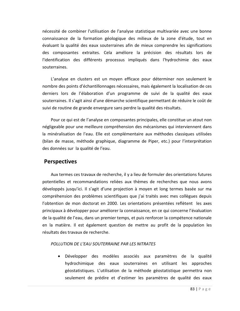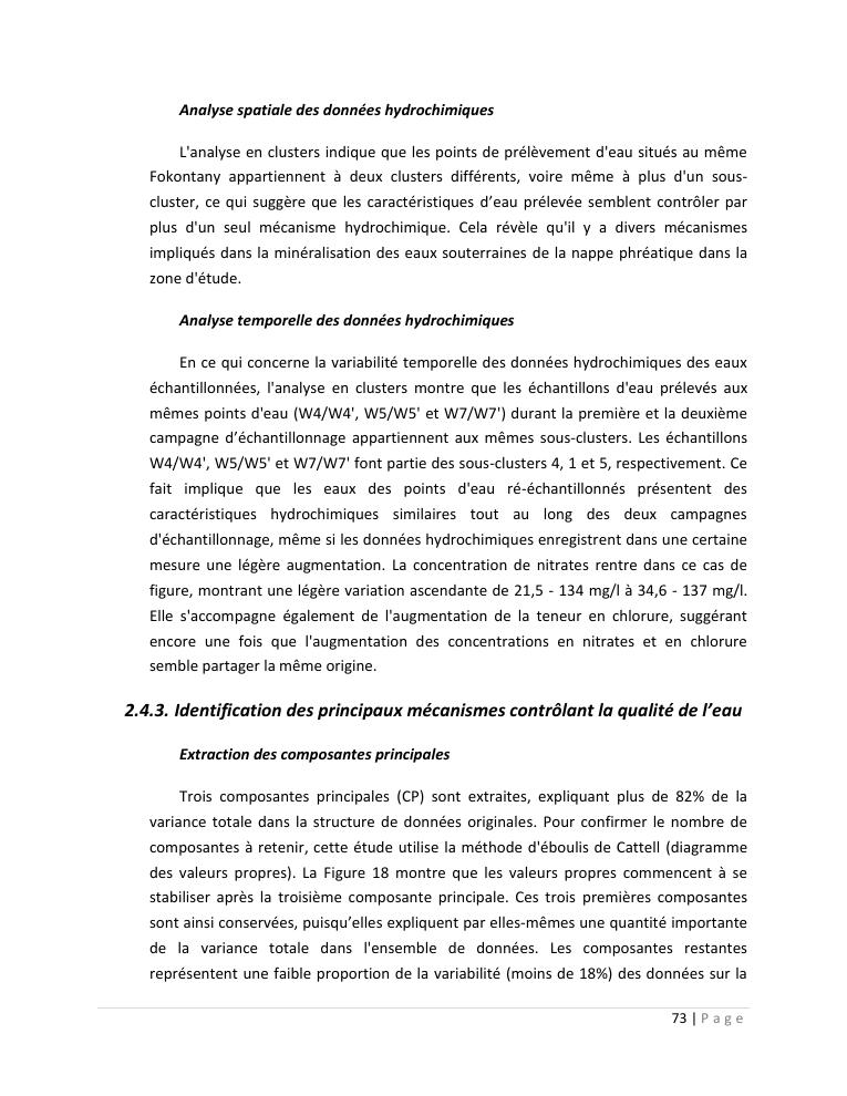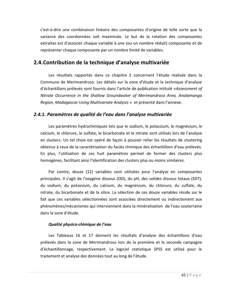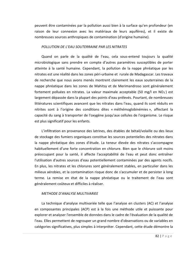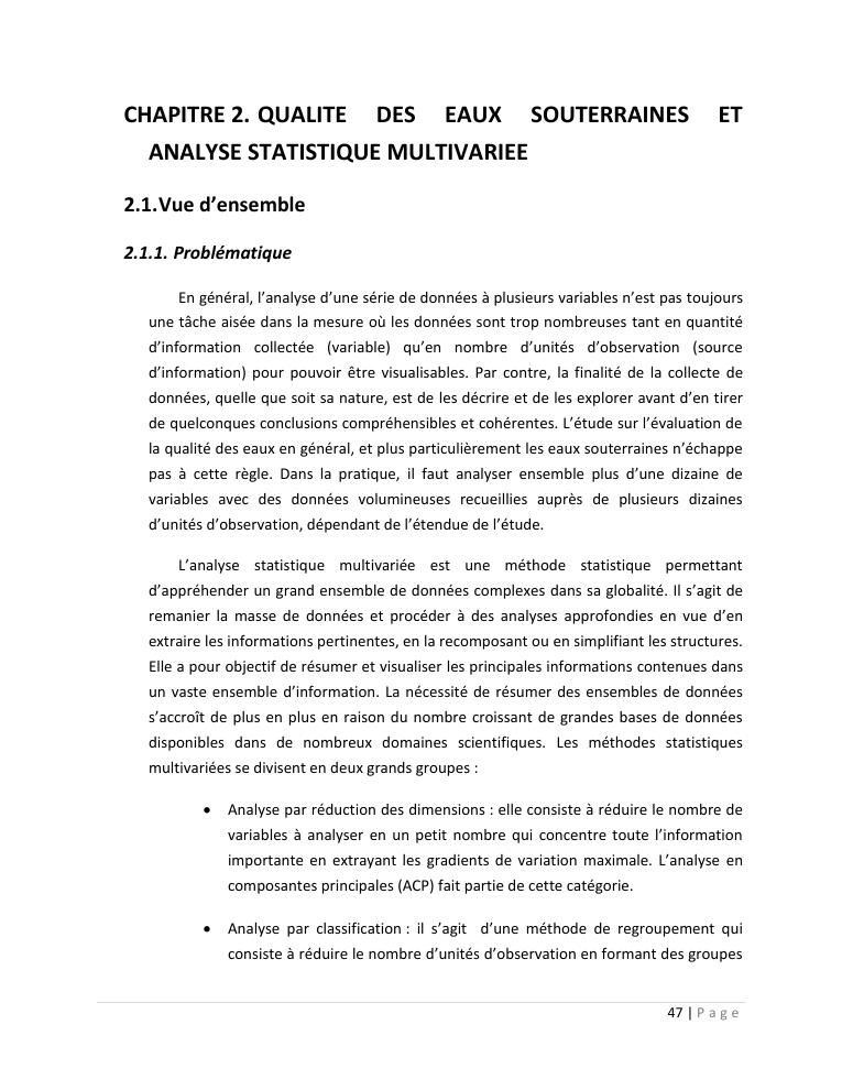 evaluation de la qualité physico-chimique des eaux souterraines et analyse statistique multivariée. volume ii: synthese des travaux de recherche