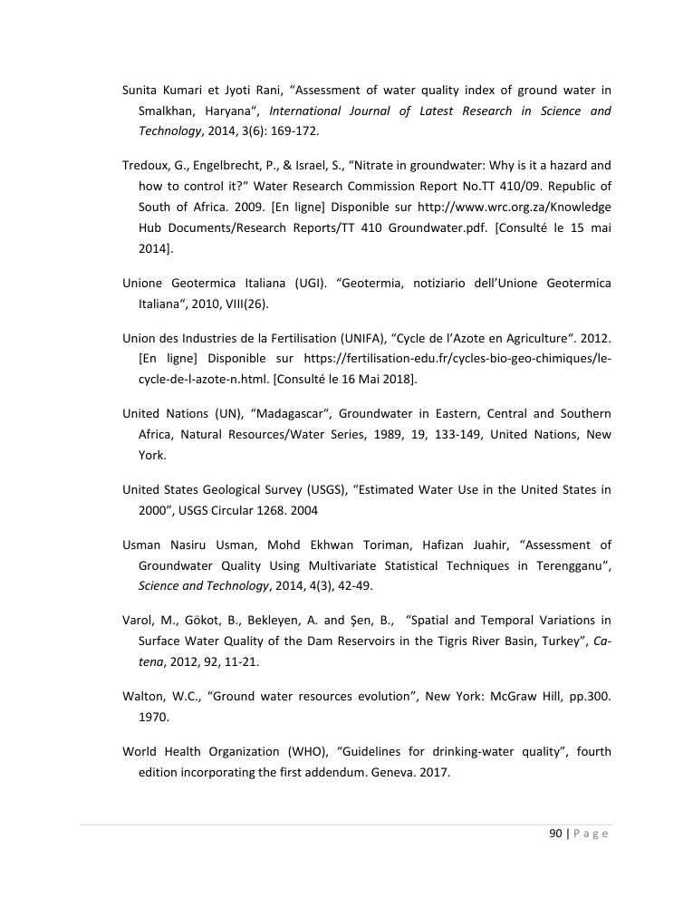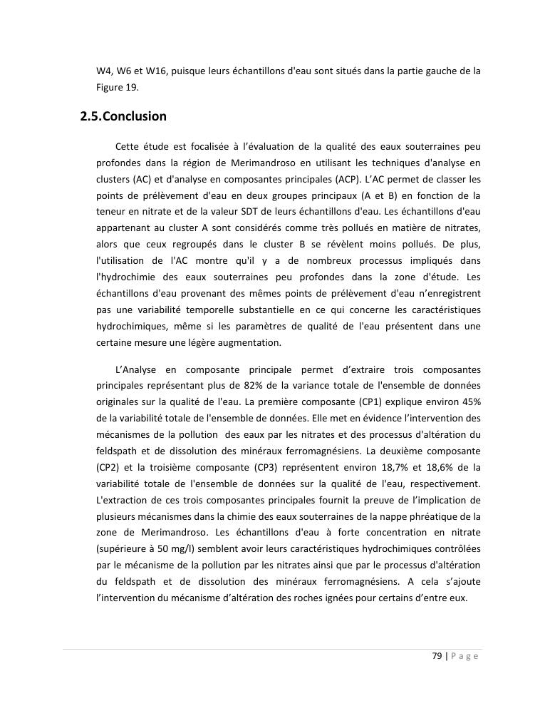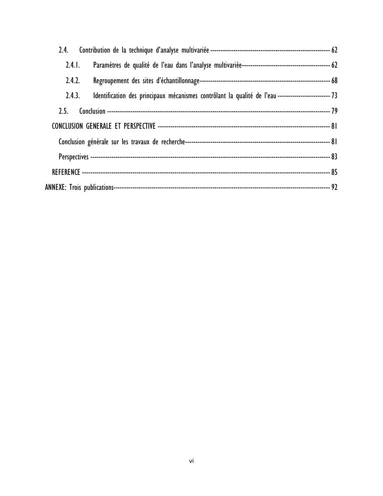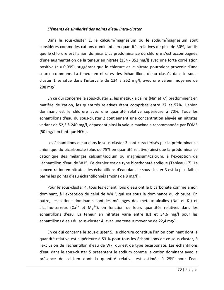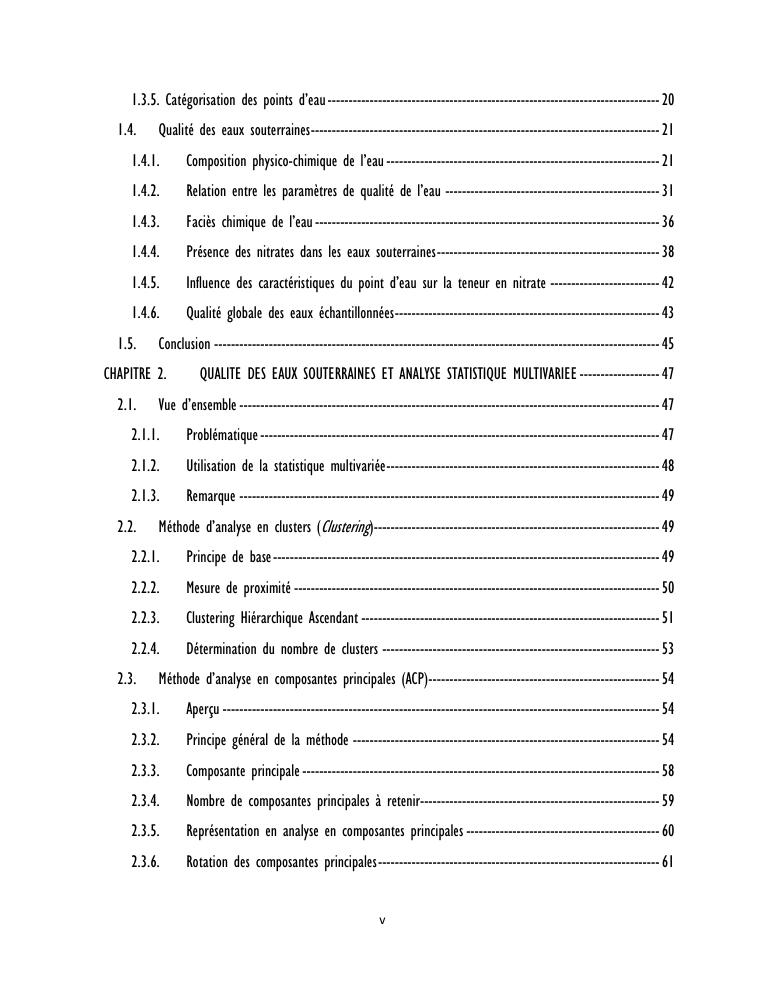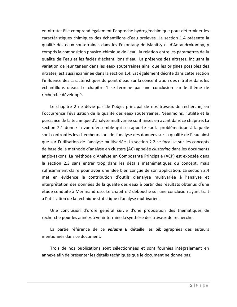 evaluation de la qualité physico-chimique des eaux souterraines et analyse statistique multivariée. volume ii: synthese des travaux de recherche