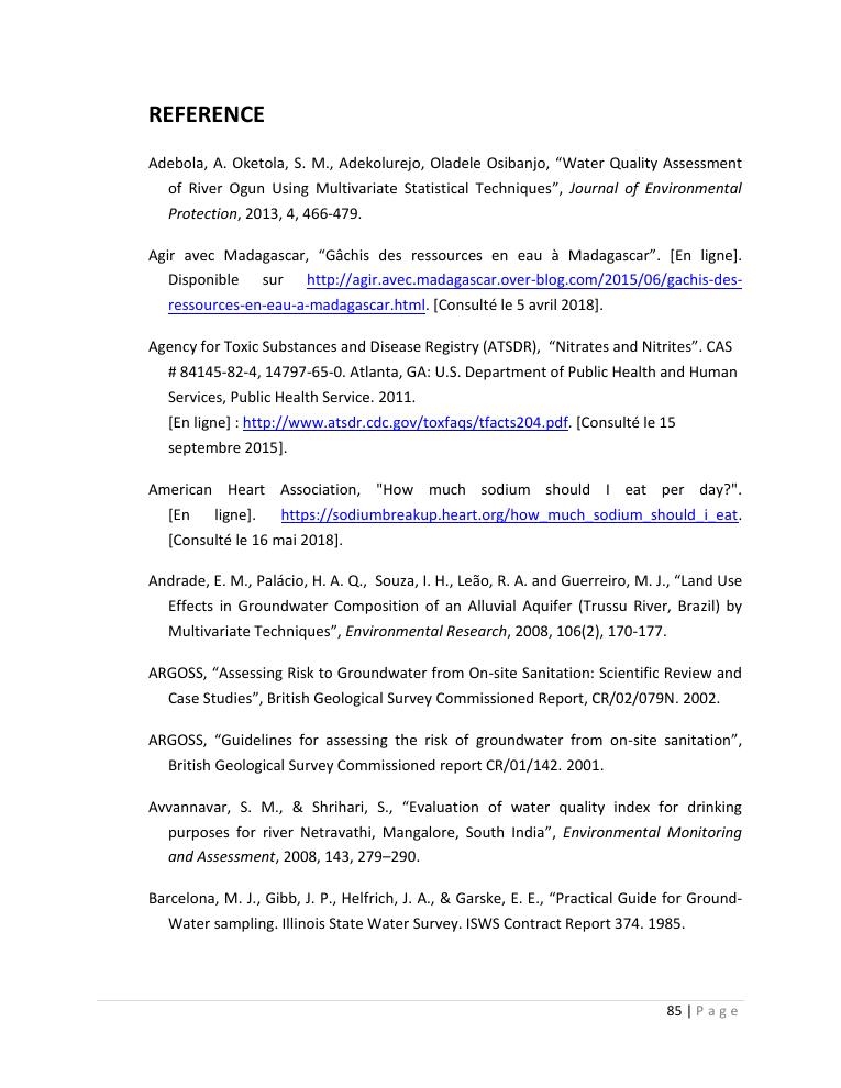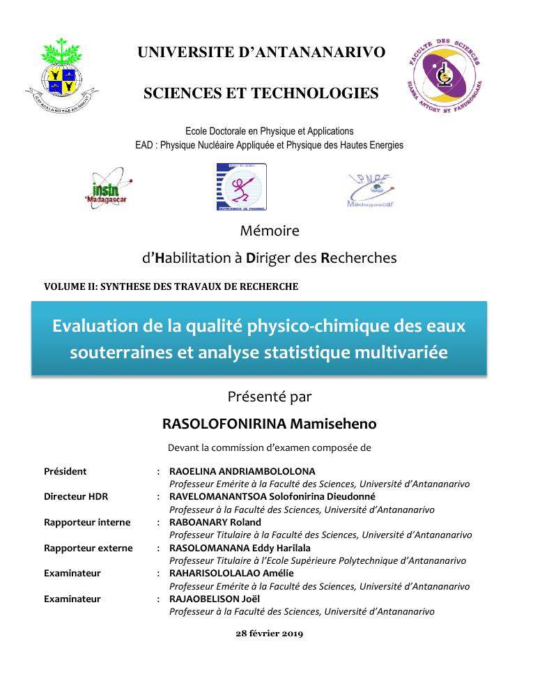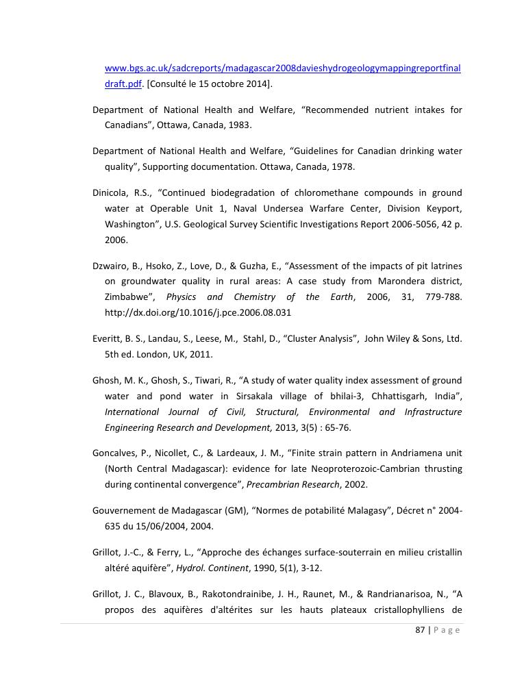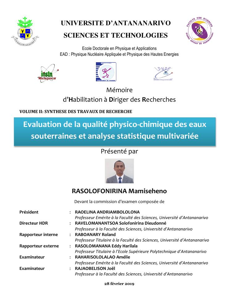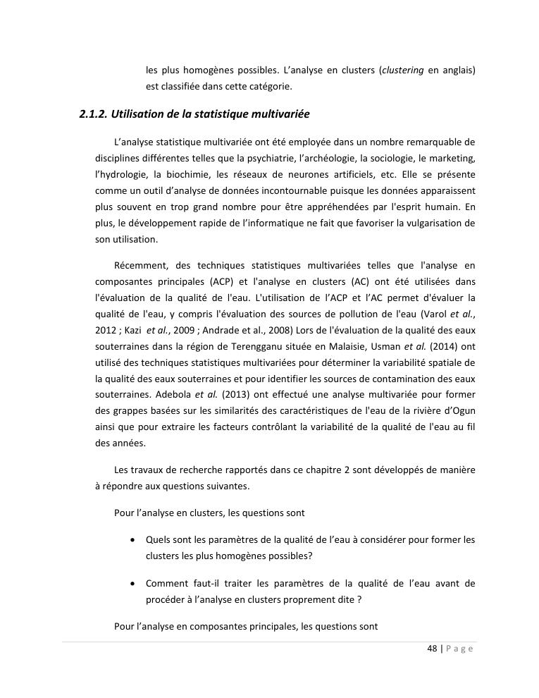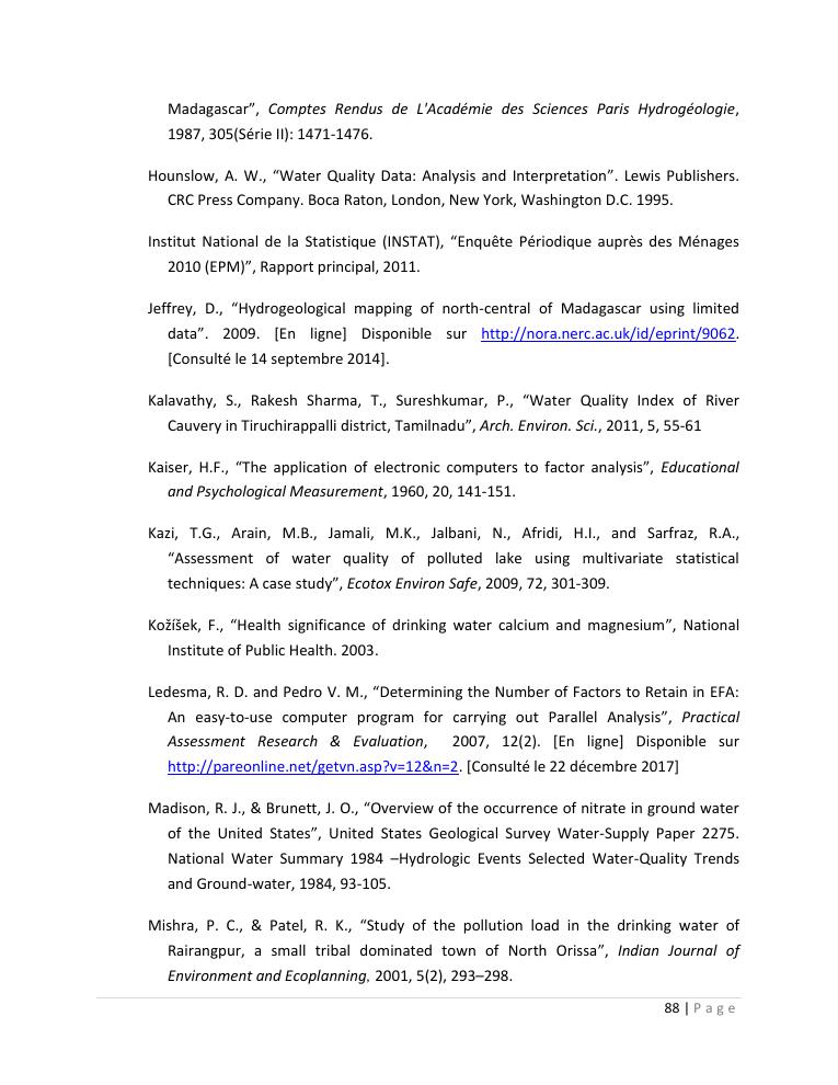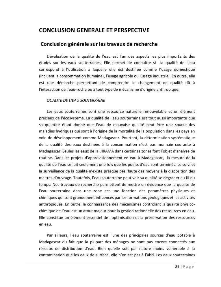 evaluation de la qualité physico-chimique des eaux souterraines et analyse statistique multivariée. volume ii: synthese des travaux de recherche