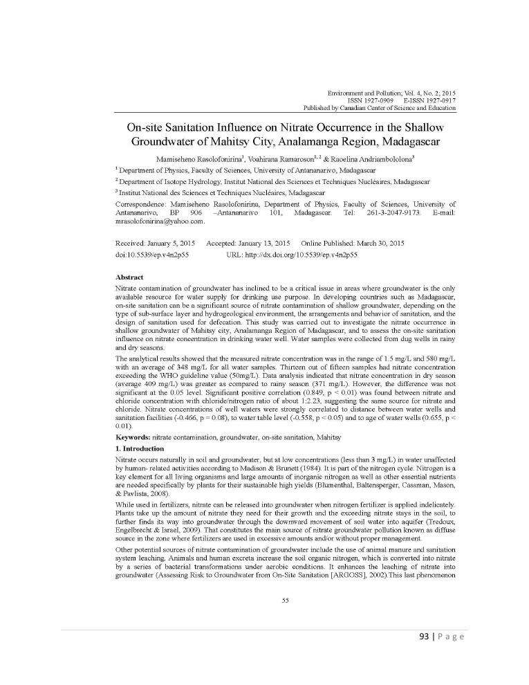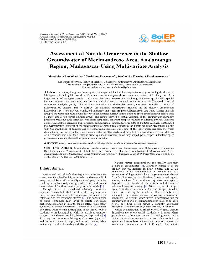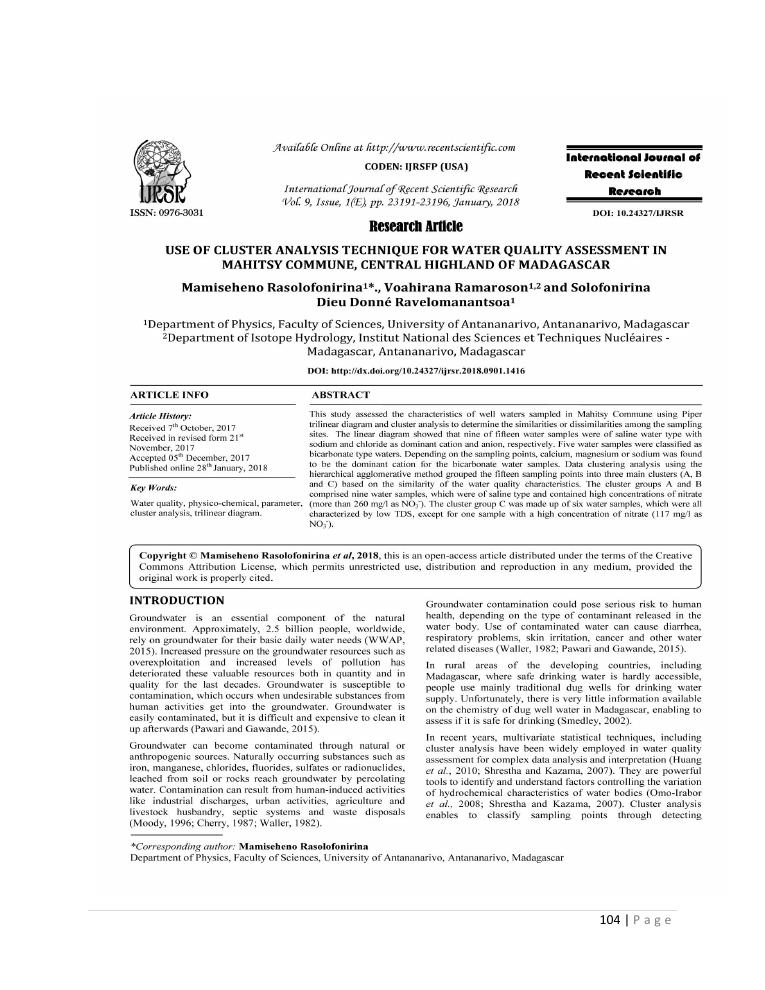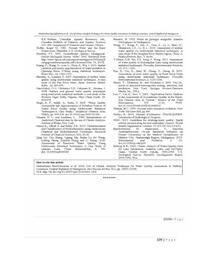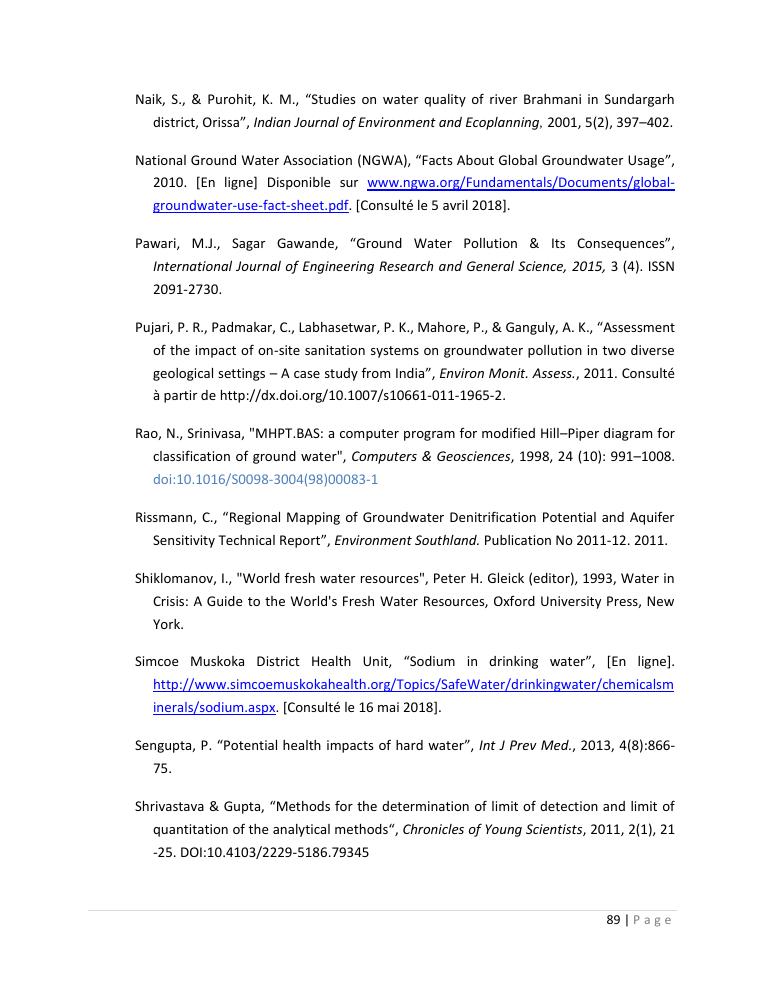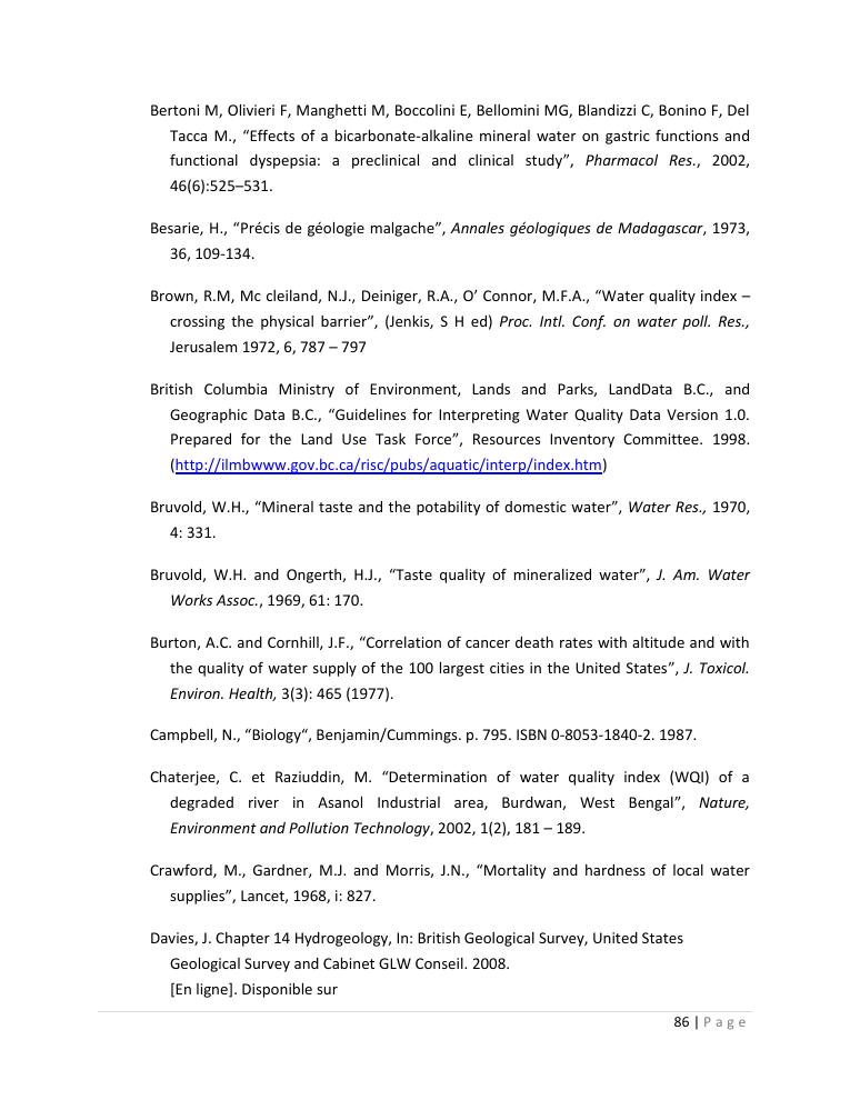 evaluation de la qualité physico-chimique des eaux souterraines et analyse statistique multivariée. volume ii: synthese des travaux de recherche