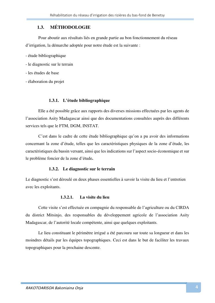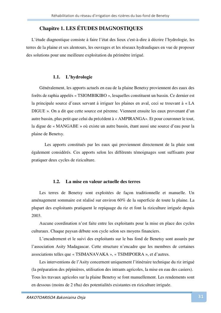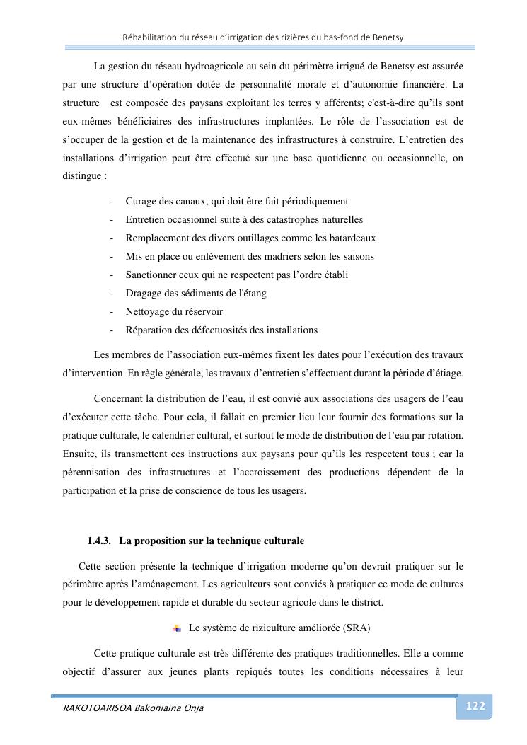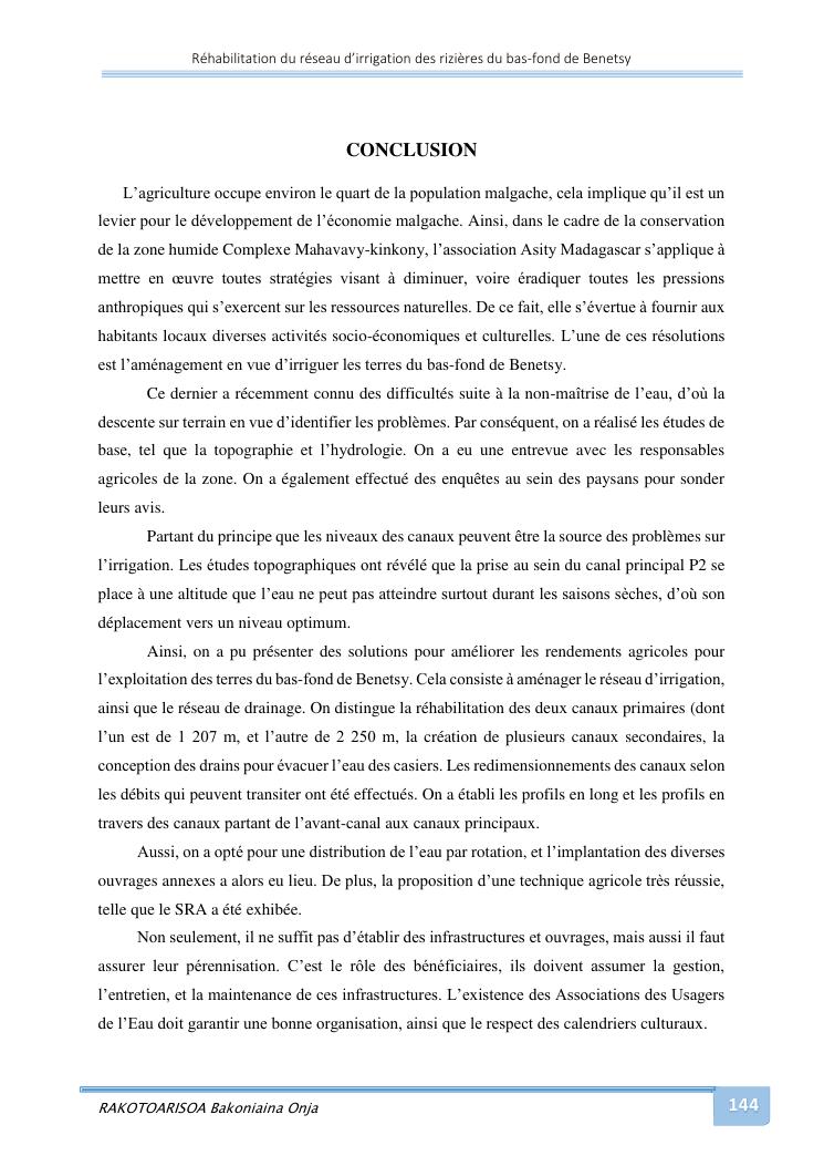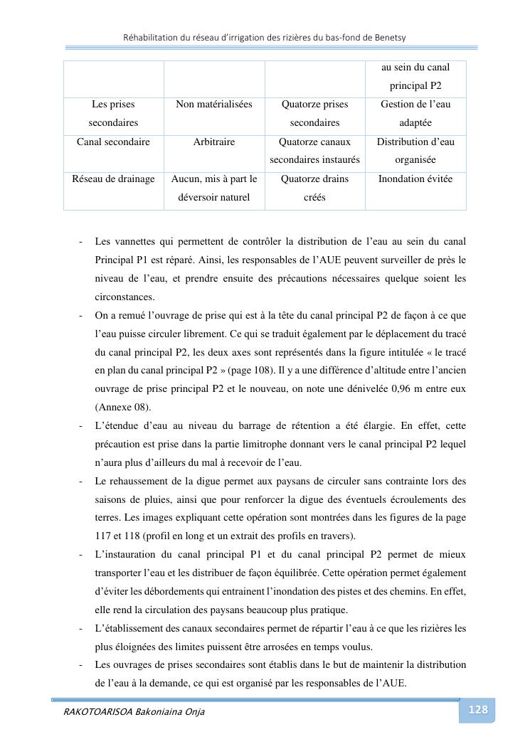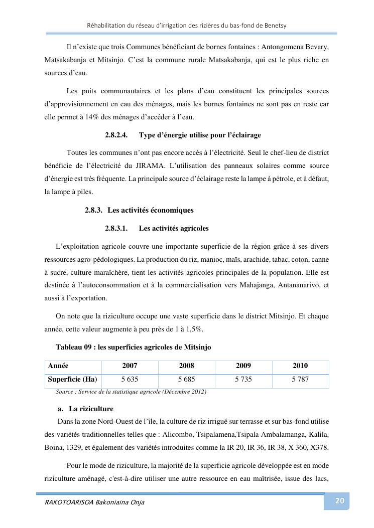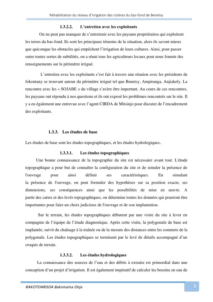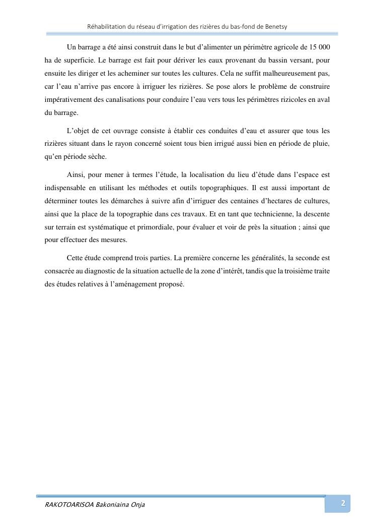 rehabilitation du reseau d'irrigation des rizieres du bas-fond de benetsy commune rurale matsakabanja district mitsinjo