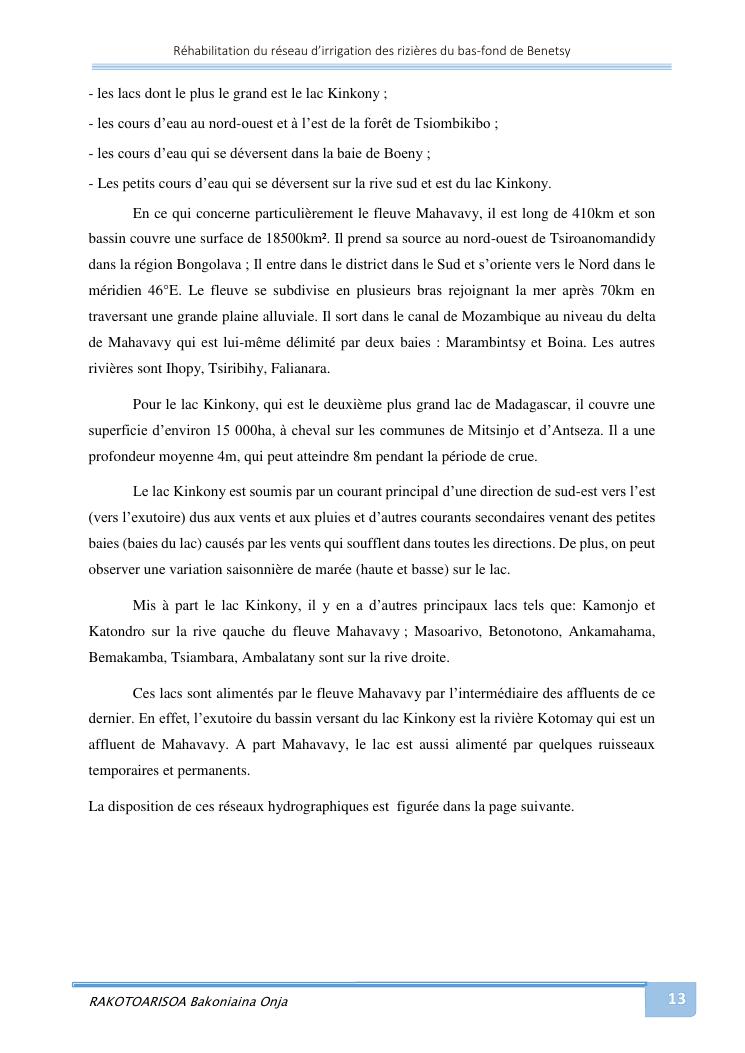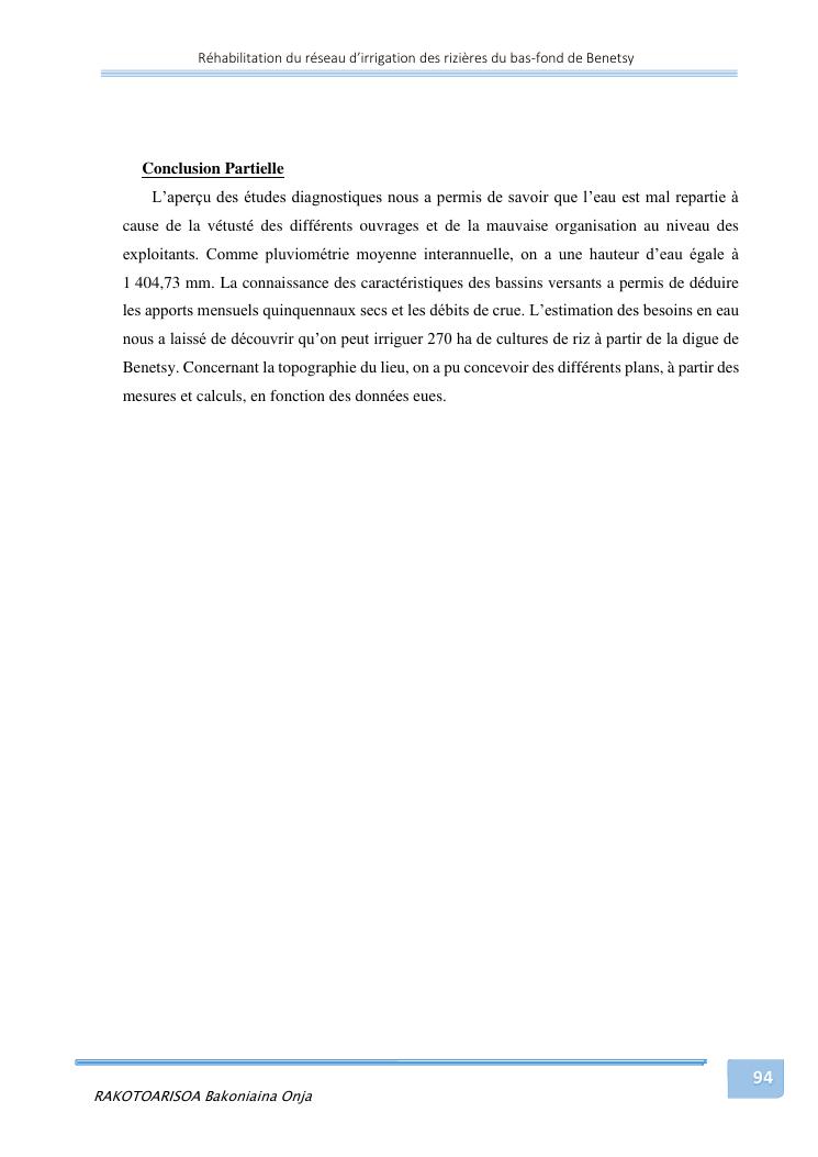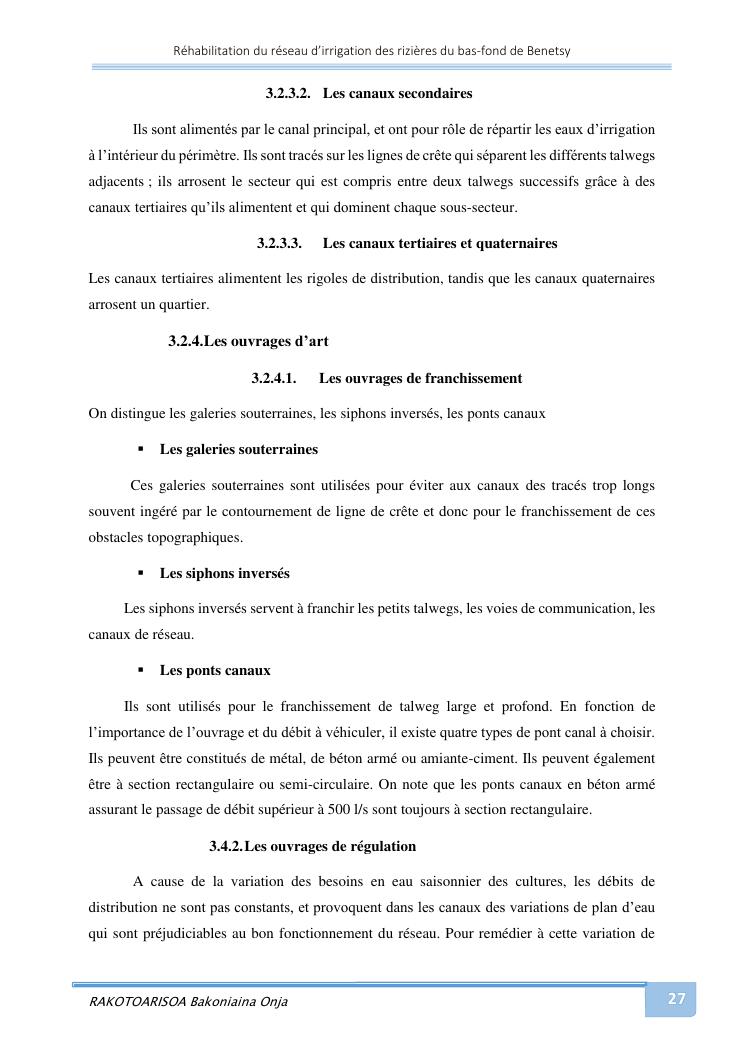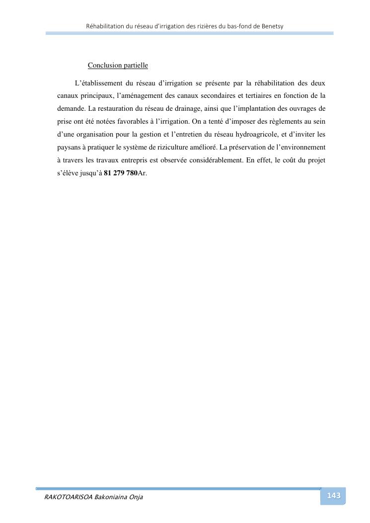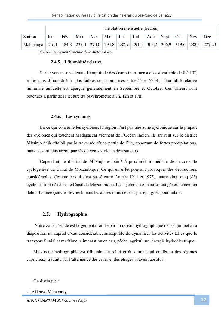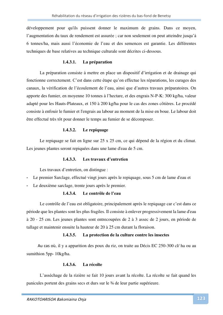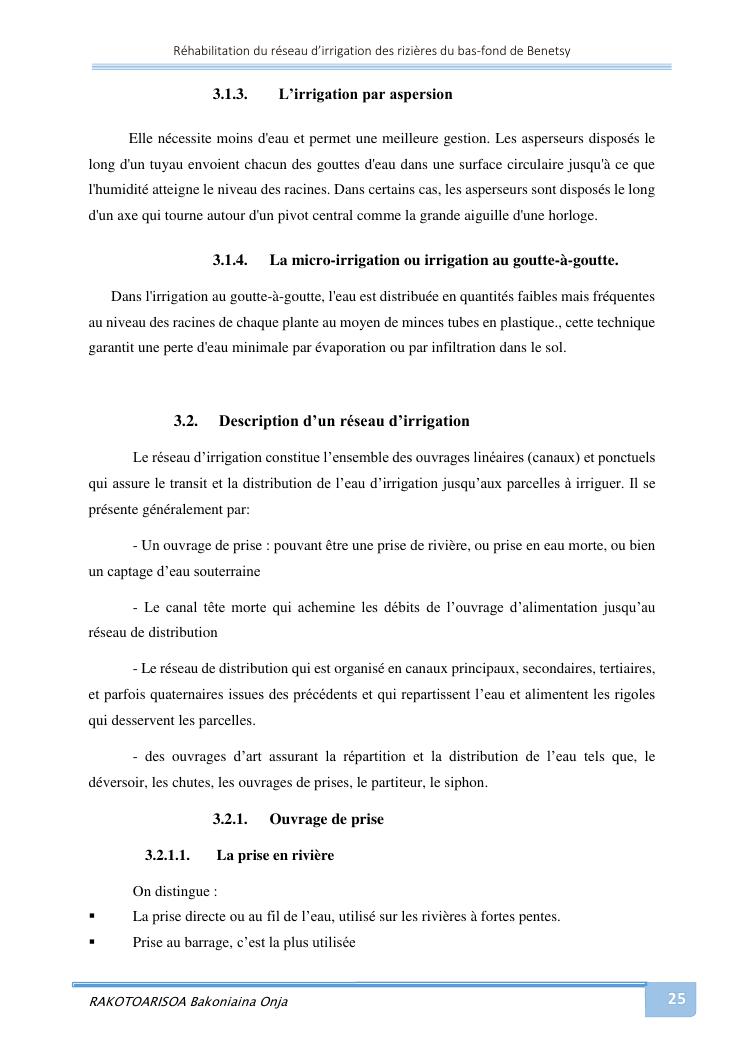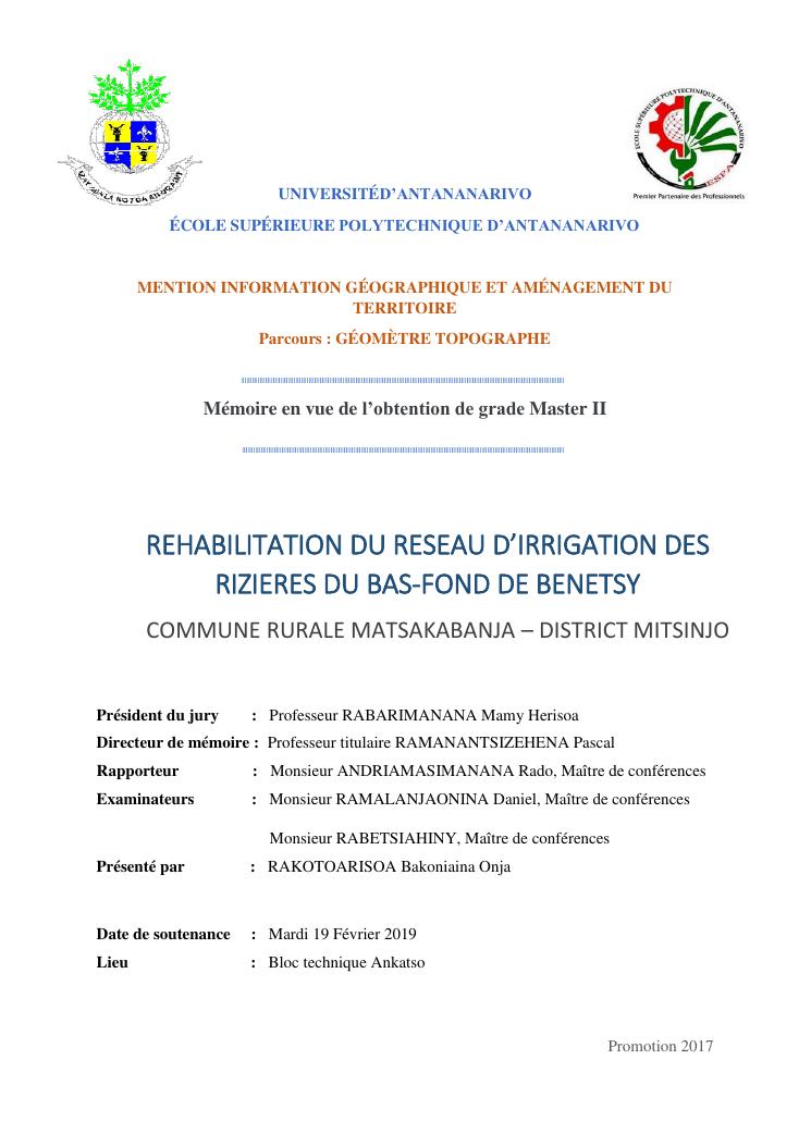 rehabilitation du reseau d'irrigation des rizieres du bas-fond de benetsy commune rurale matsakabanja district mitsinjo