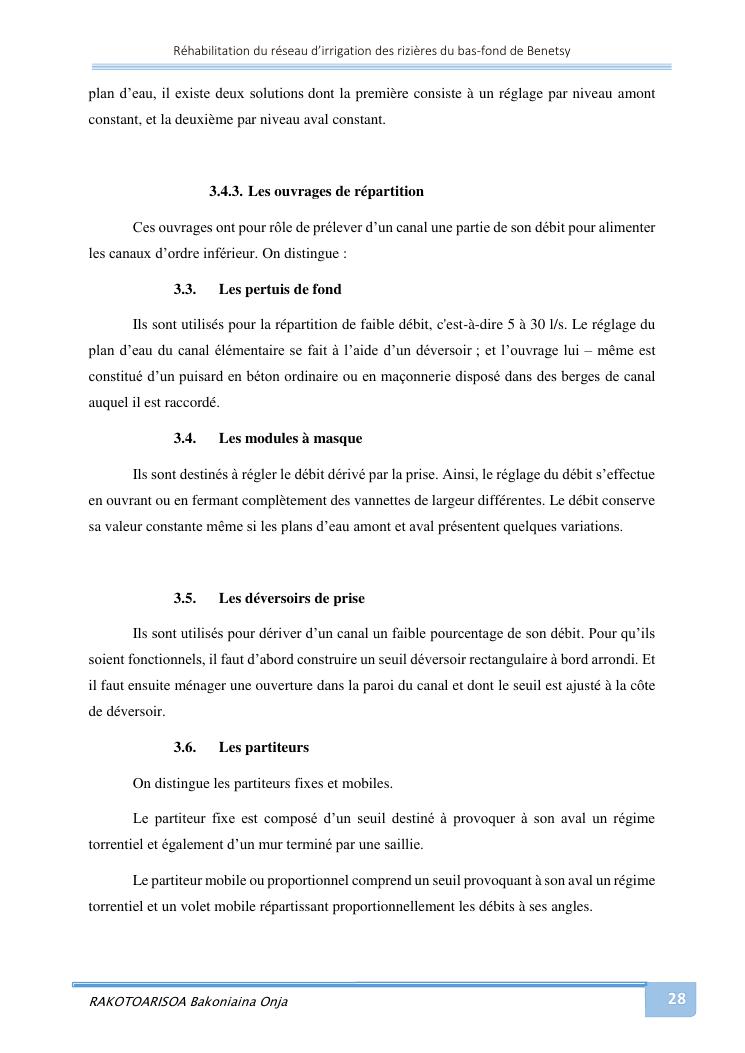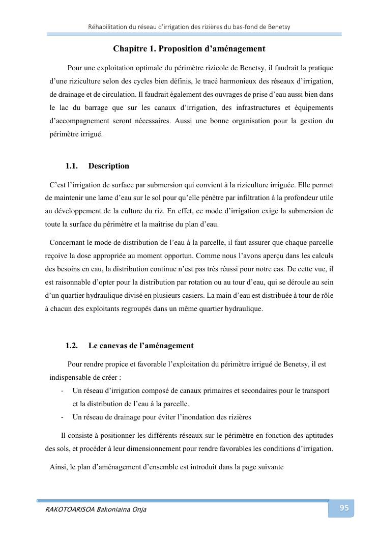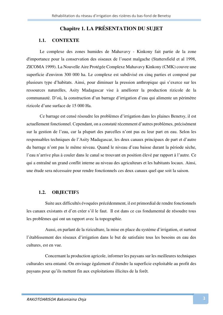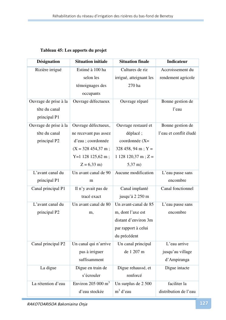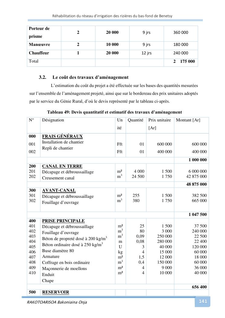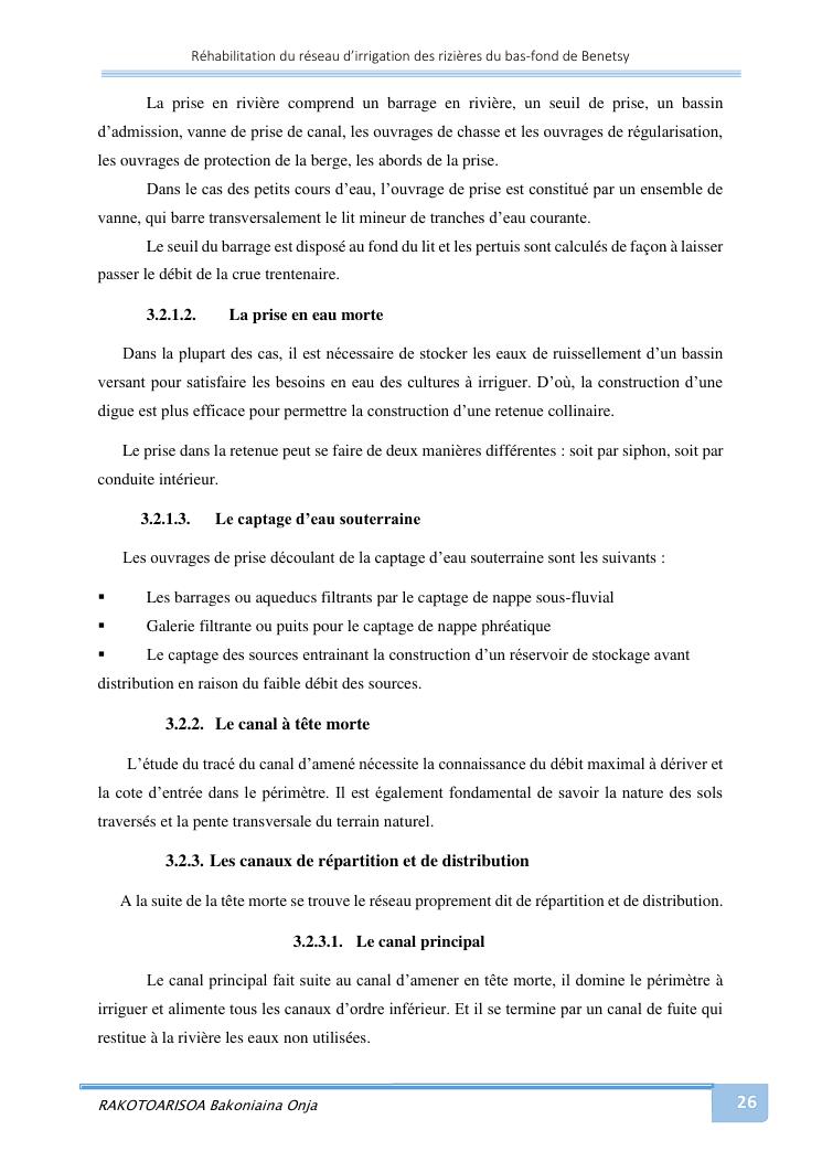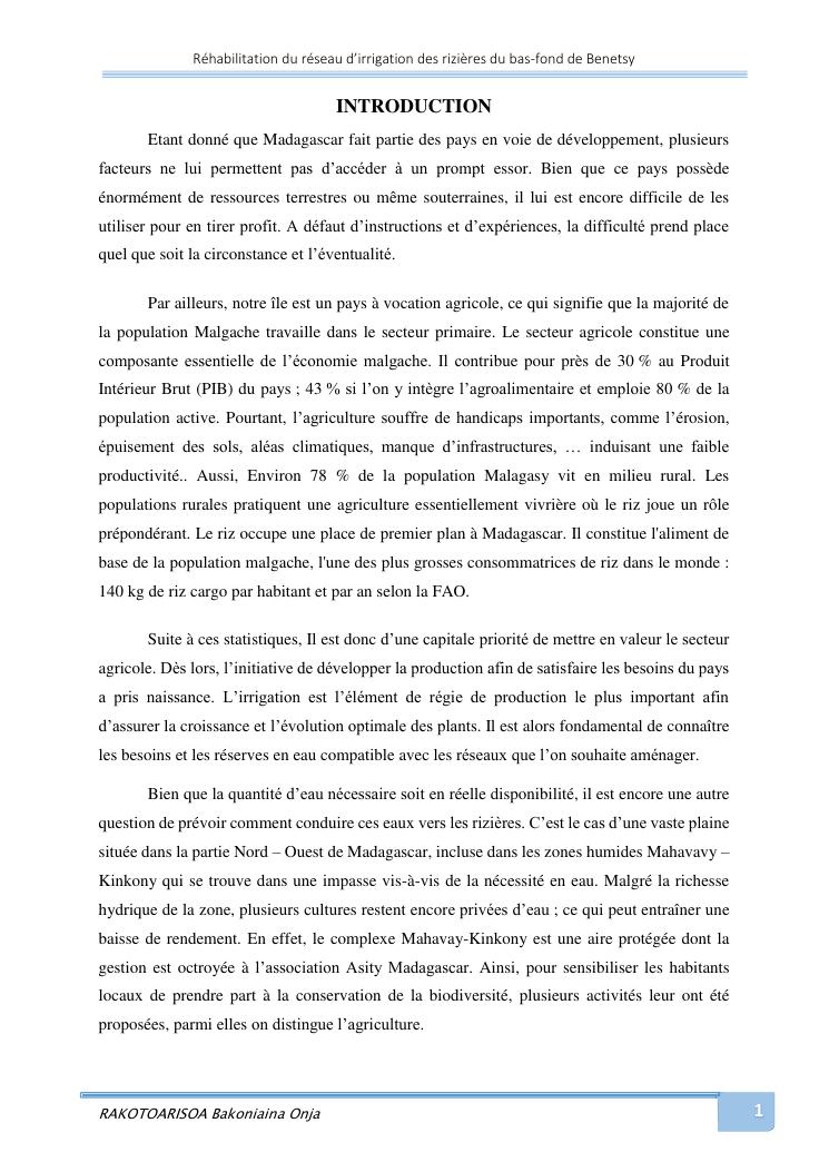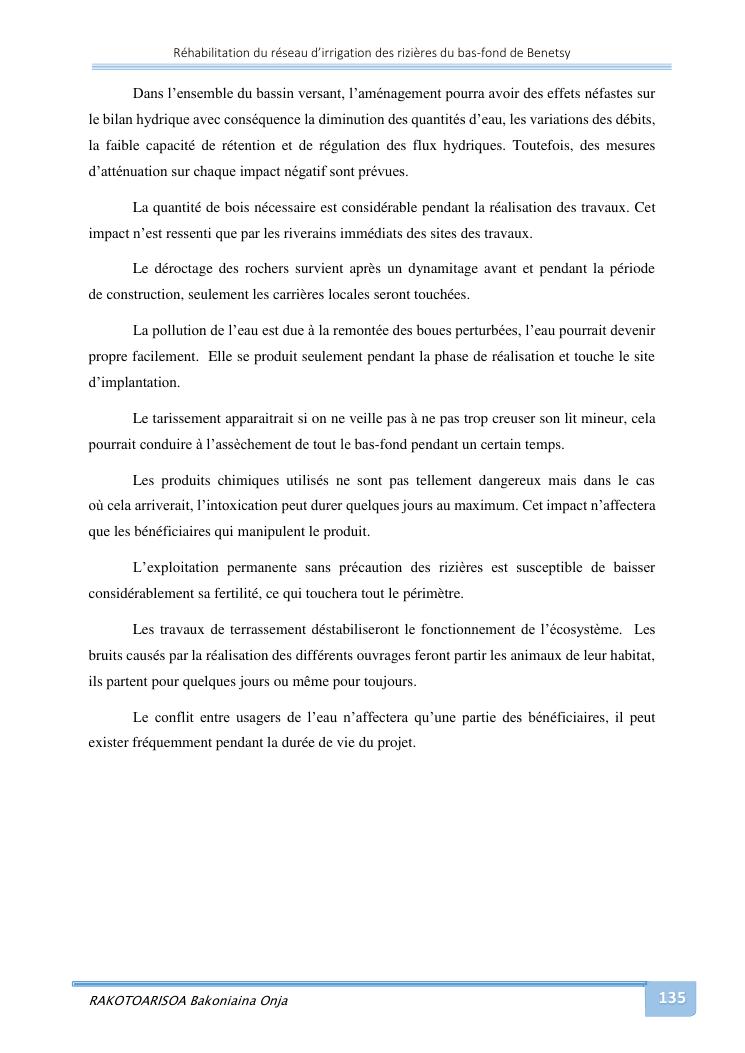 rehabilitation du reseau d'irrigation des rizieres du bas-fond de benetsy commune rurale matsakabanja district mitsinjo