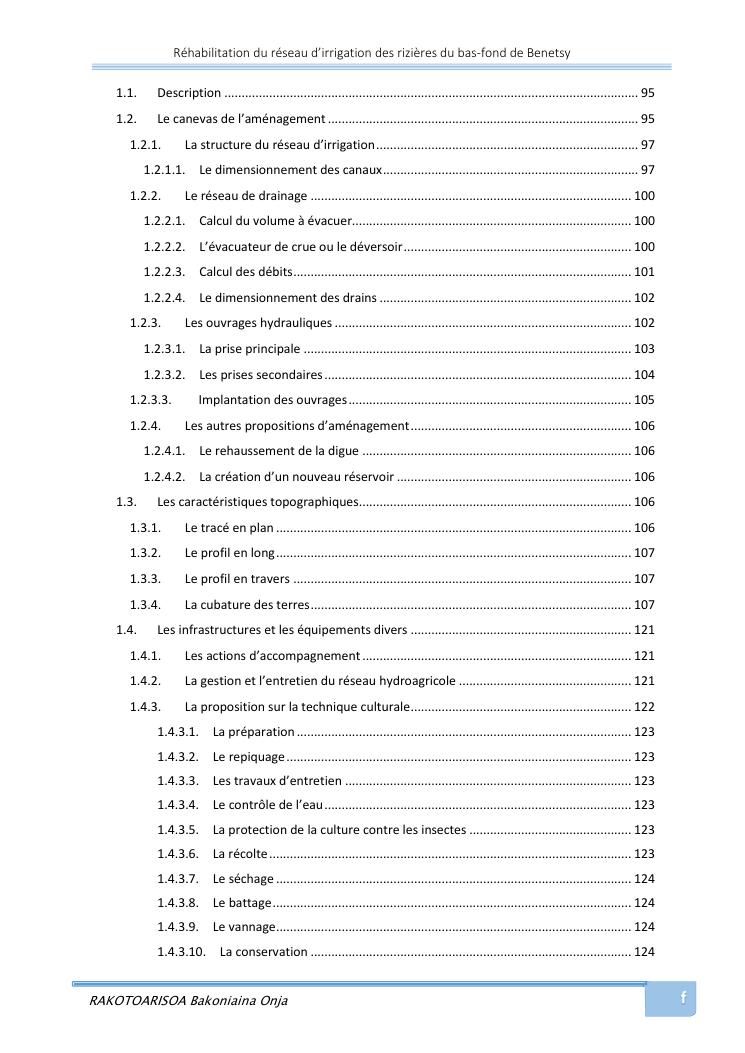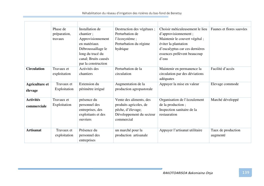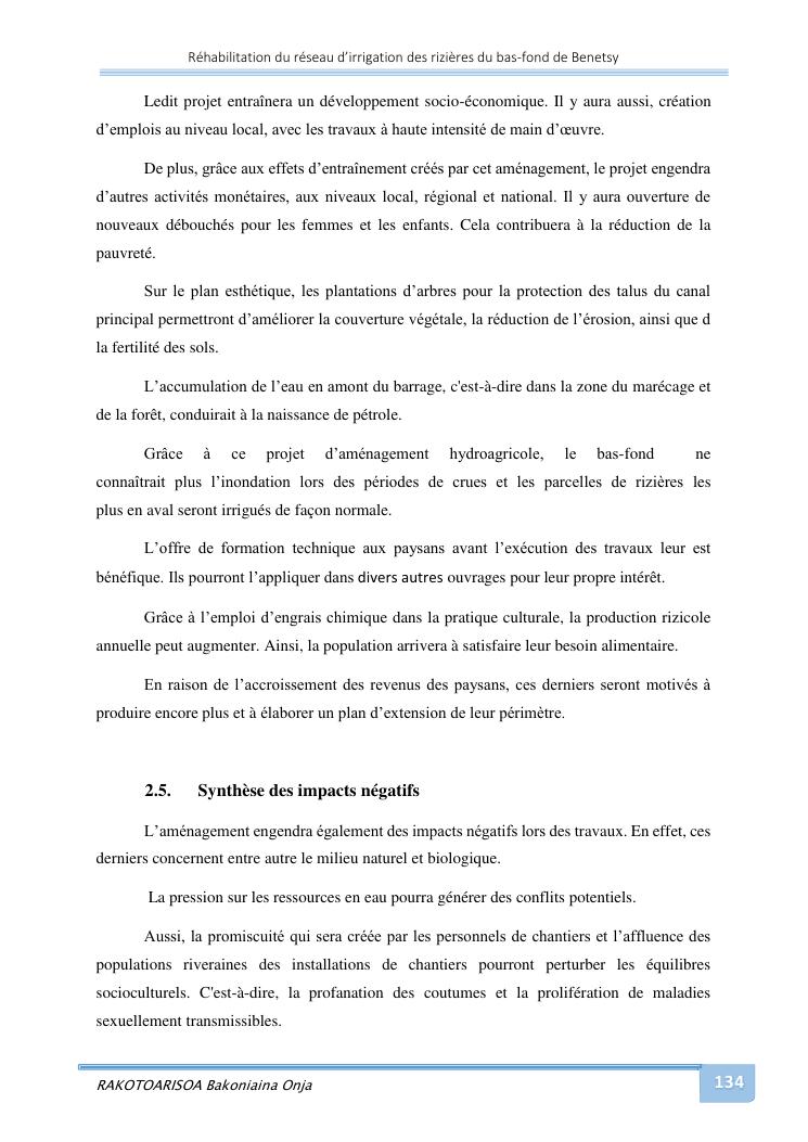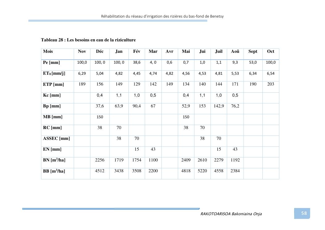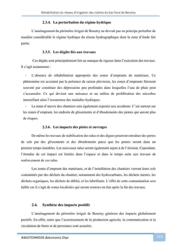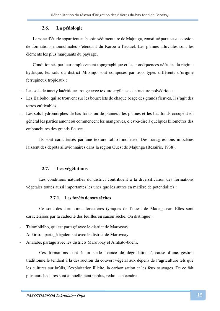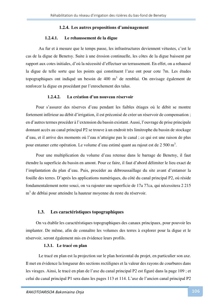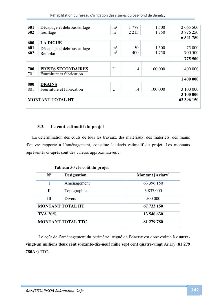 rehabilitation du reseau d'irrigation des rizieres du bas-fond de benetsy commune rurale matsakabanja district mitsinjo