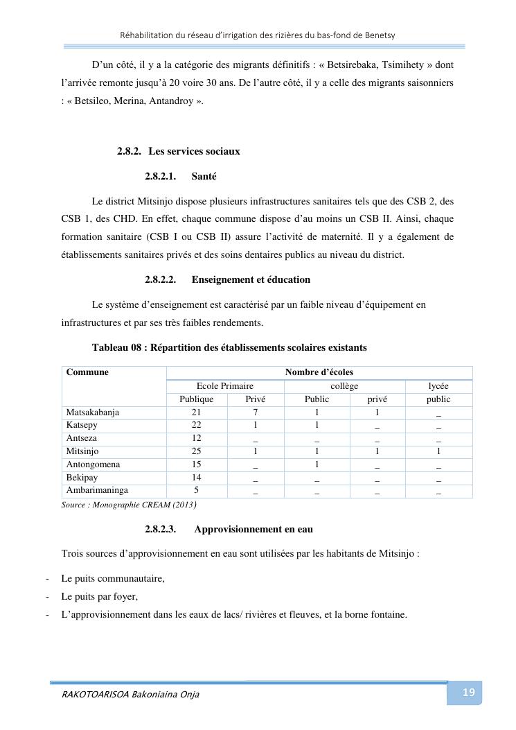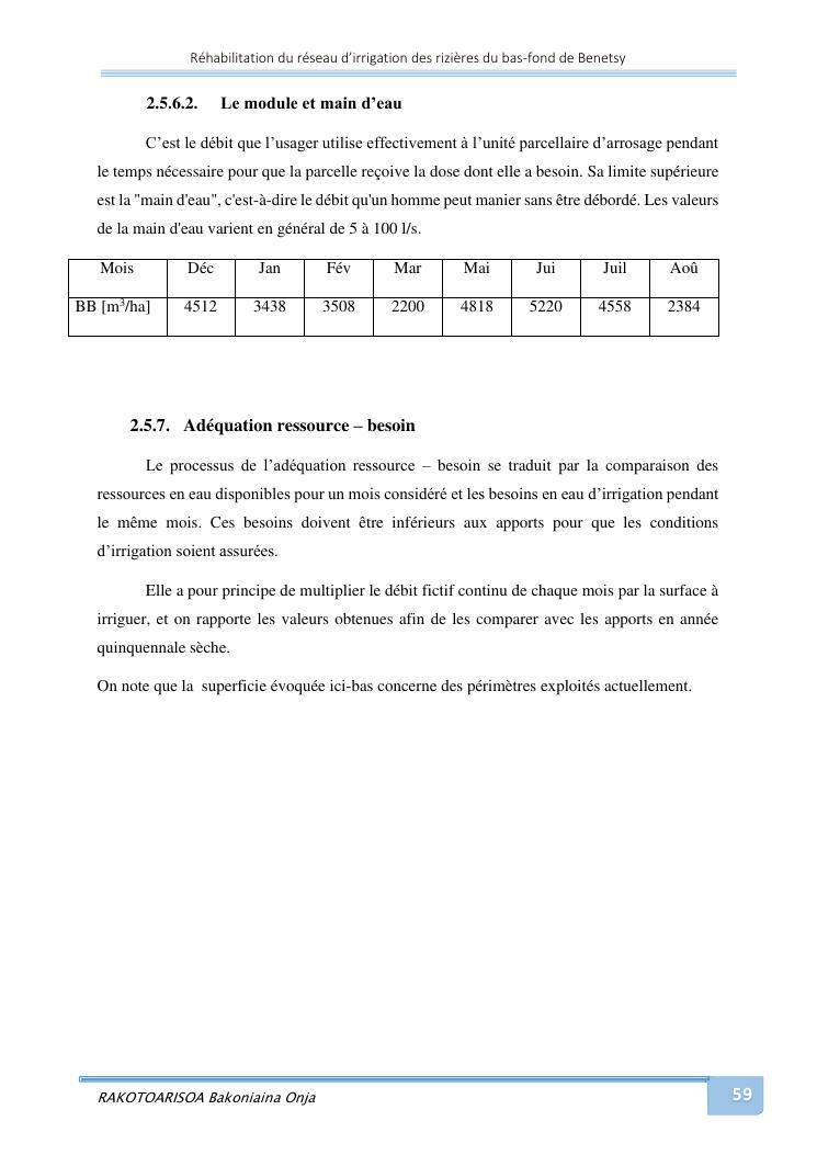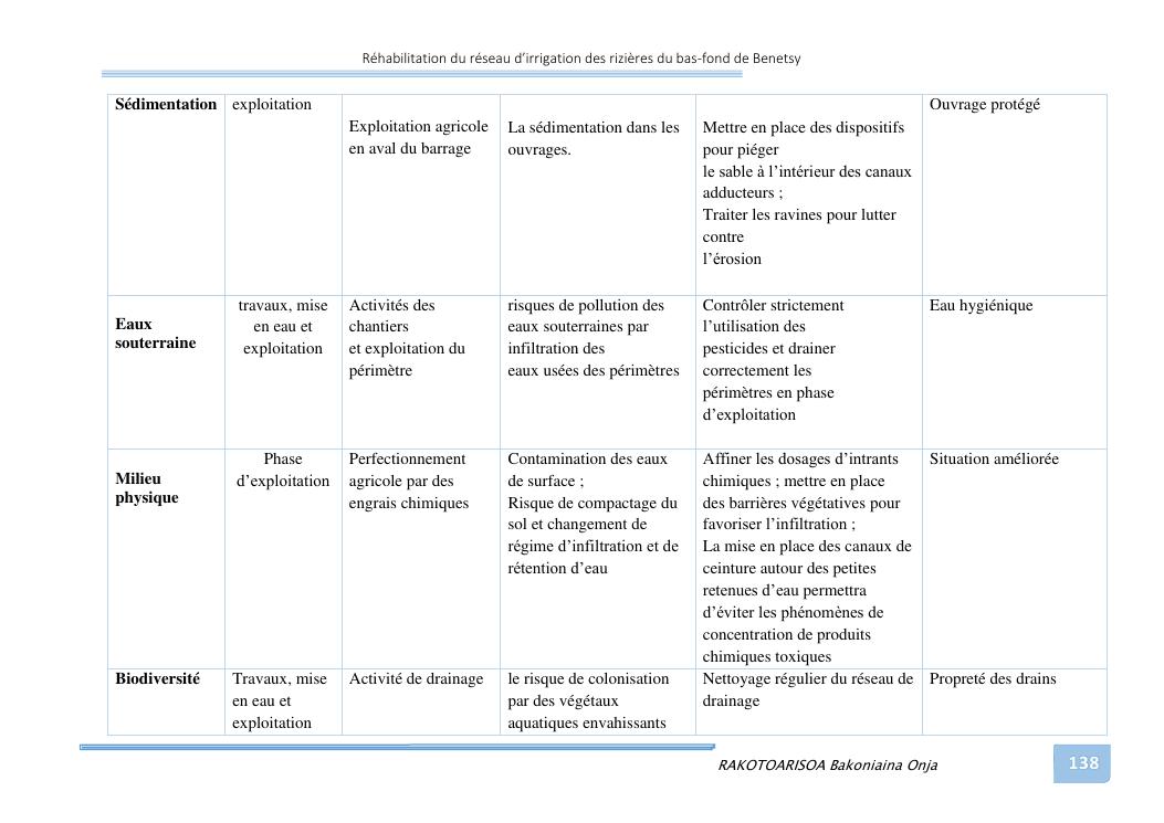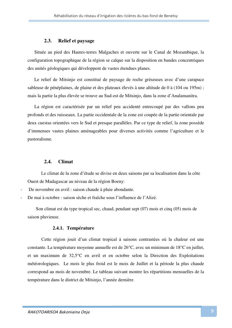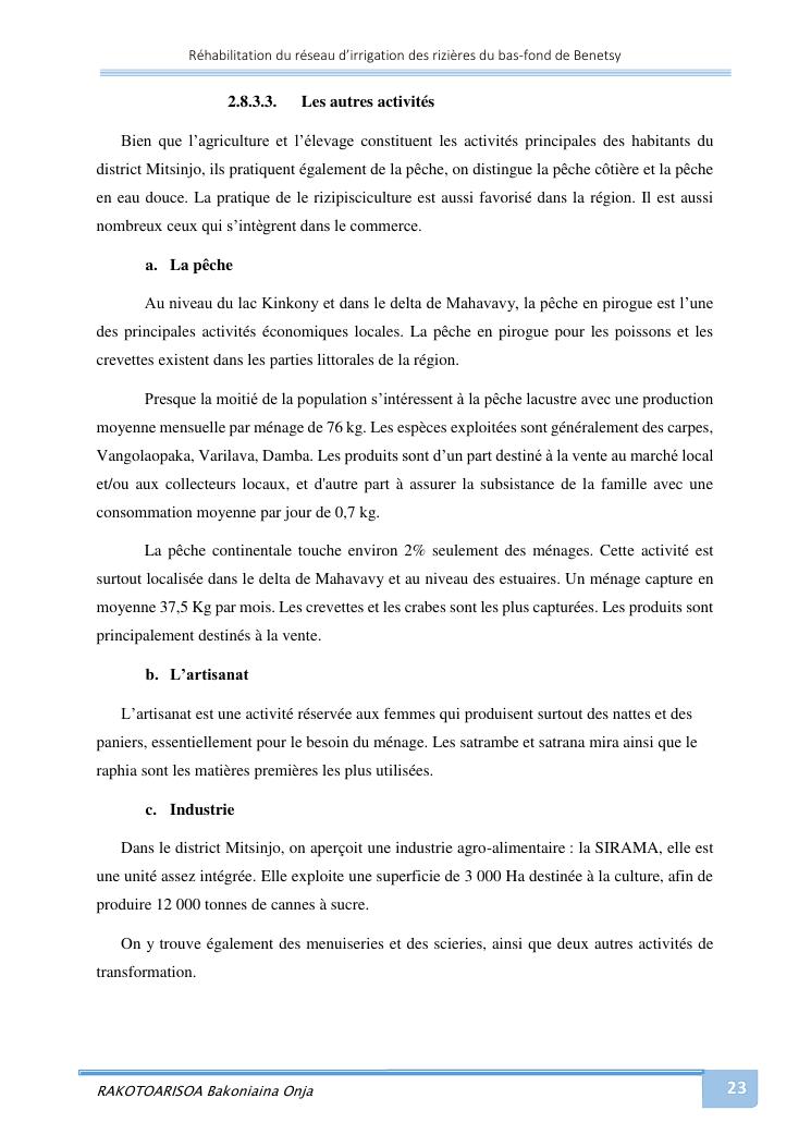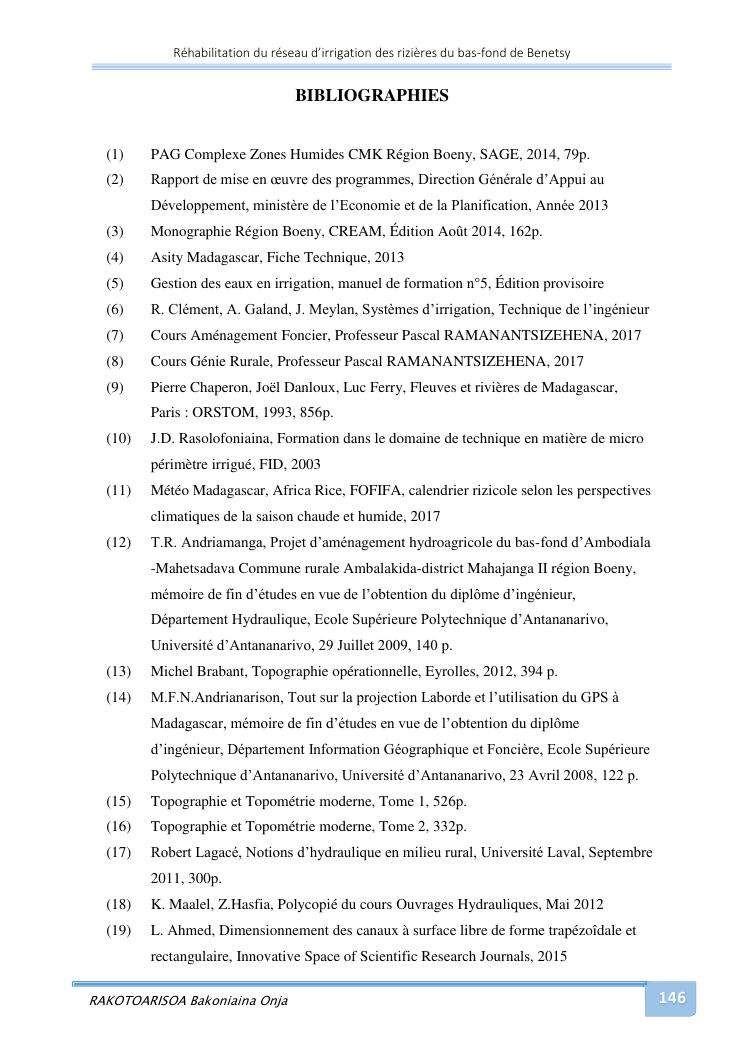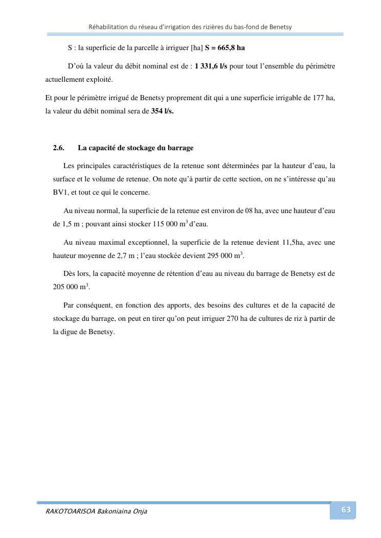 rehabilitation du reseau d'irrigation des rizieres du bas-fond de benetsy commune rurale matsakabanja district mitsinjo
