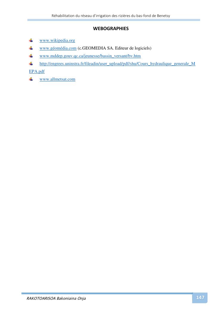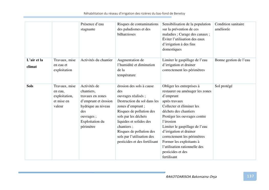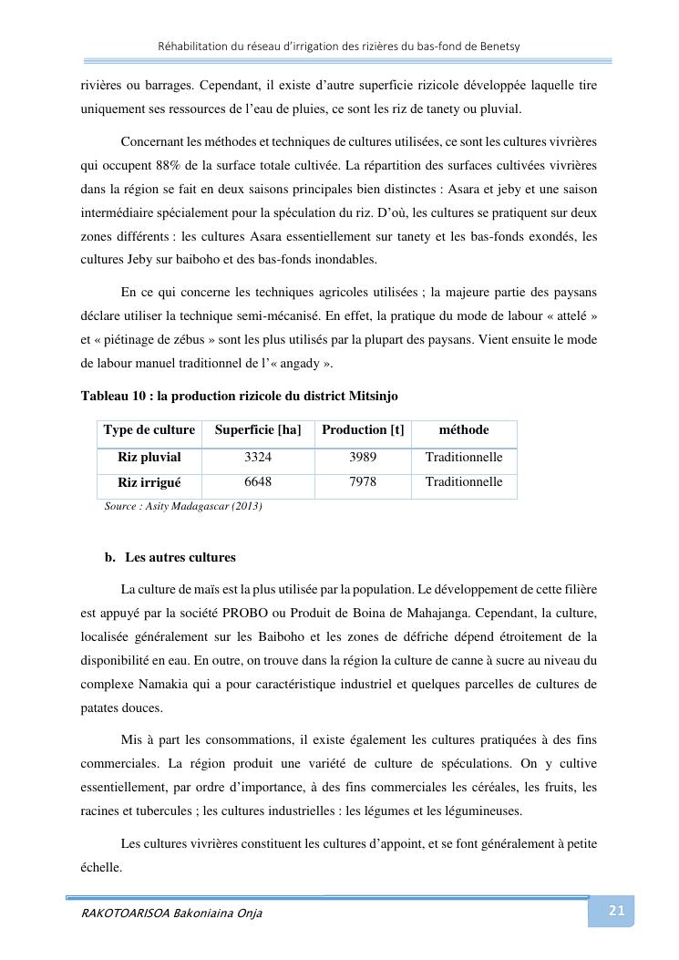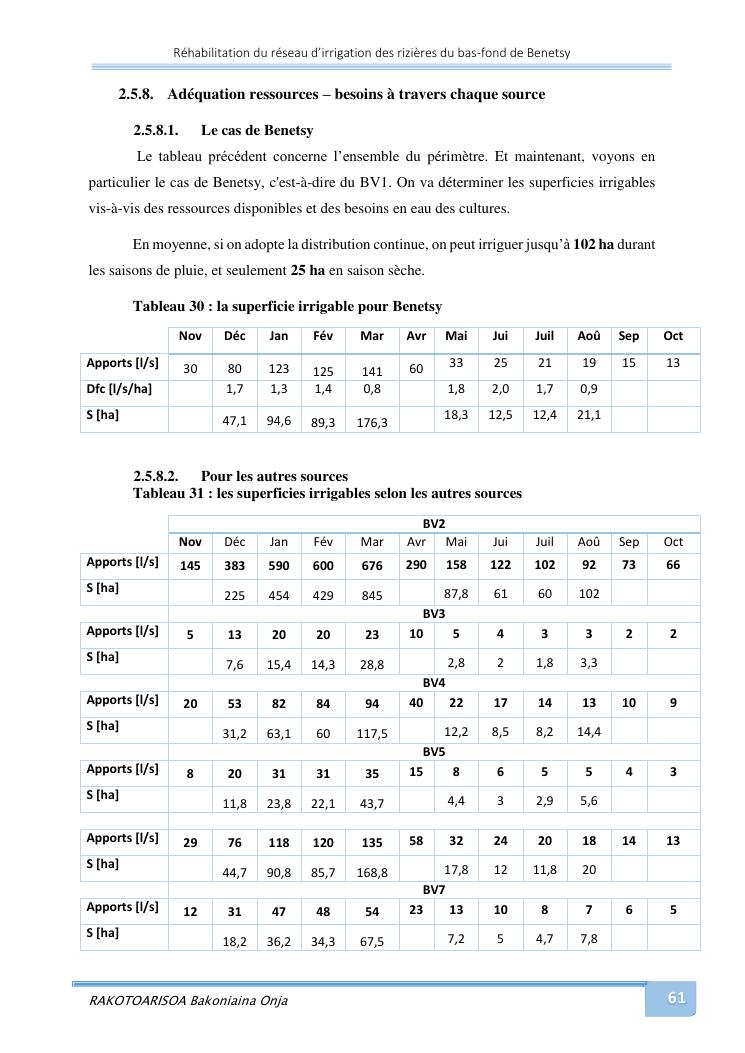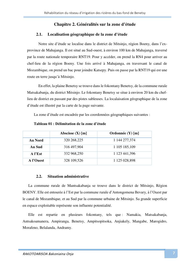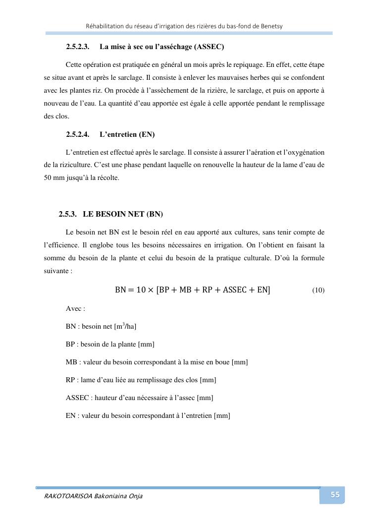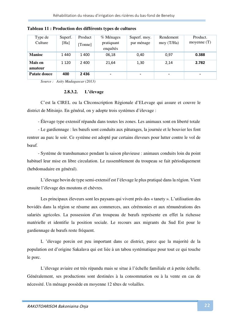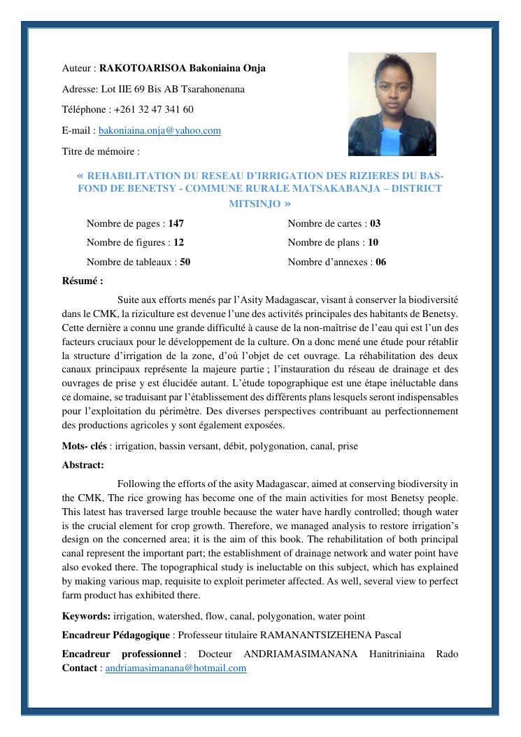 rehabilitation du reseau d'irrigation des rizieres du bas-fond de benetsy commune rurale matsakabanja district mitsinjo