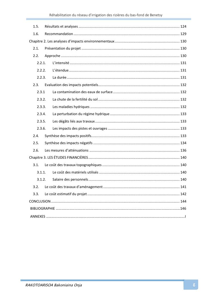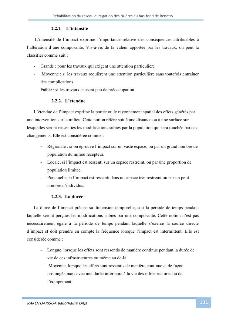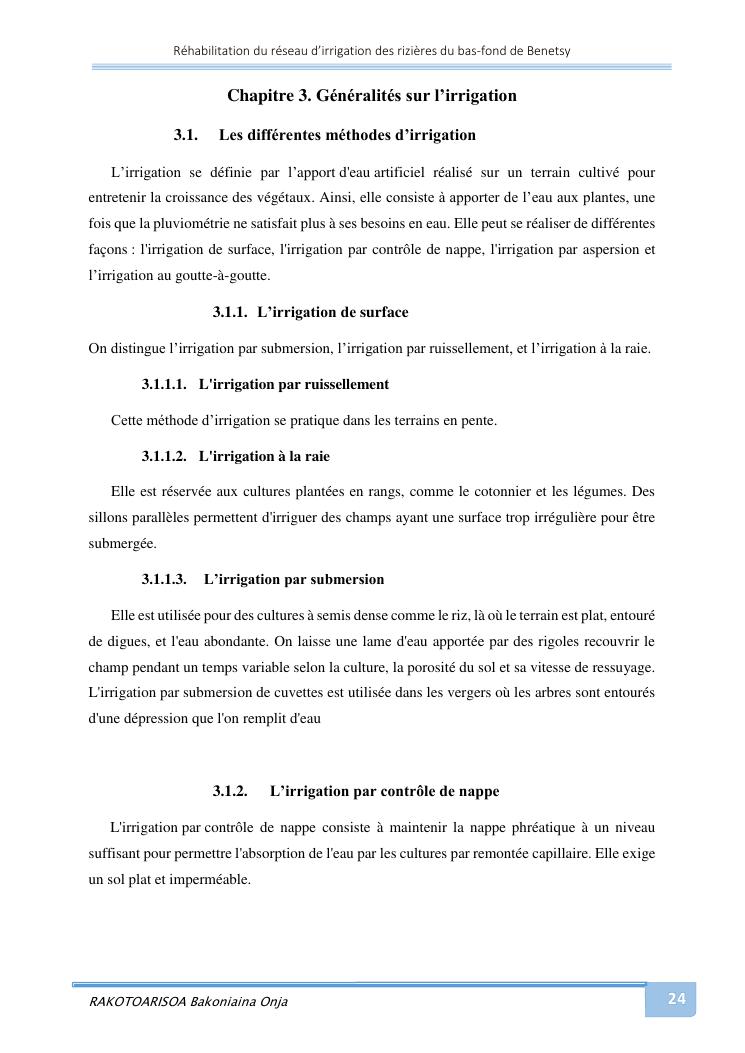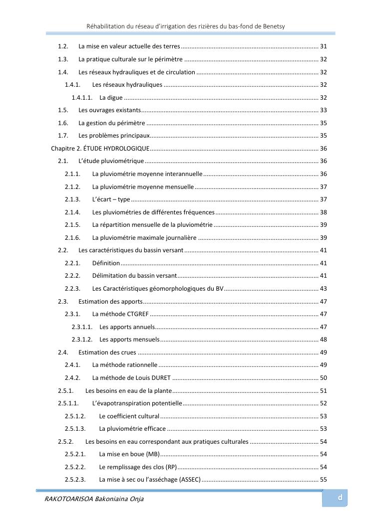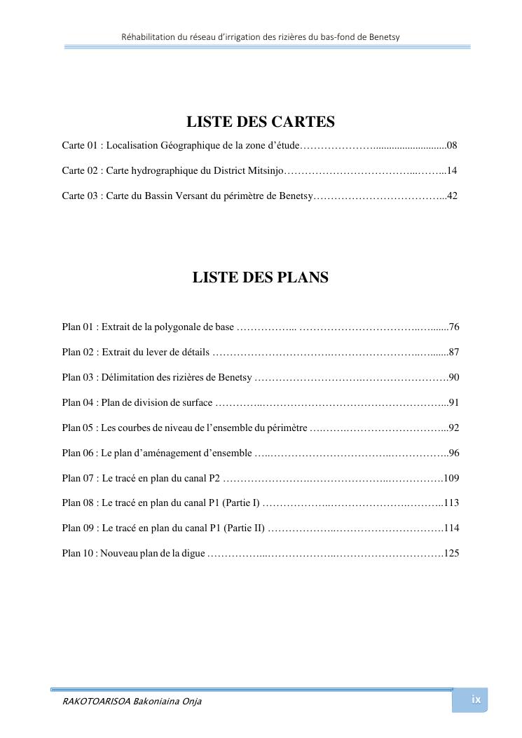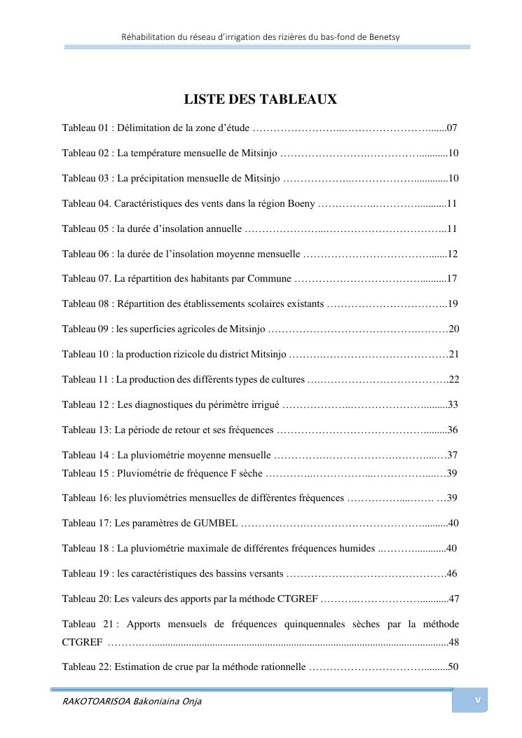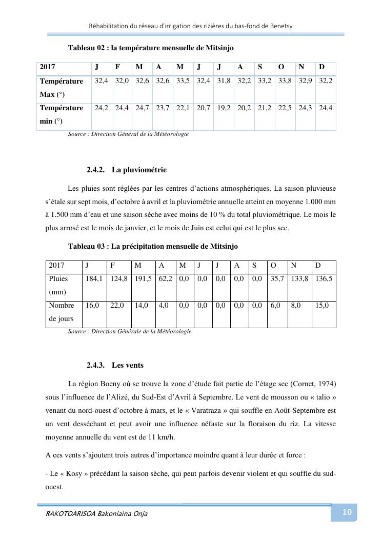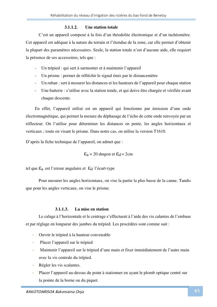rehabilitation du reseau d'irrigation des rizieres du bas-fond de benetsy commune rurale matsakabanja district mitsinjo