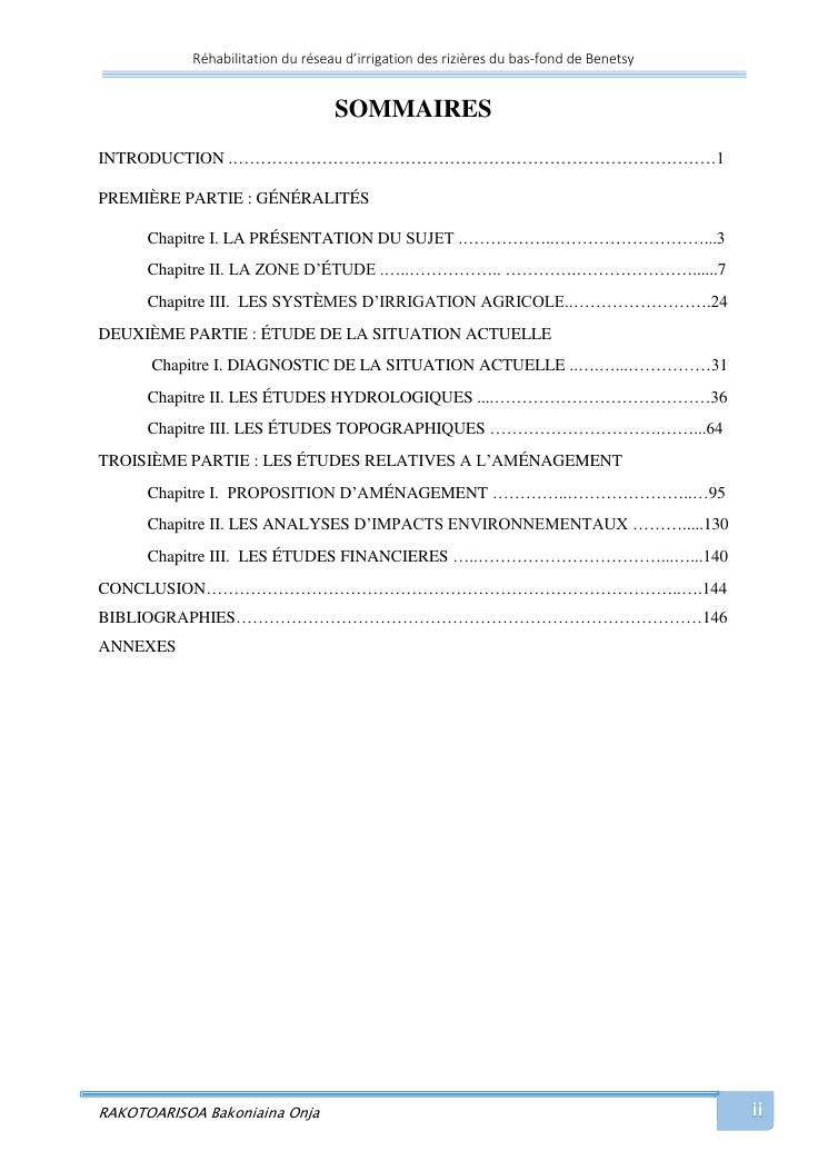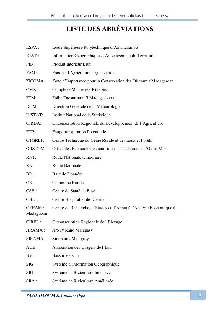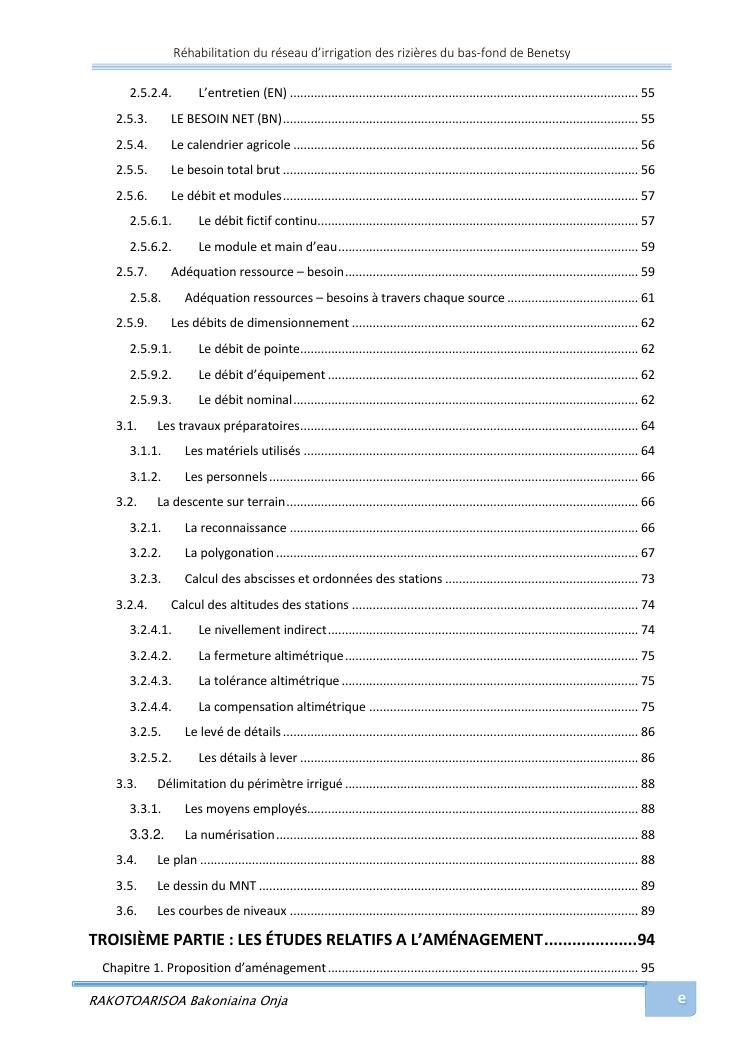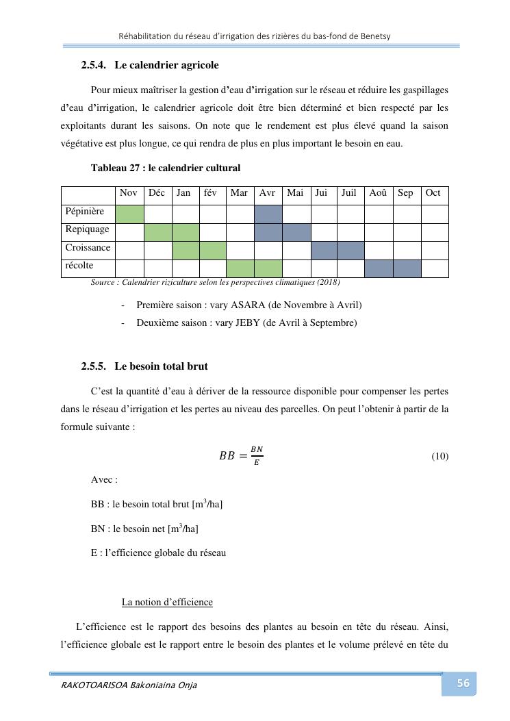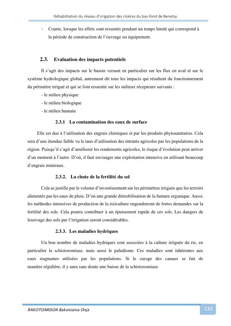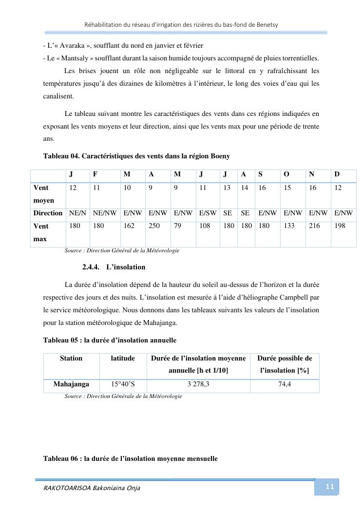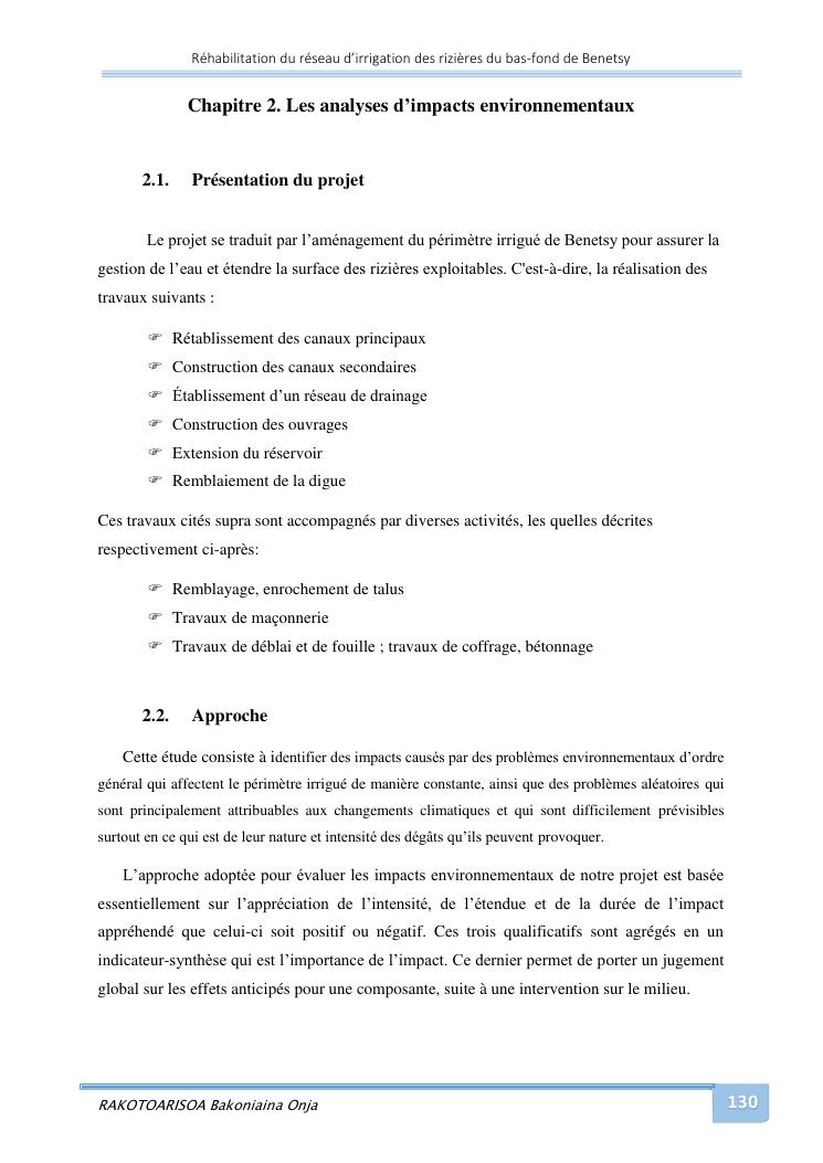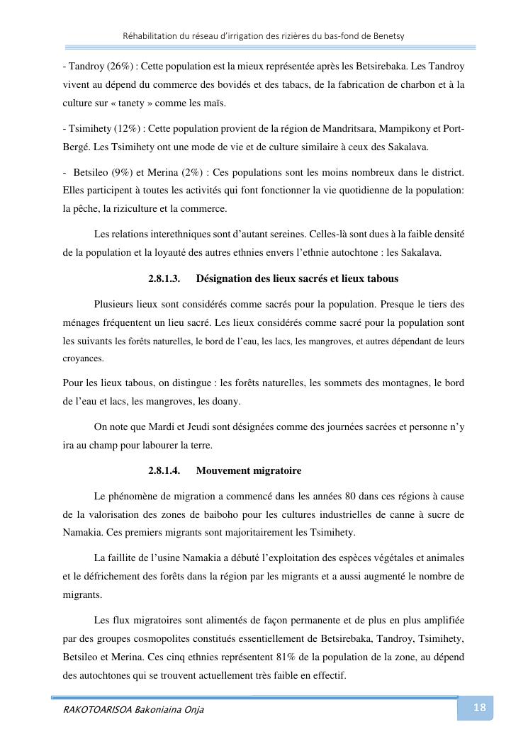 rehabilitation du reseau d'irrigation des rizieres du bas-fond de benetsy commune rurale matsakabanja district mitsinjo
