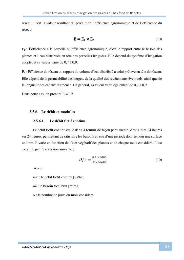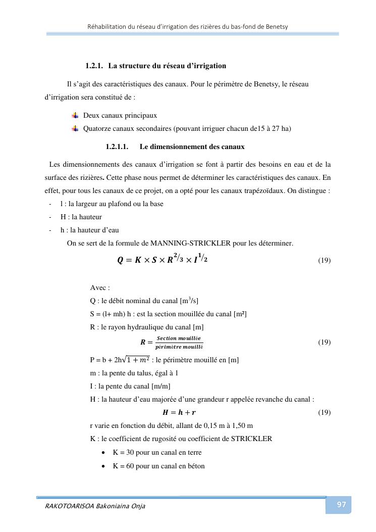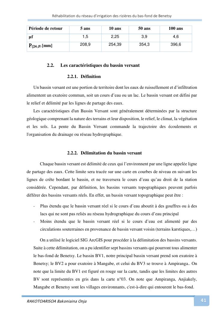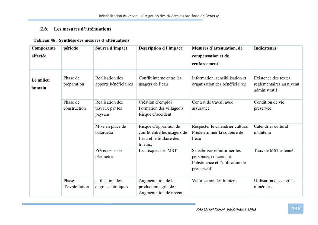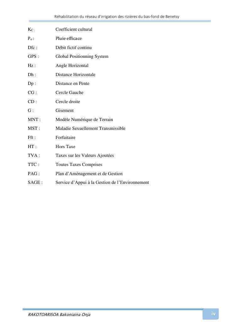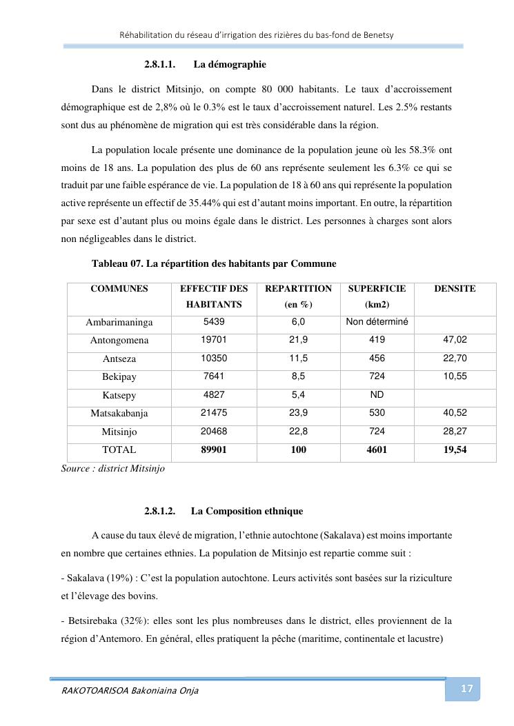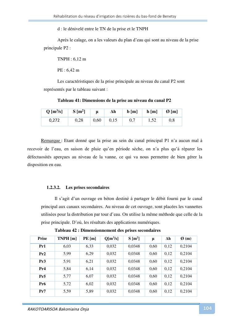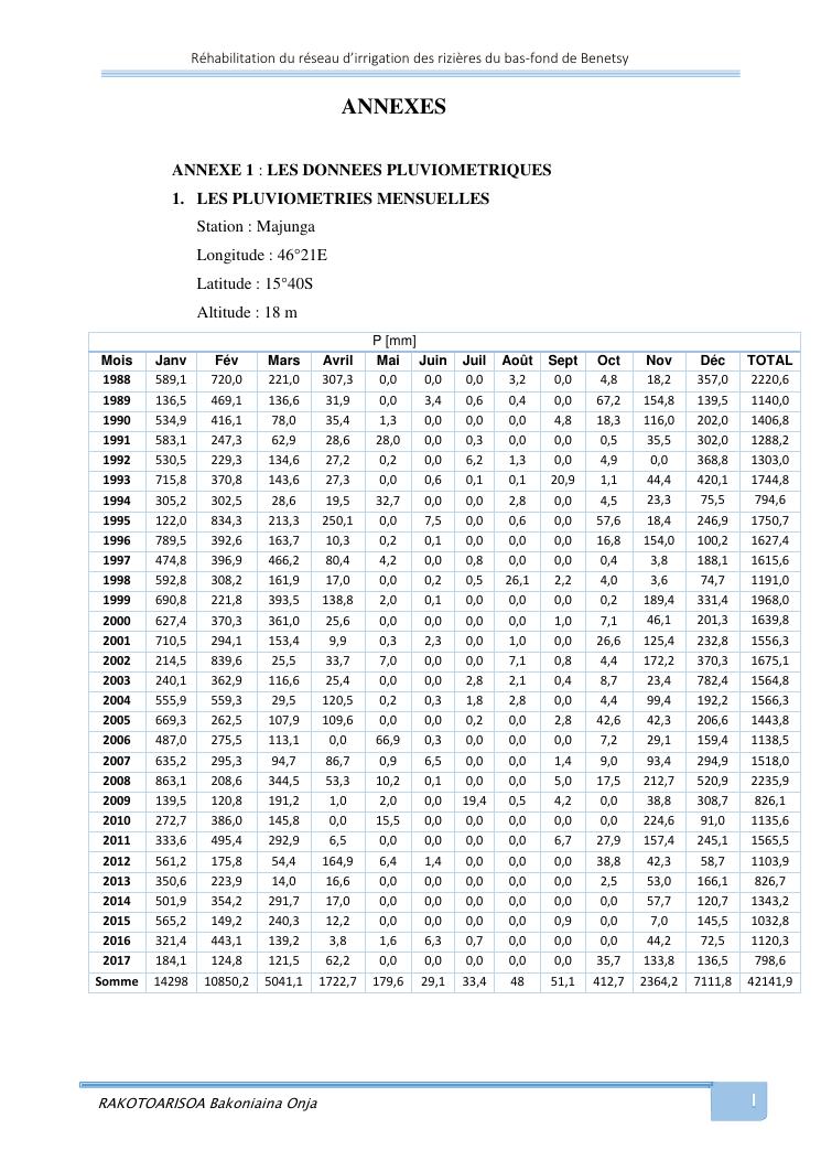 rehabilitation du reseau d'irrigation des rizieres du bas-fond de benetsy commune rurale matsakabanja district mitsinjo