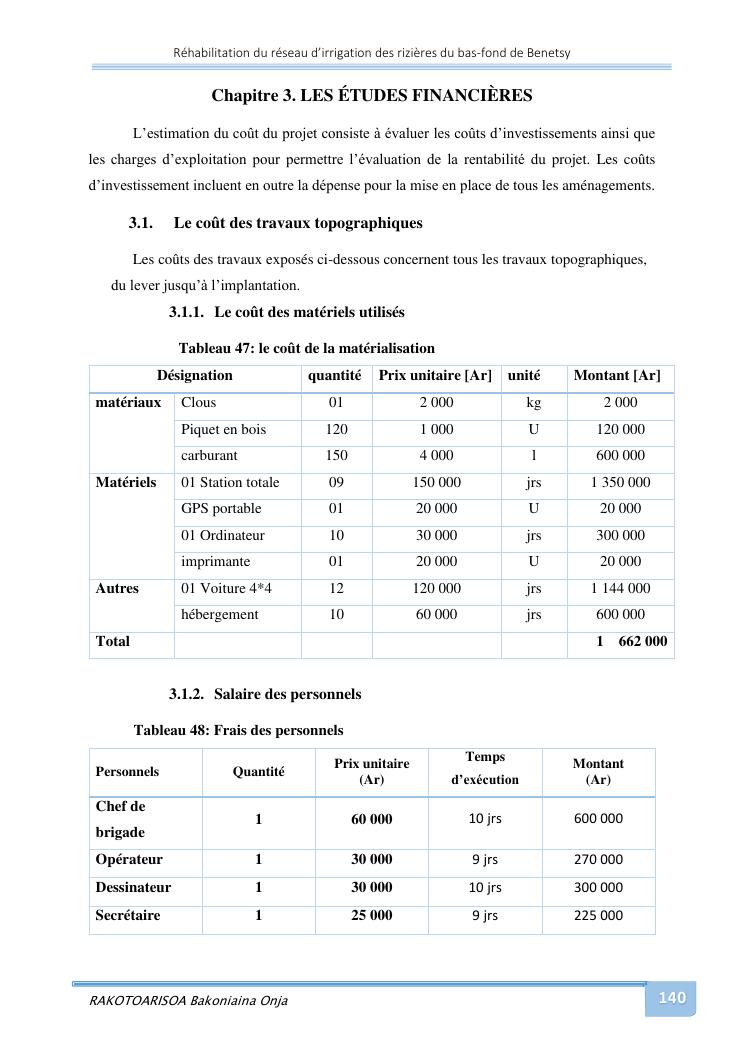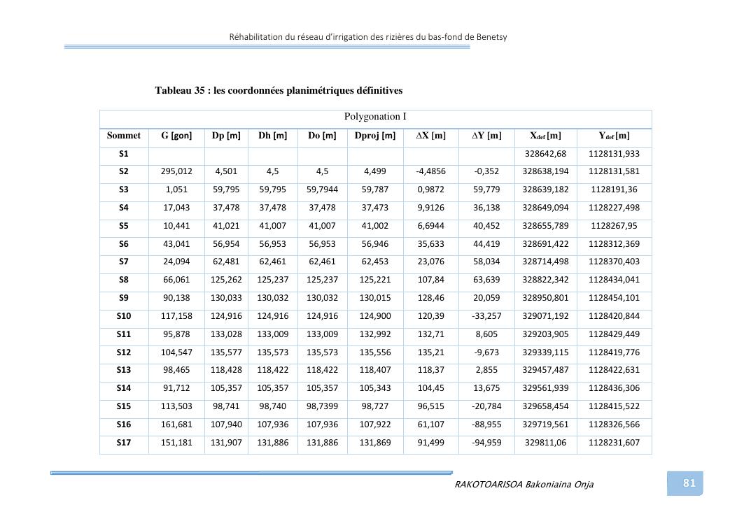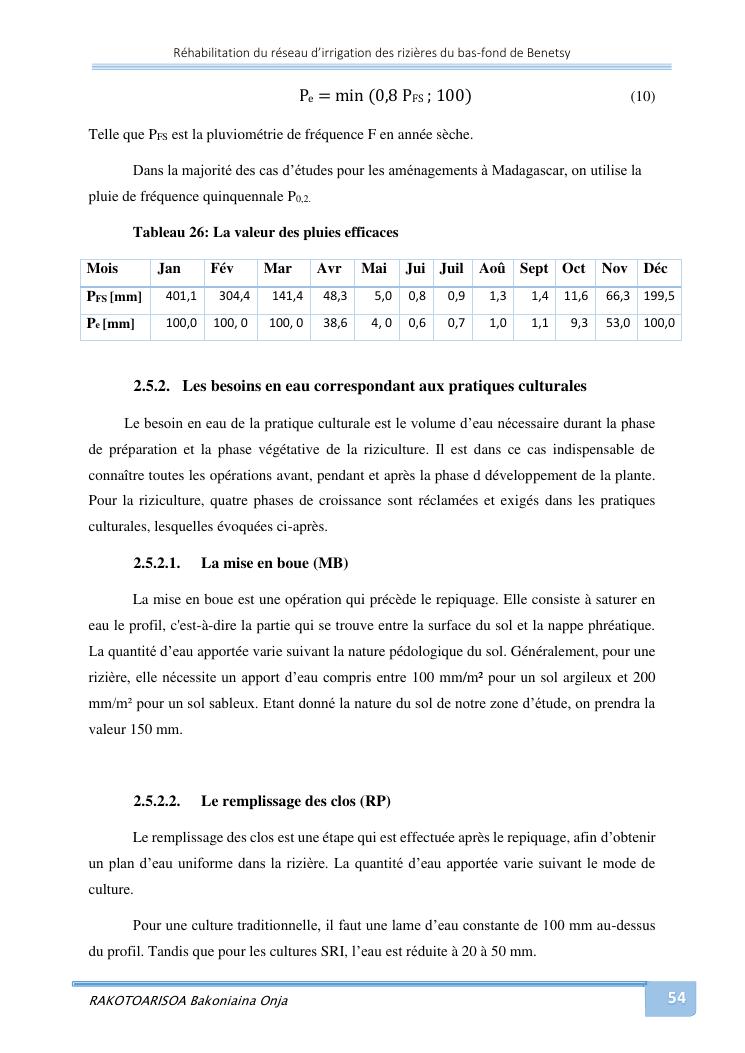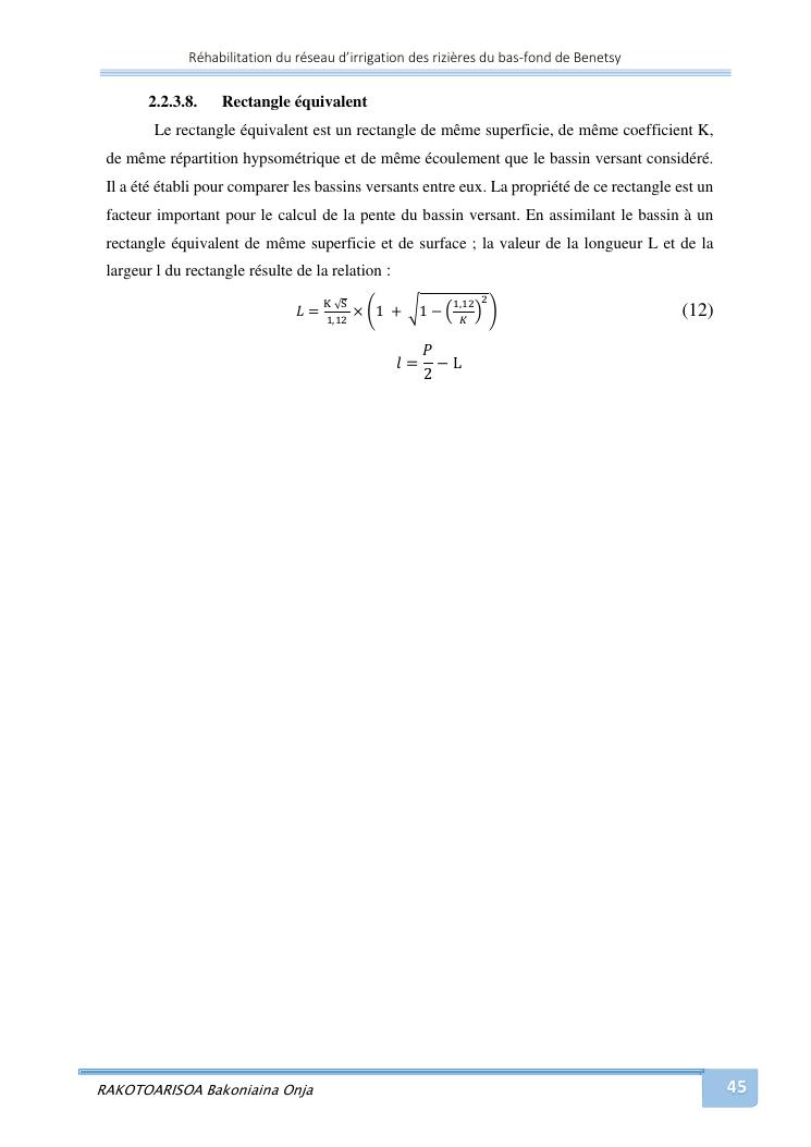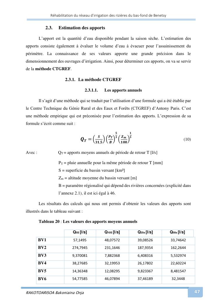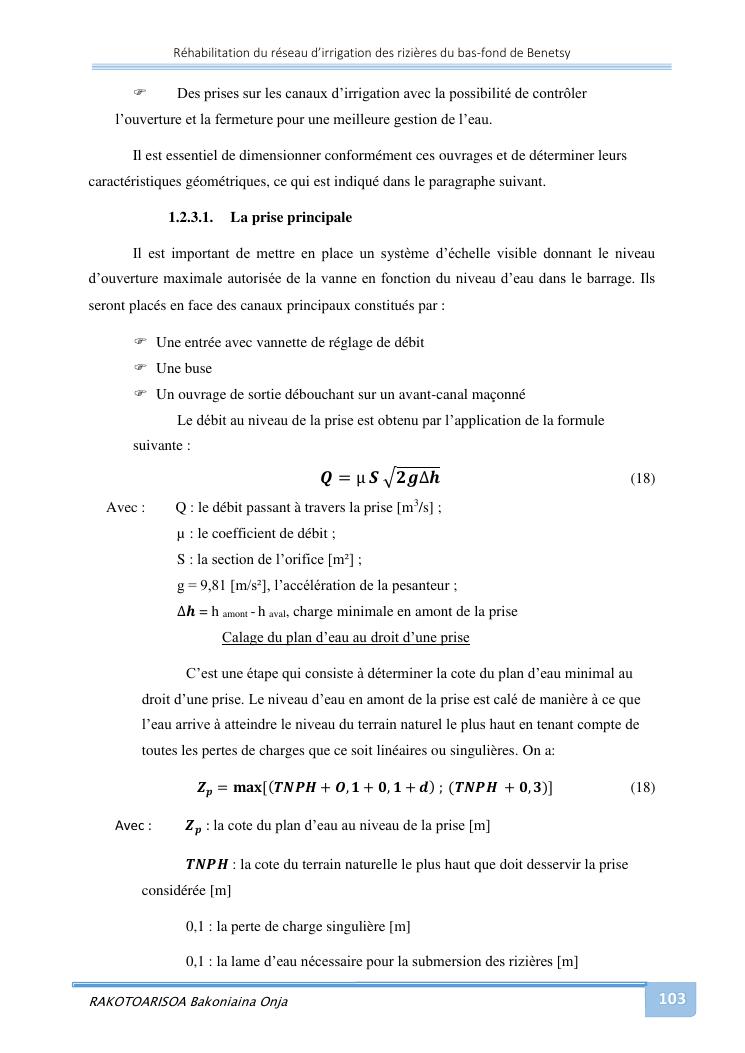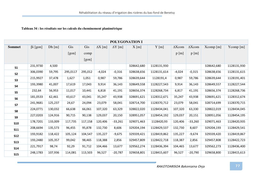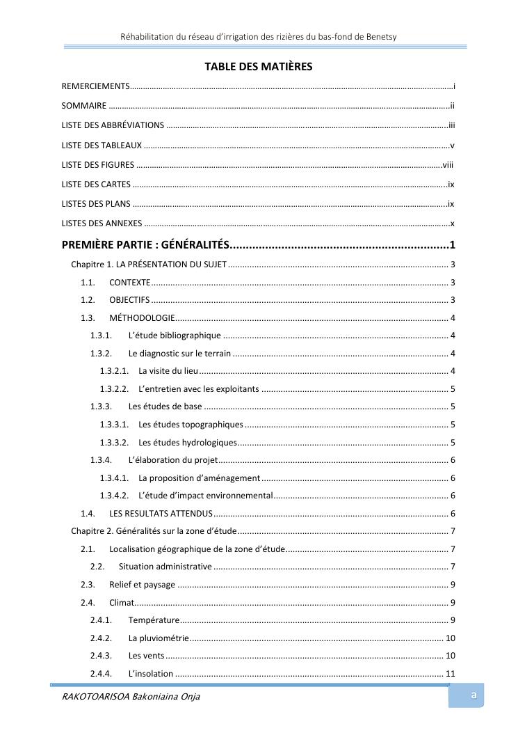 rehabilitation du reseau d'irrigation des rizieres du bas-fond de benetsy commune rurale matsakabanja district mitsinjo