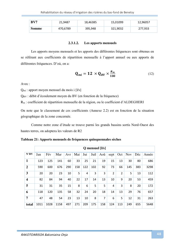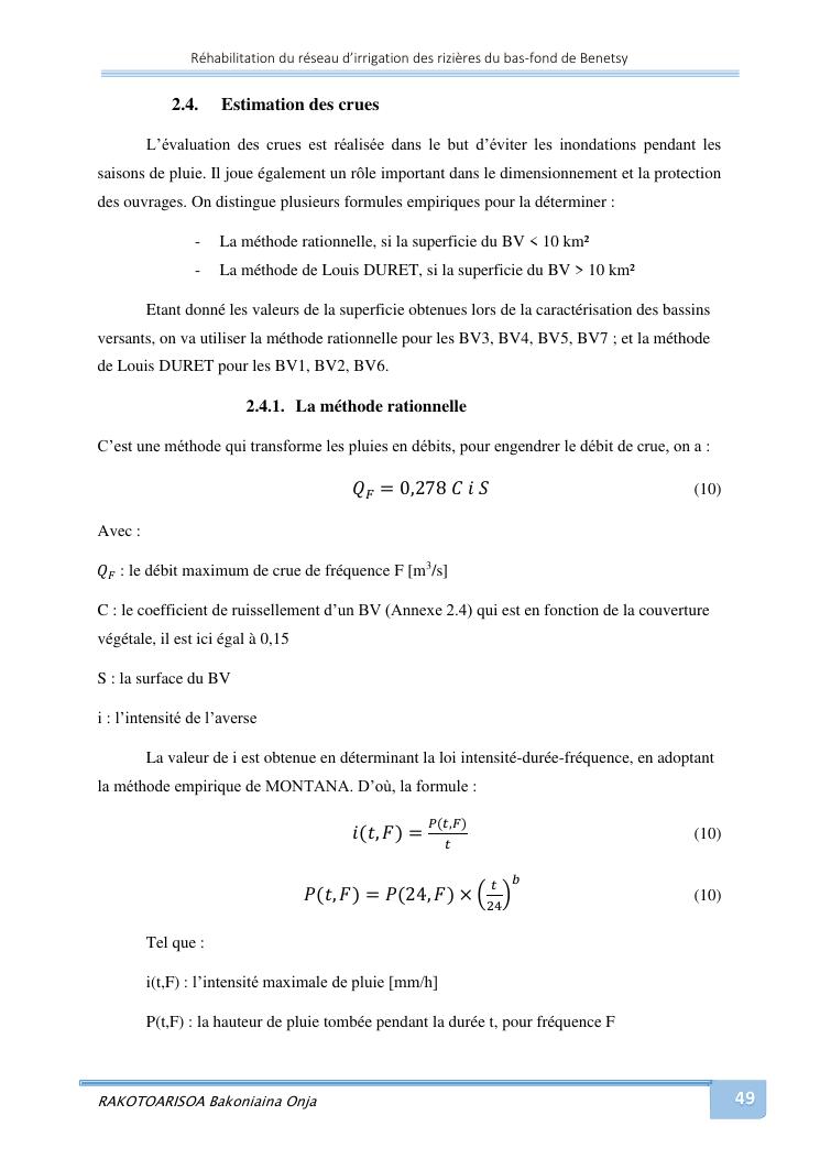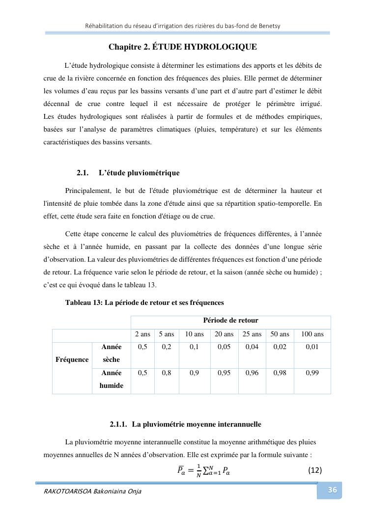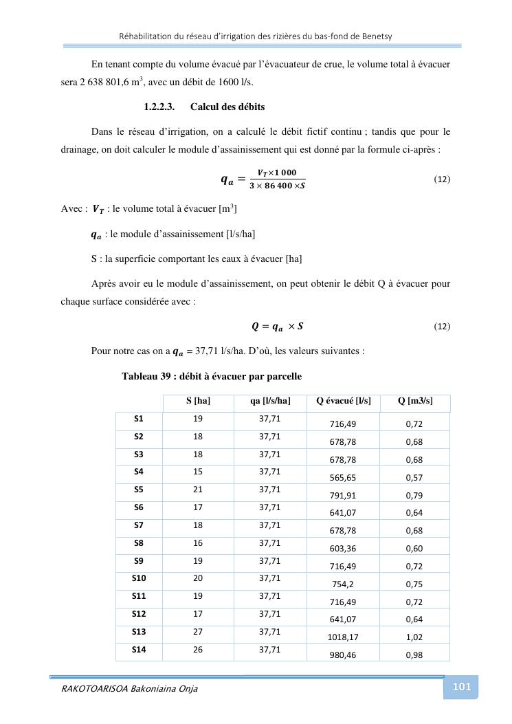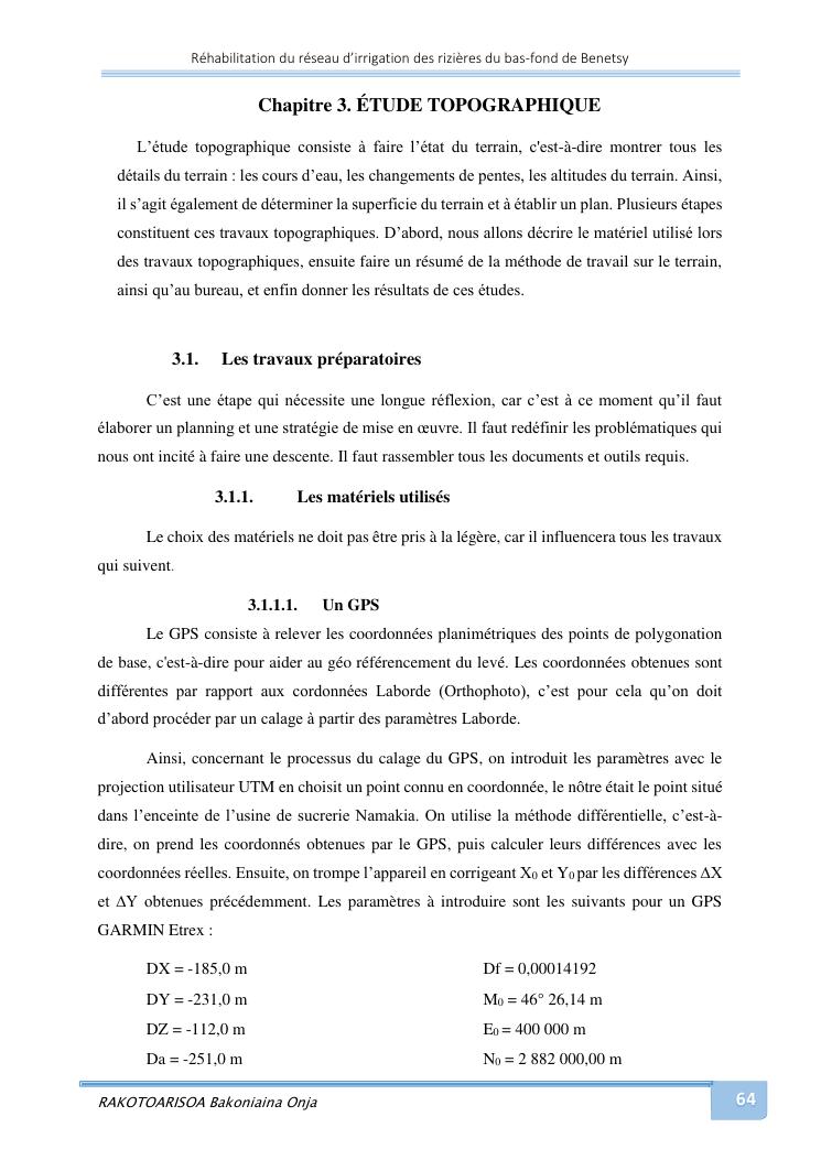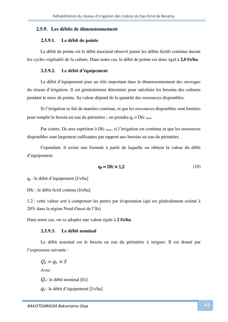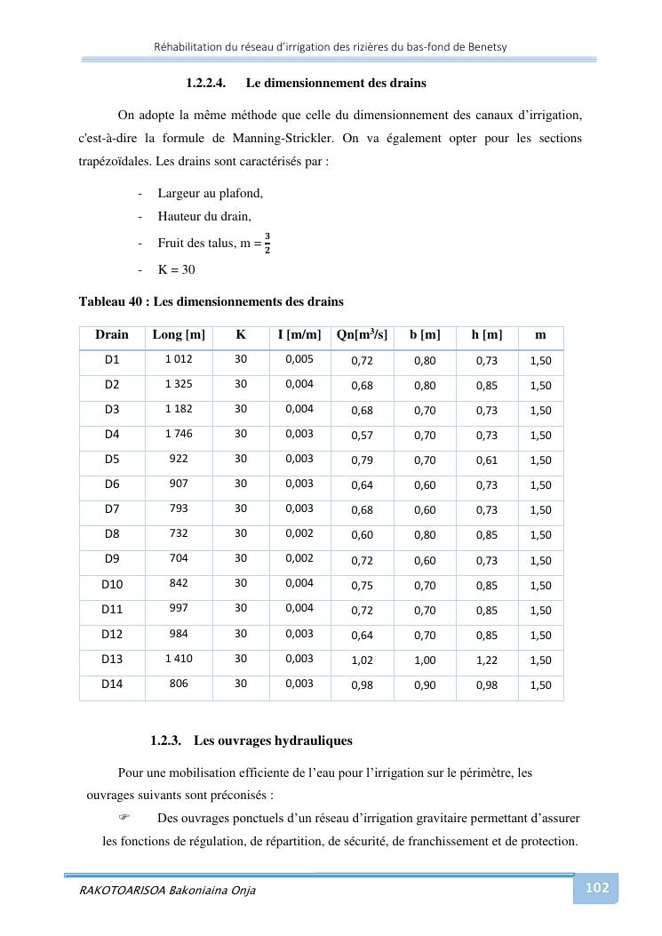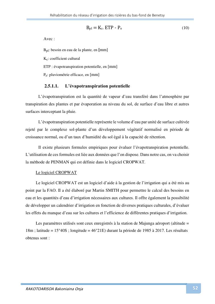 rehabilitation du reseau d'irrigation des rizieres du bas-fond de benetsy commune rurale matsakabanja district mitsinjo