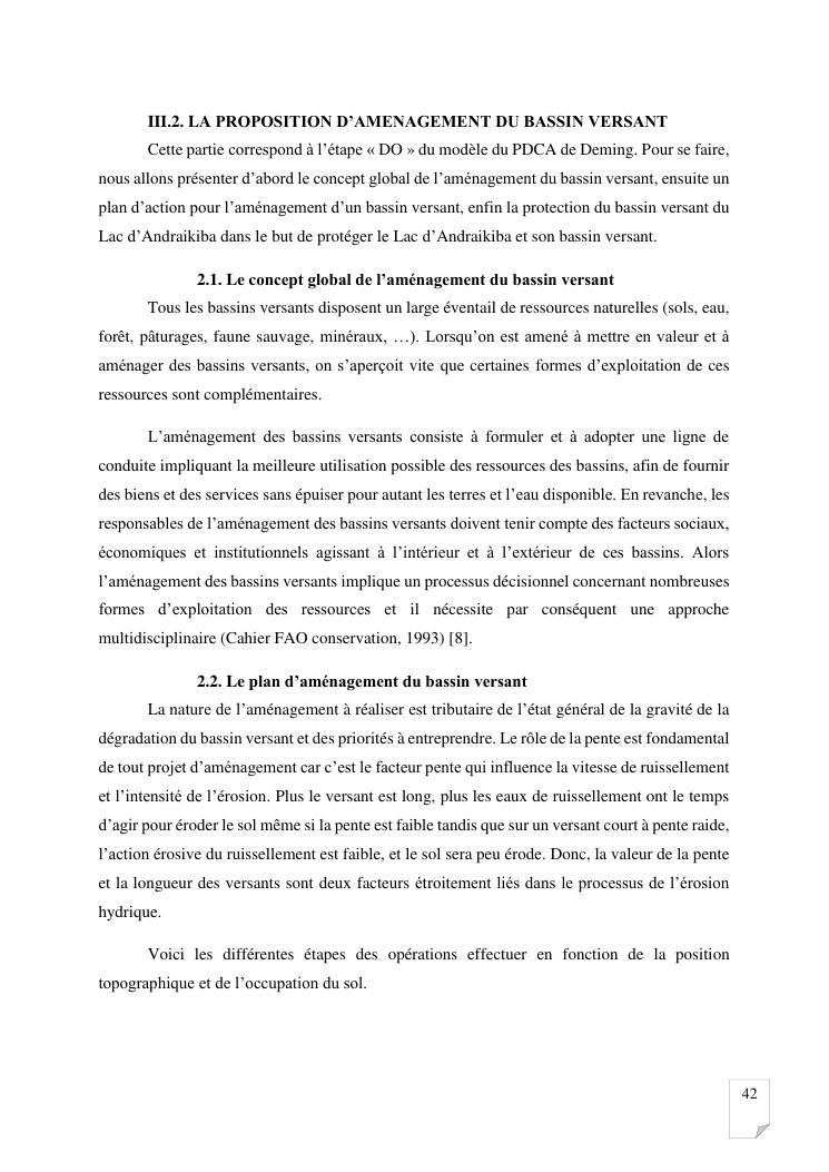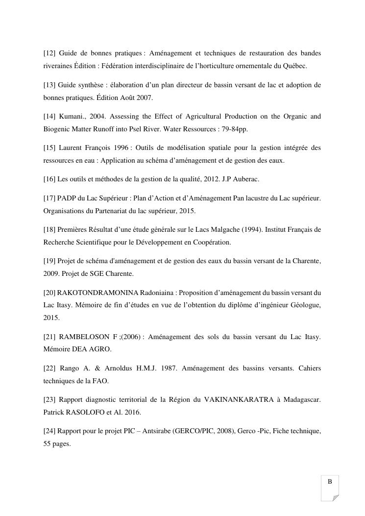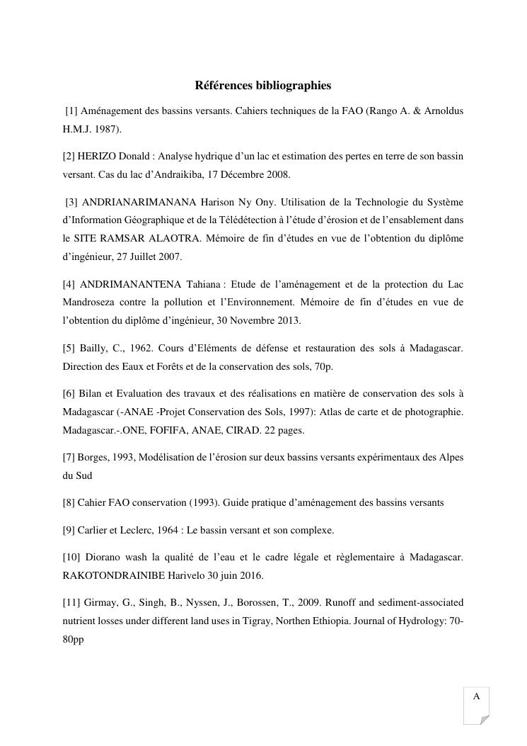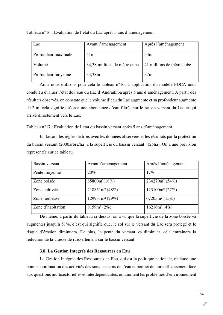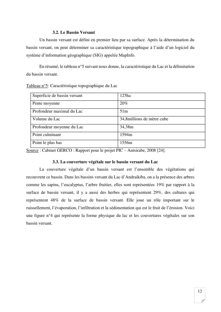 gestion et protection des eaux d'un lac par la modelisation de l'amenagement de son bassin versant. cas du lac andraikiba antsirabe i