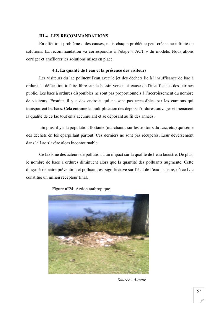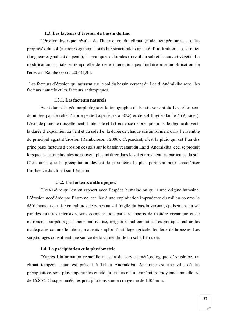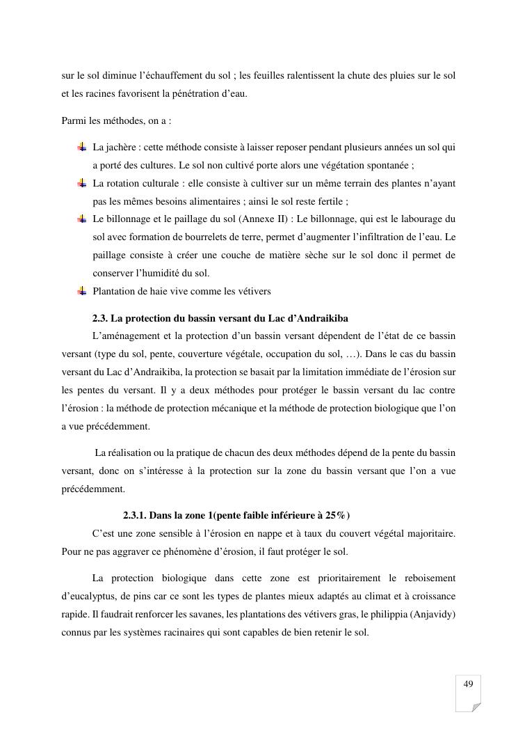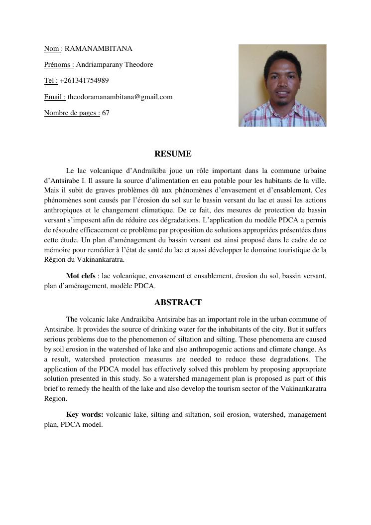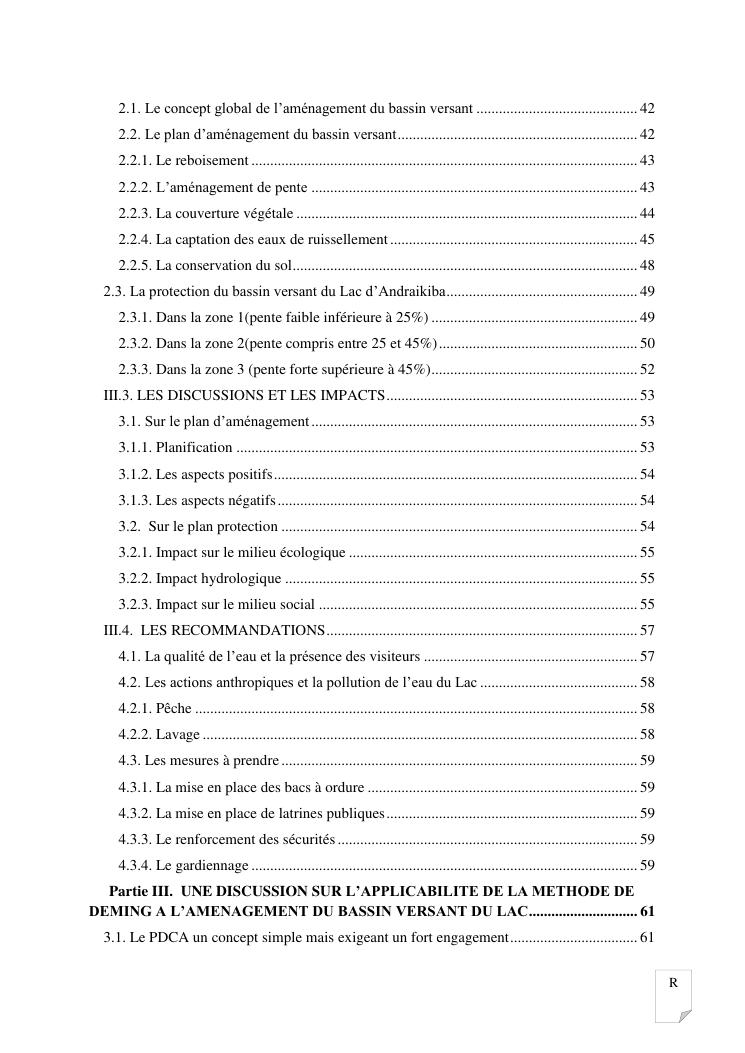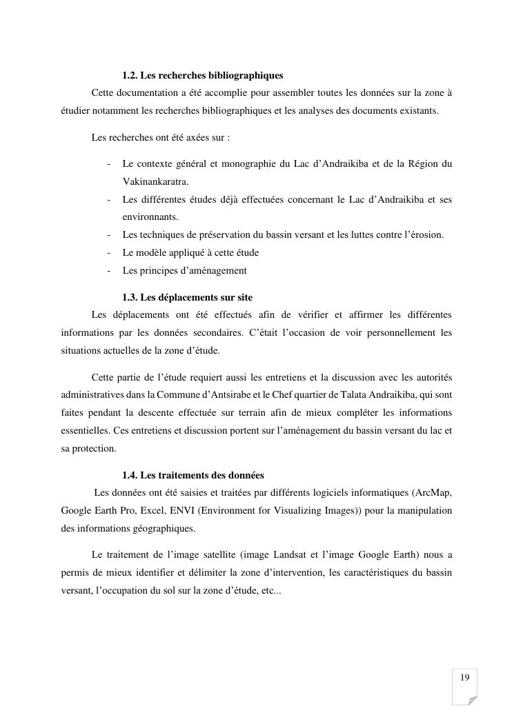 gestion et protection des eaux d'un lac par la modelisation de l'amenagement de son bassin versant. cas du lac andraikiba antsirabe i