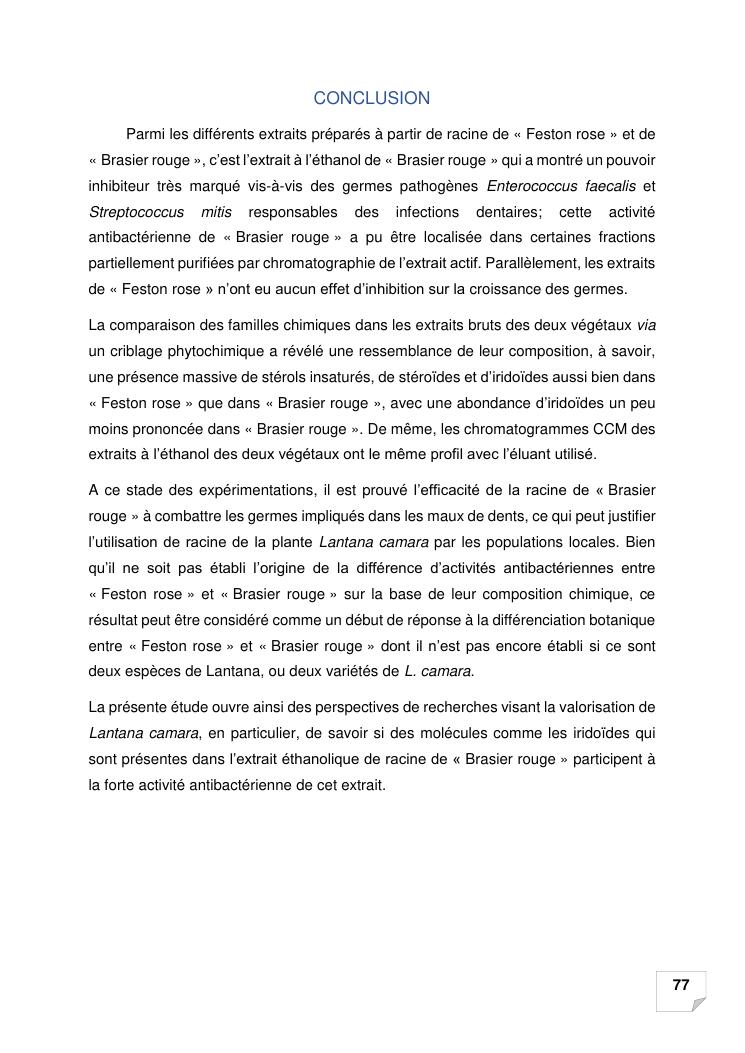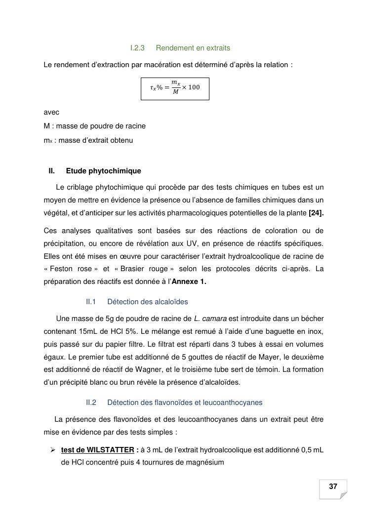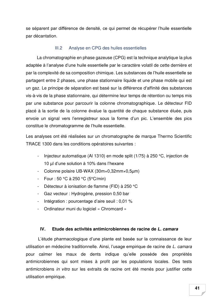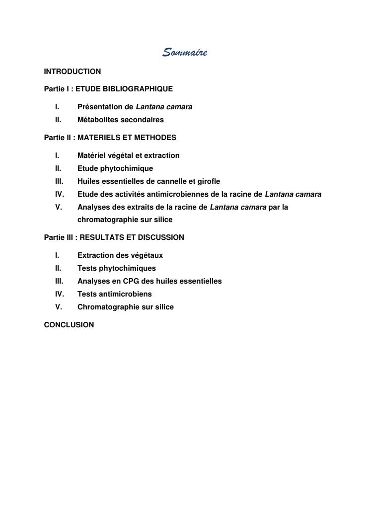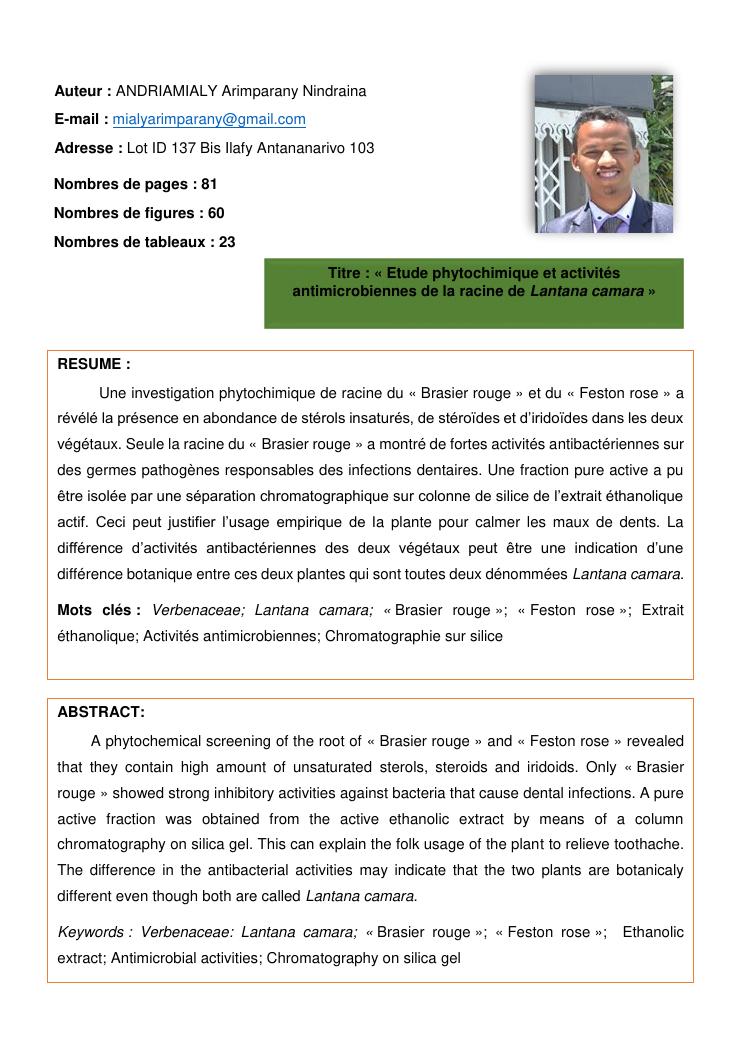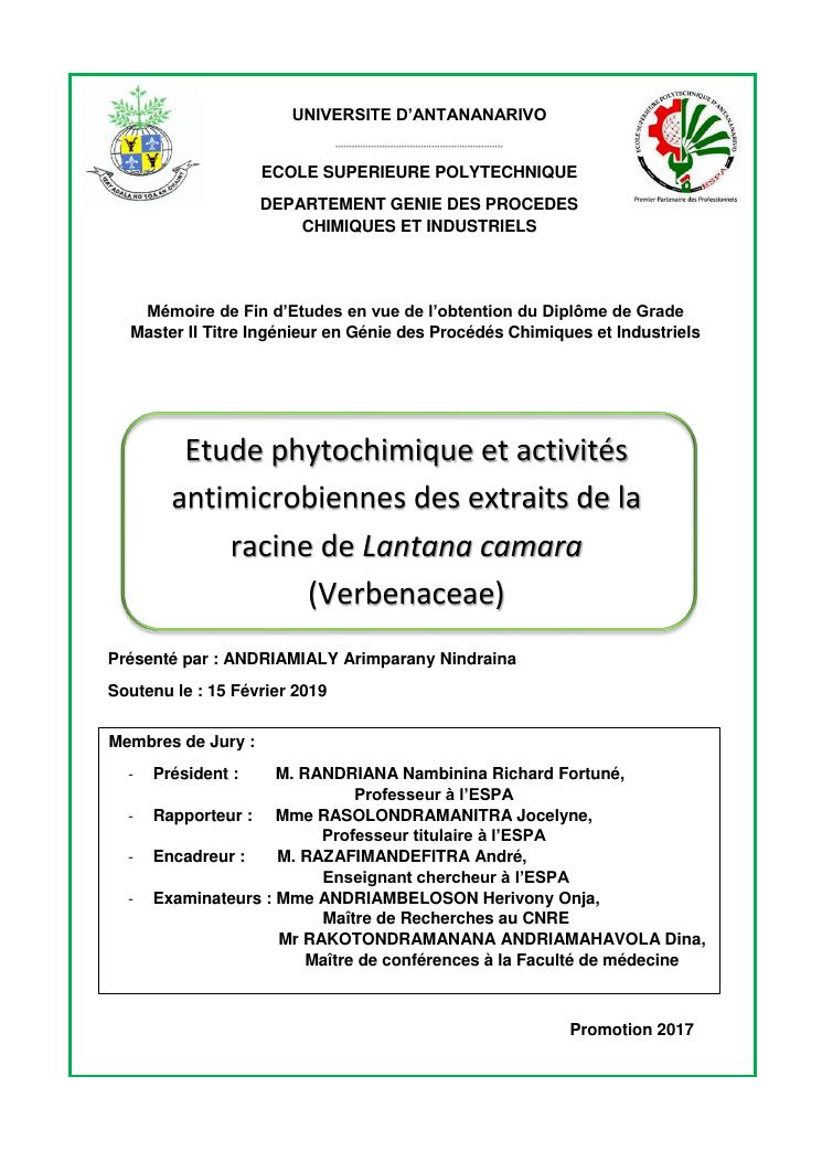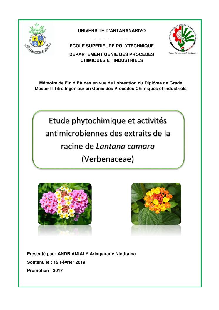 etude phytochi/ique et activites antimicrobiennes des extraits de la racine de lantana camara (verbenaceae