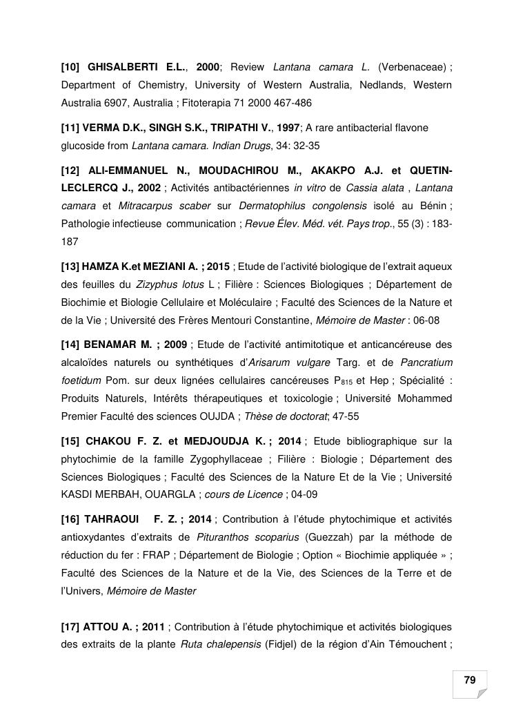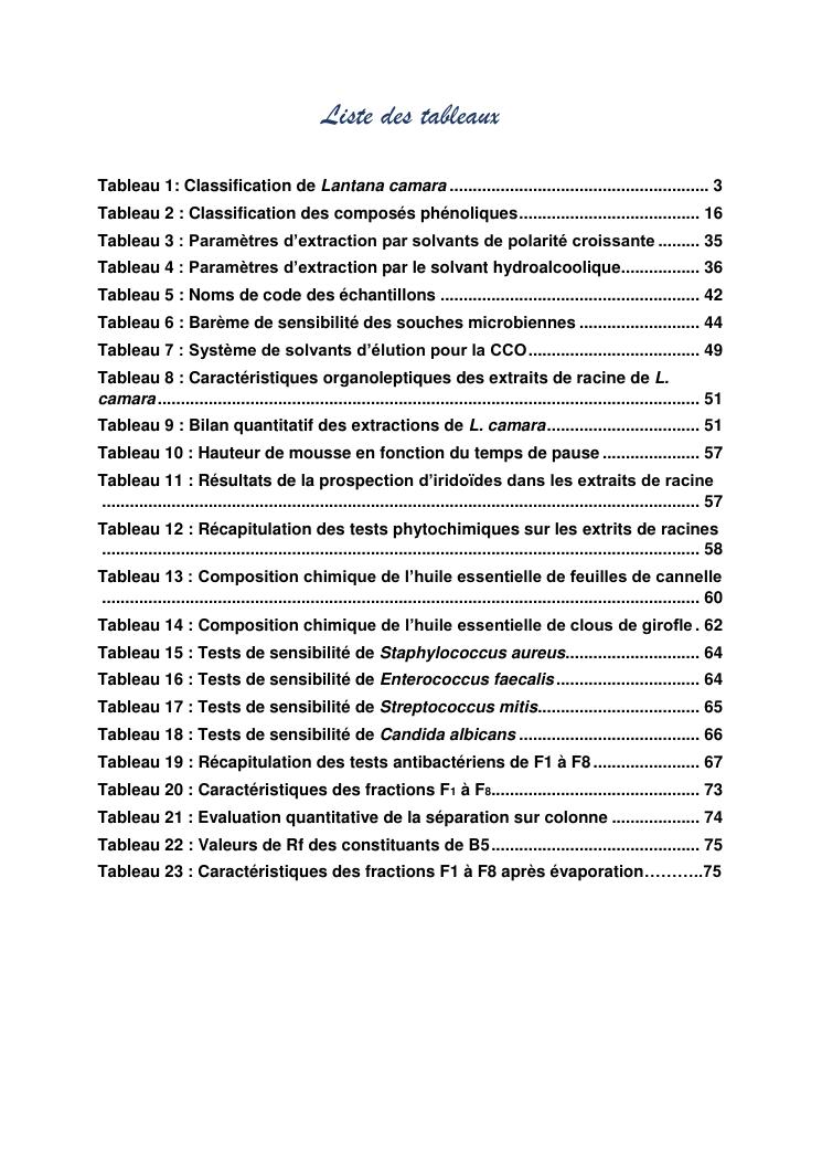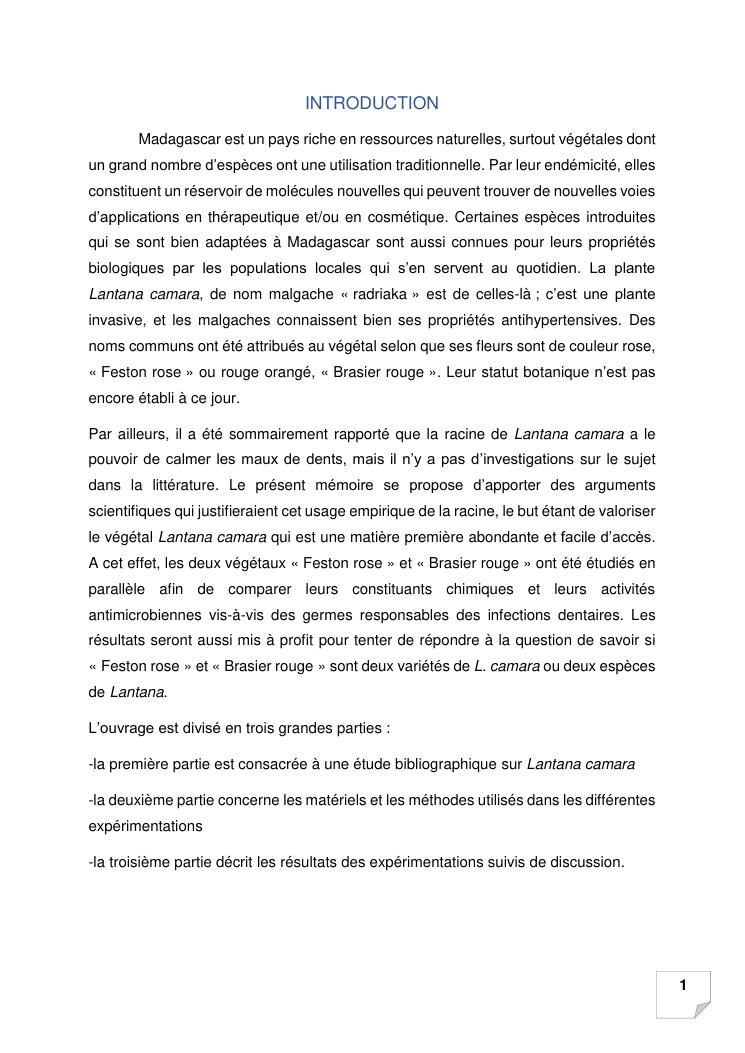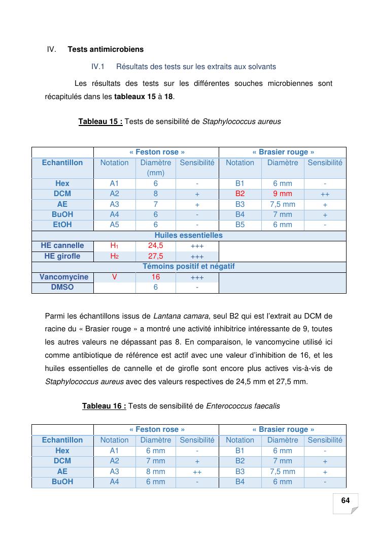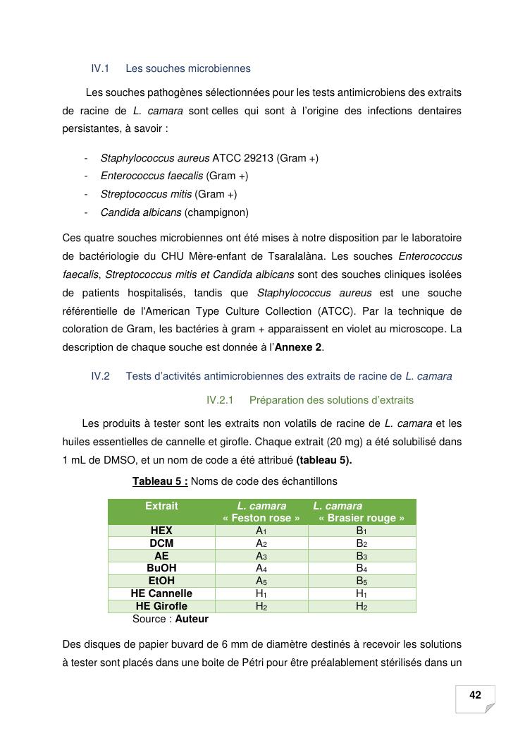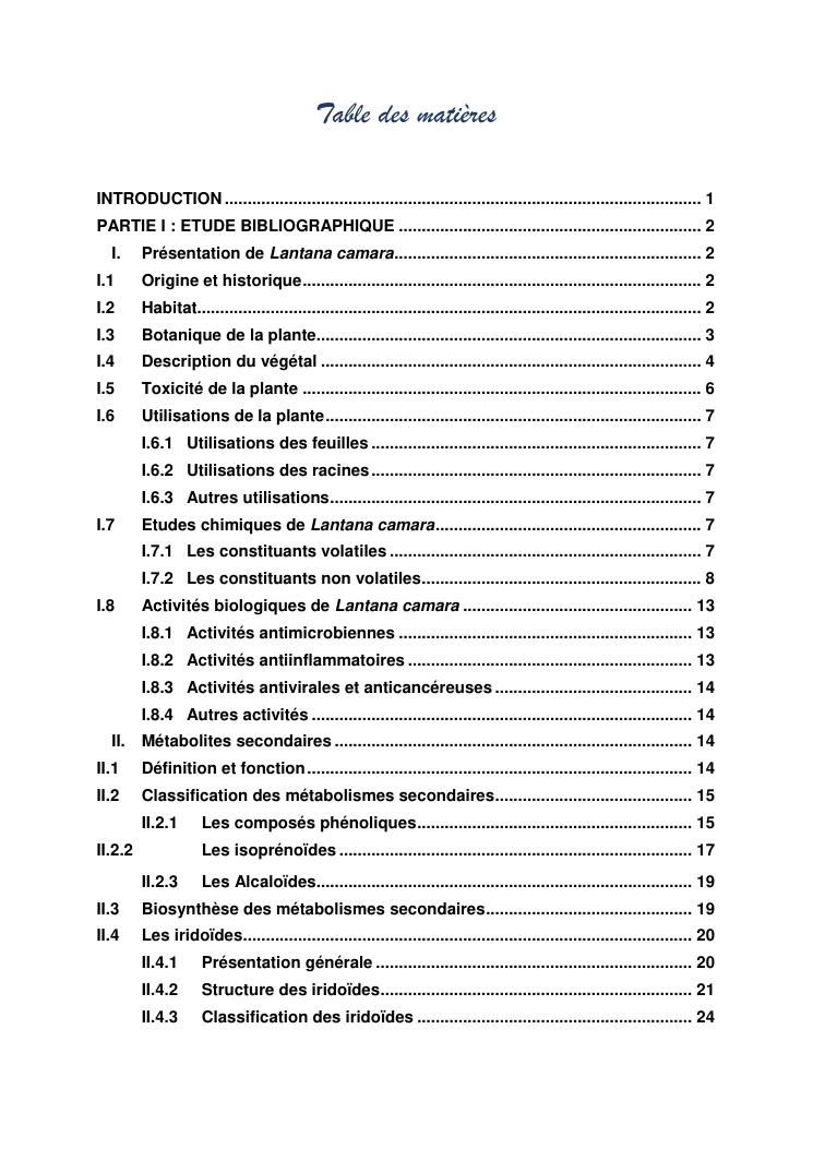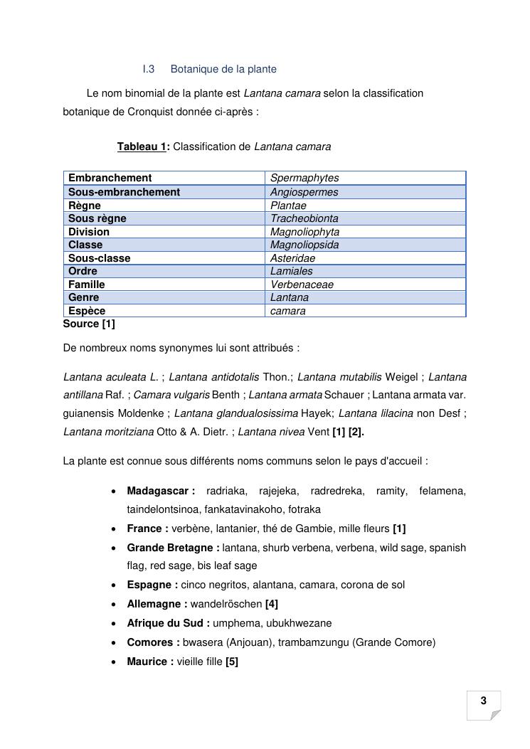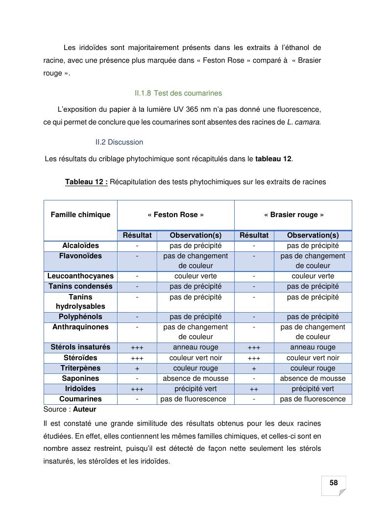 etude phytochi/ique et activites antimicrobiennes des extraits de la racine de lantana camara (verbenaceae