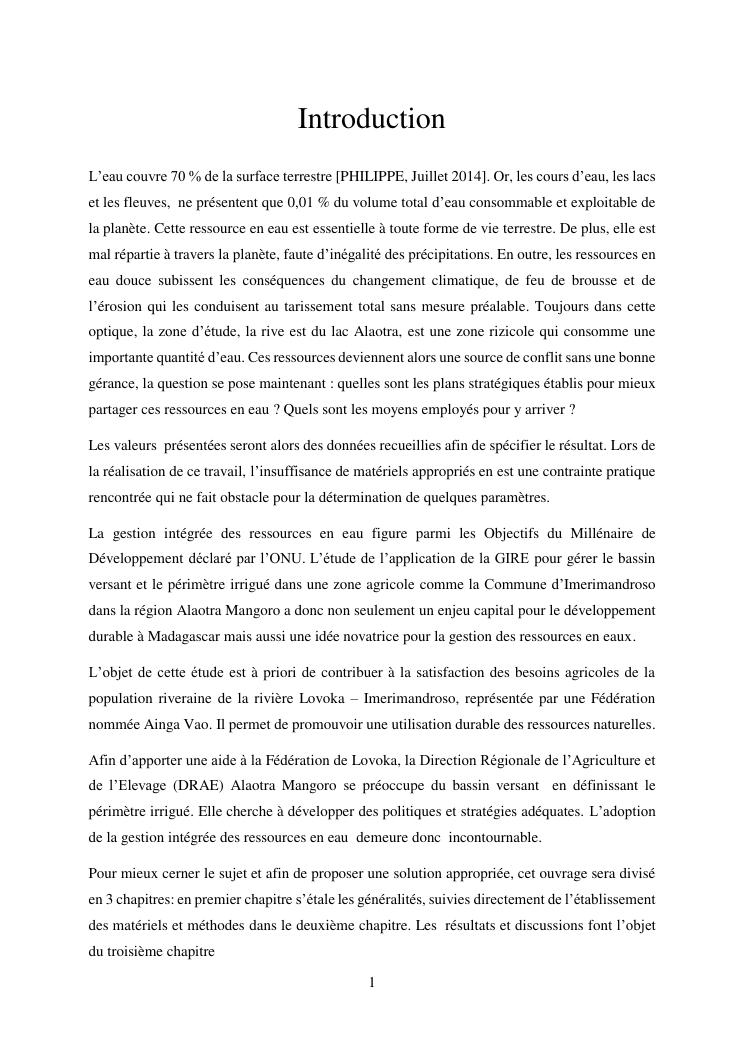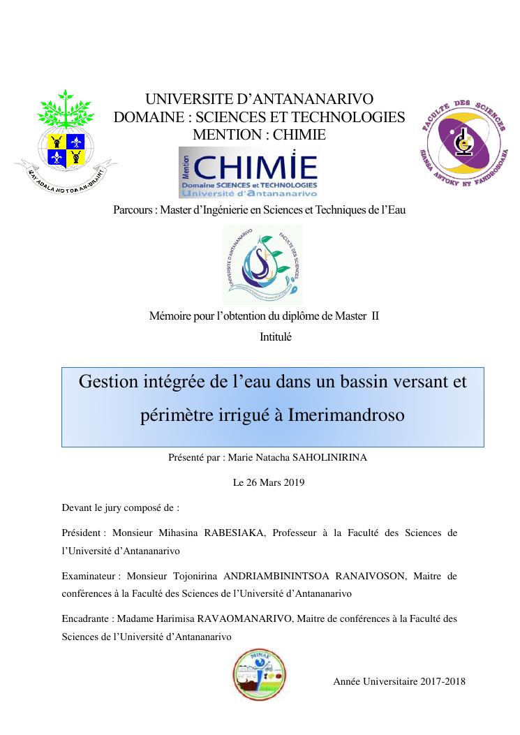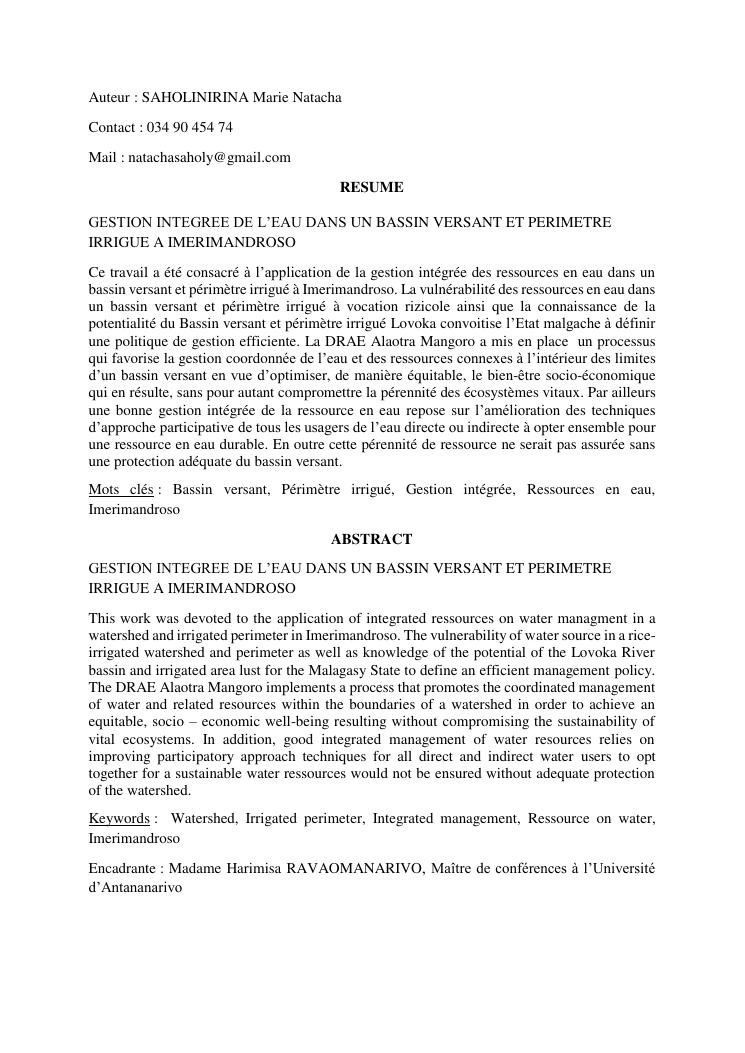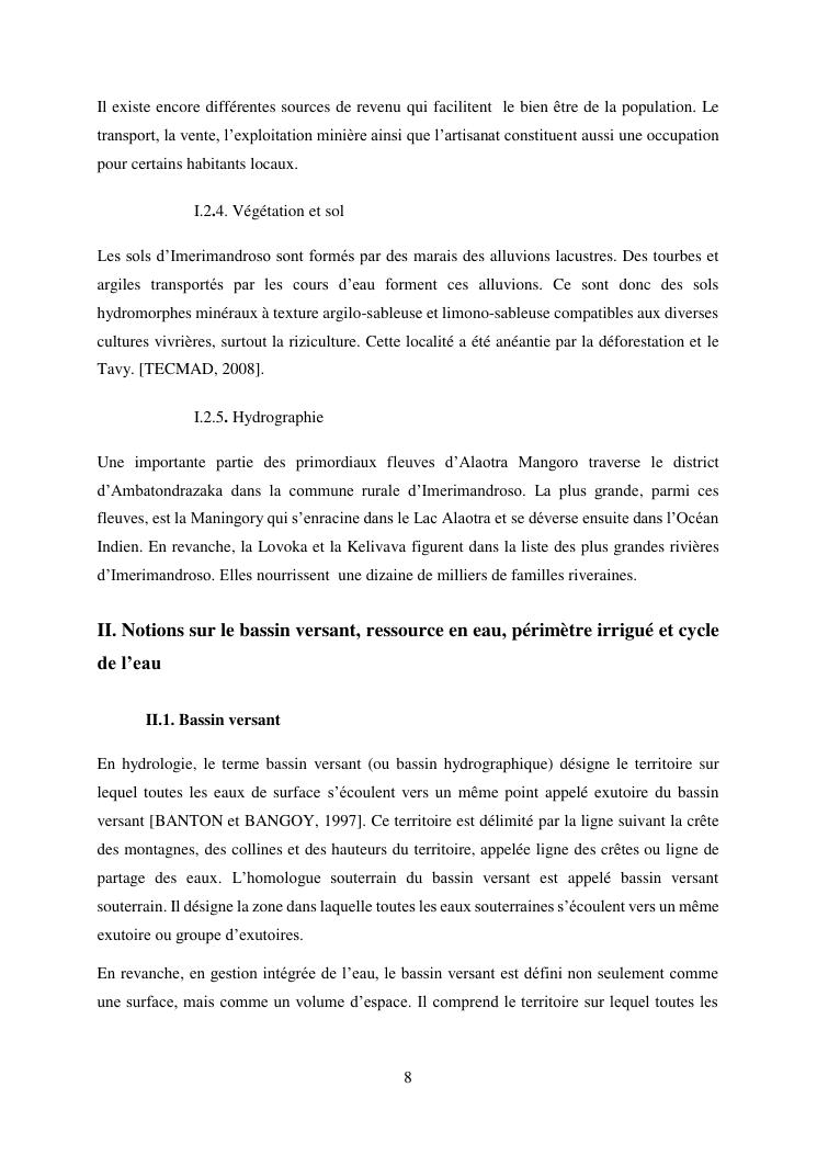 gestion intégrée de l'eau dans un bassin versant et périmètre irrigué à imerimandroso