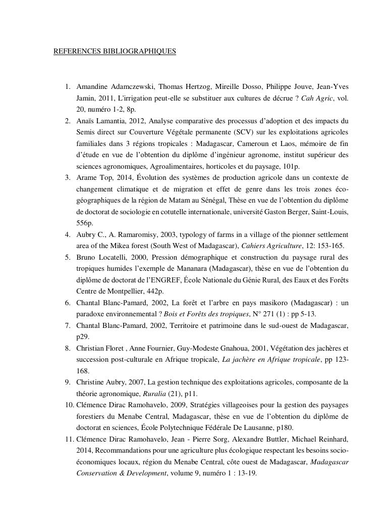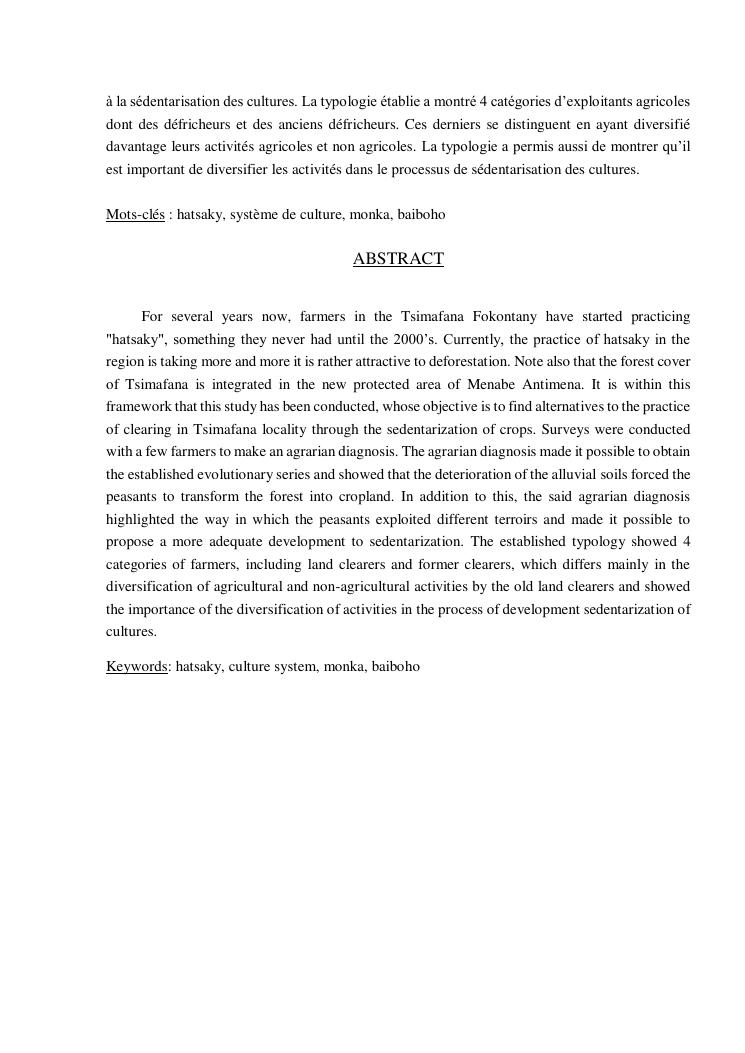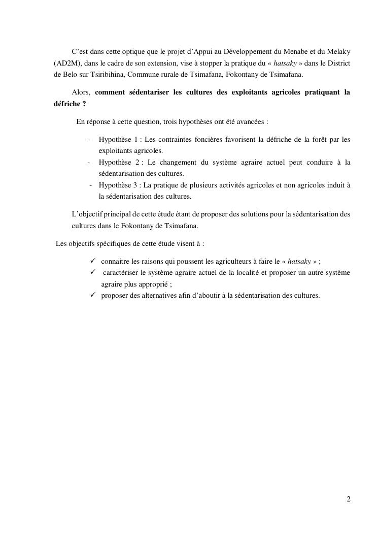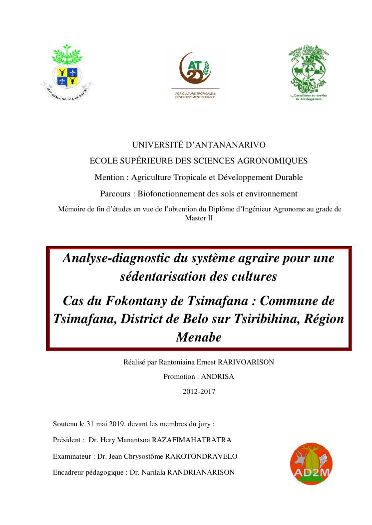 analyse-diagnostic du système agraire pour une sédentarisation des cultures cas du fokontany de tsimafana : commune de tsimafana, district de belo sur tsiribihina, région menabe