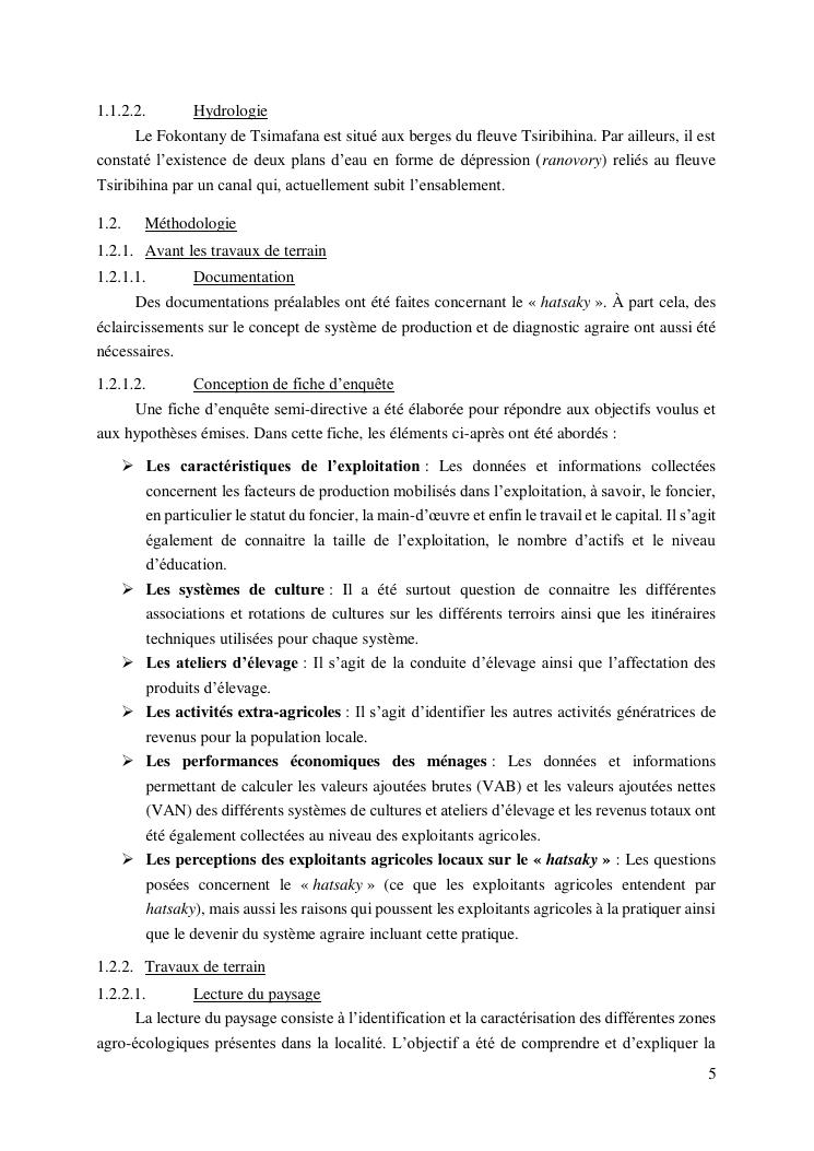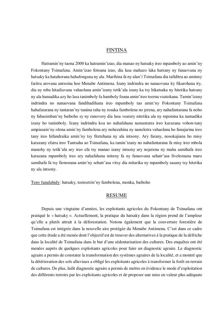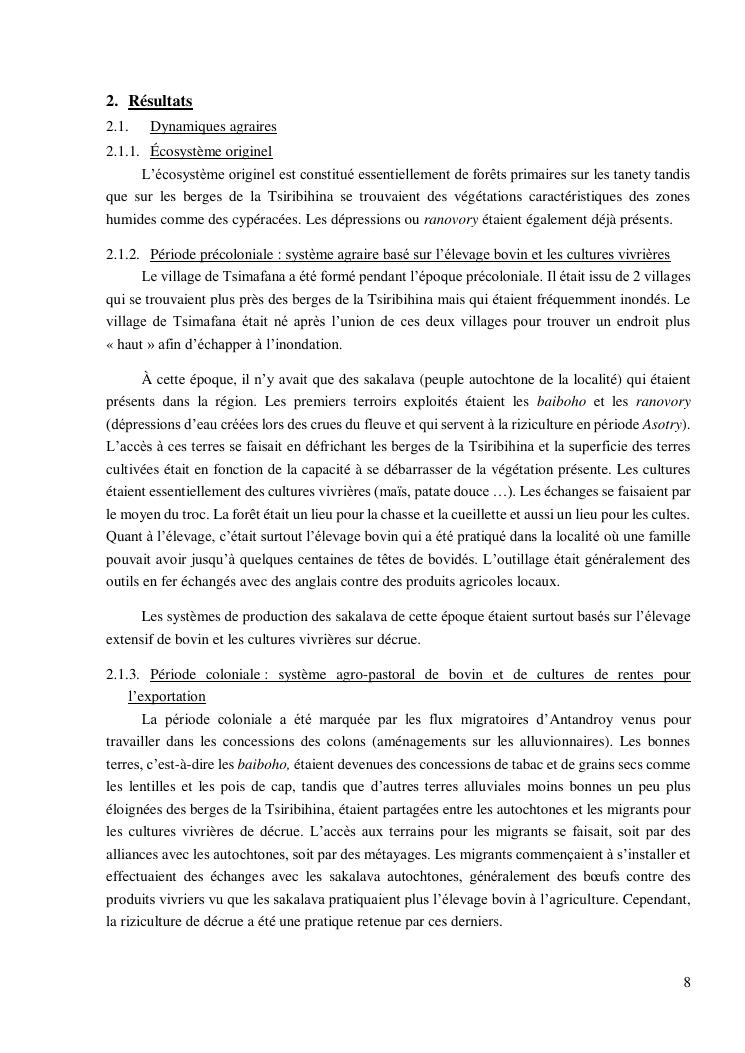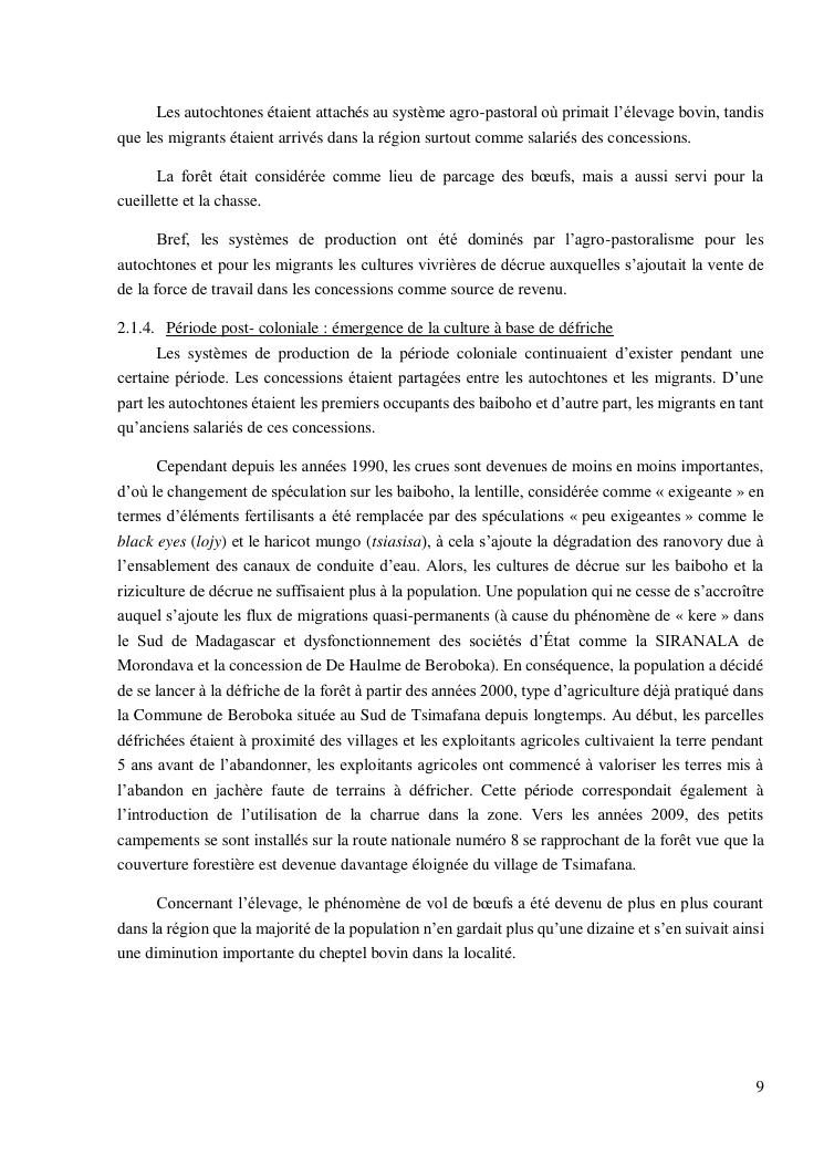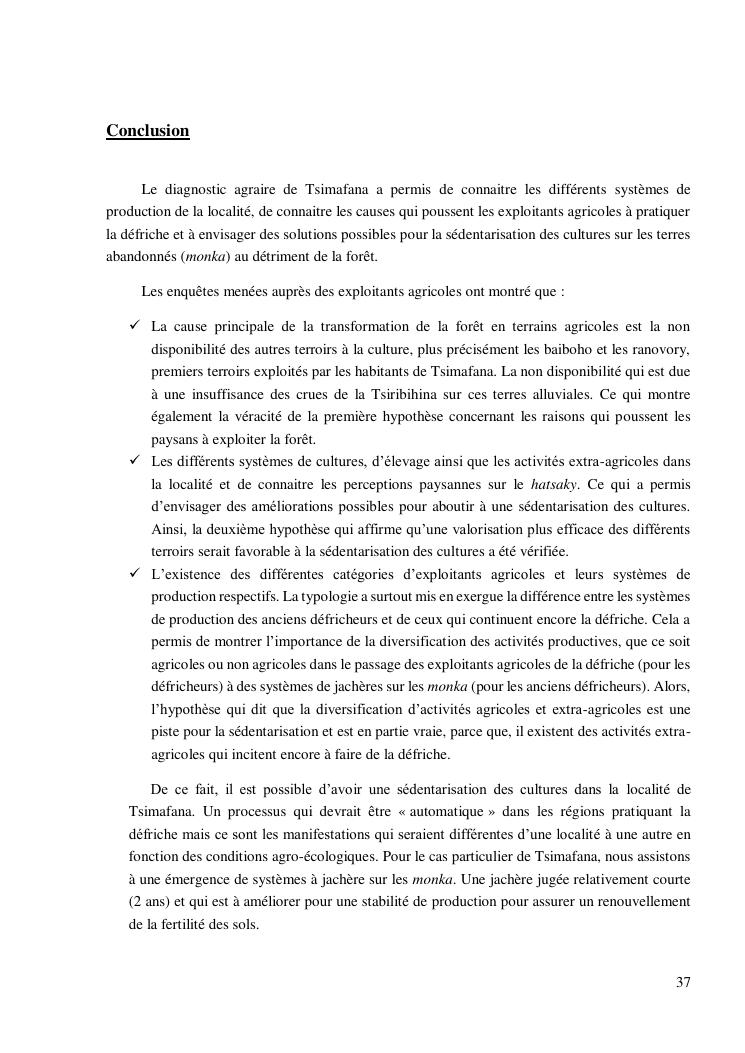 analyse-diagnostic du système agraire pour une sédentarisation des cultures cas du fokontany de tsimafana : commune de tsimafana, district de belo sur tsiribihina, région menabe