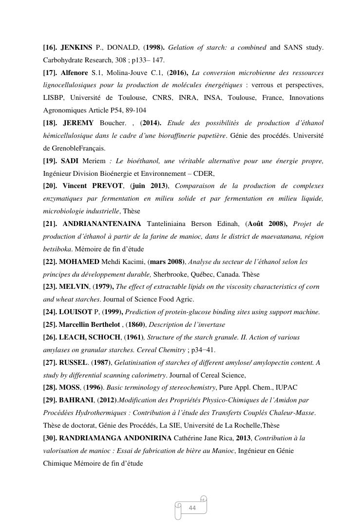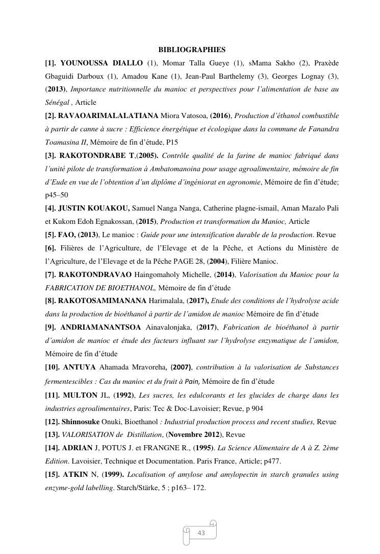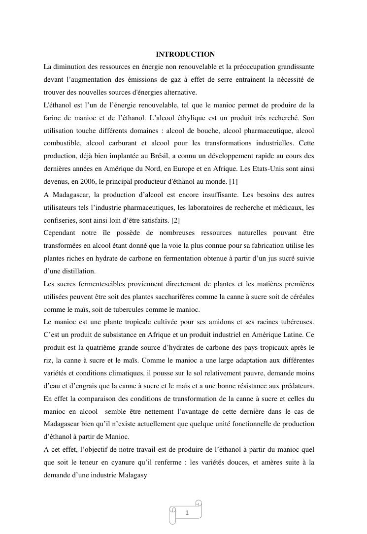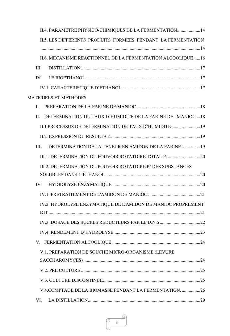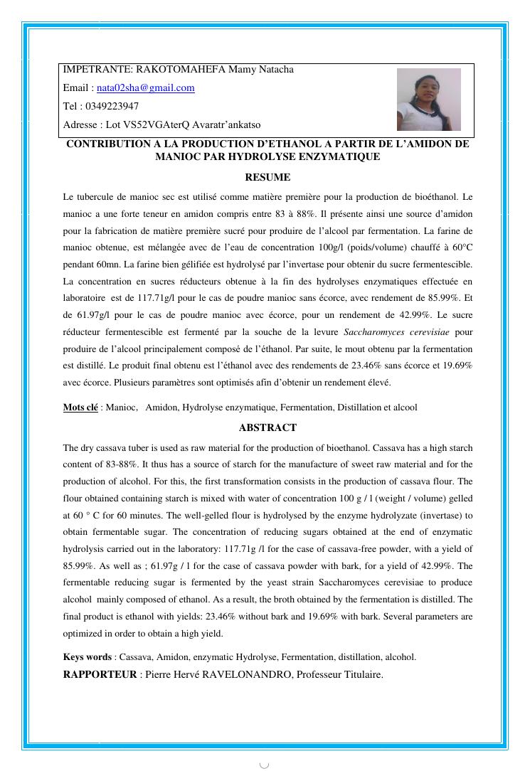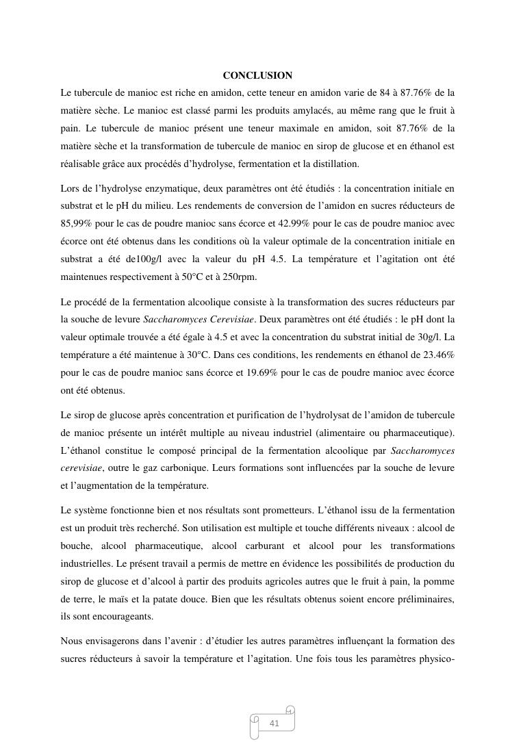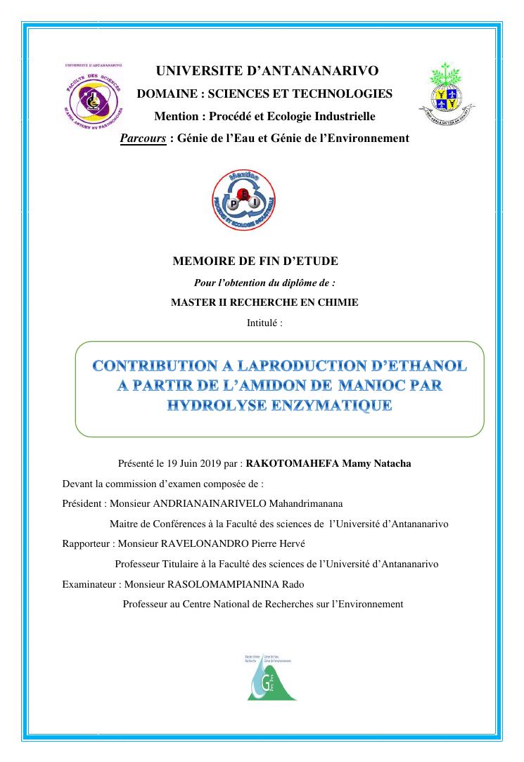 contribution a la production d'ethanol a partir de l'amidon de manioc par hydrolyse enzymatique