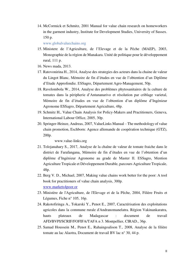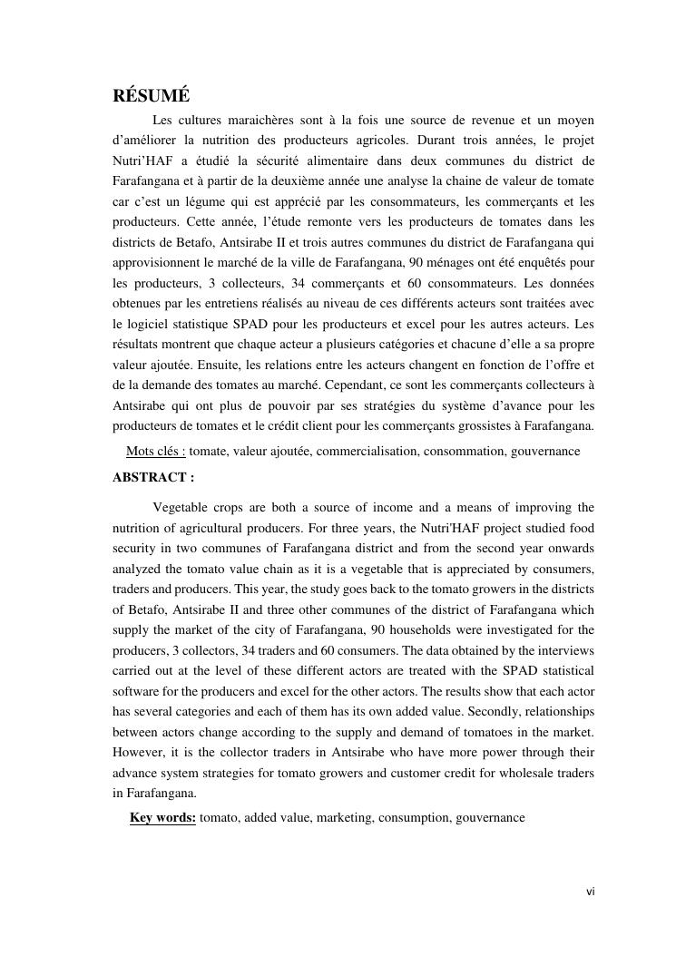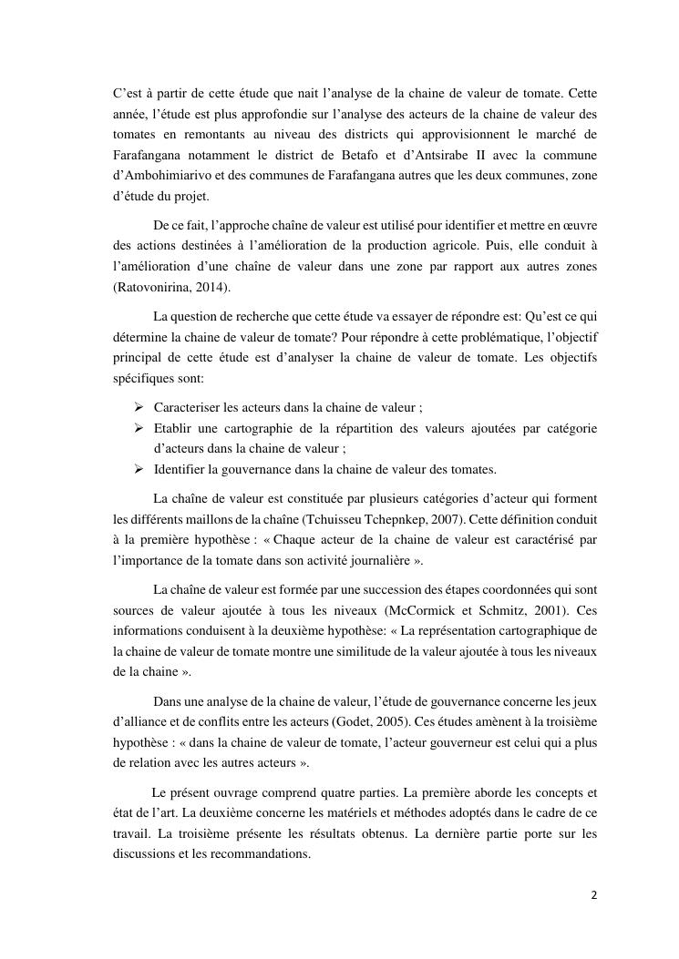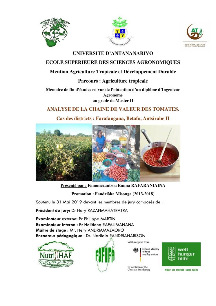 analyse de la chaine de valeur des tomates. cas des districts : farafangana, betafo, antsirabe ii