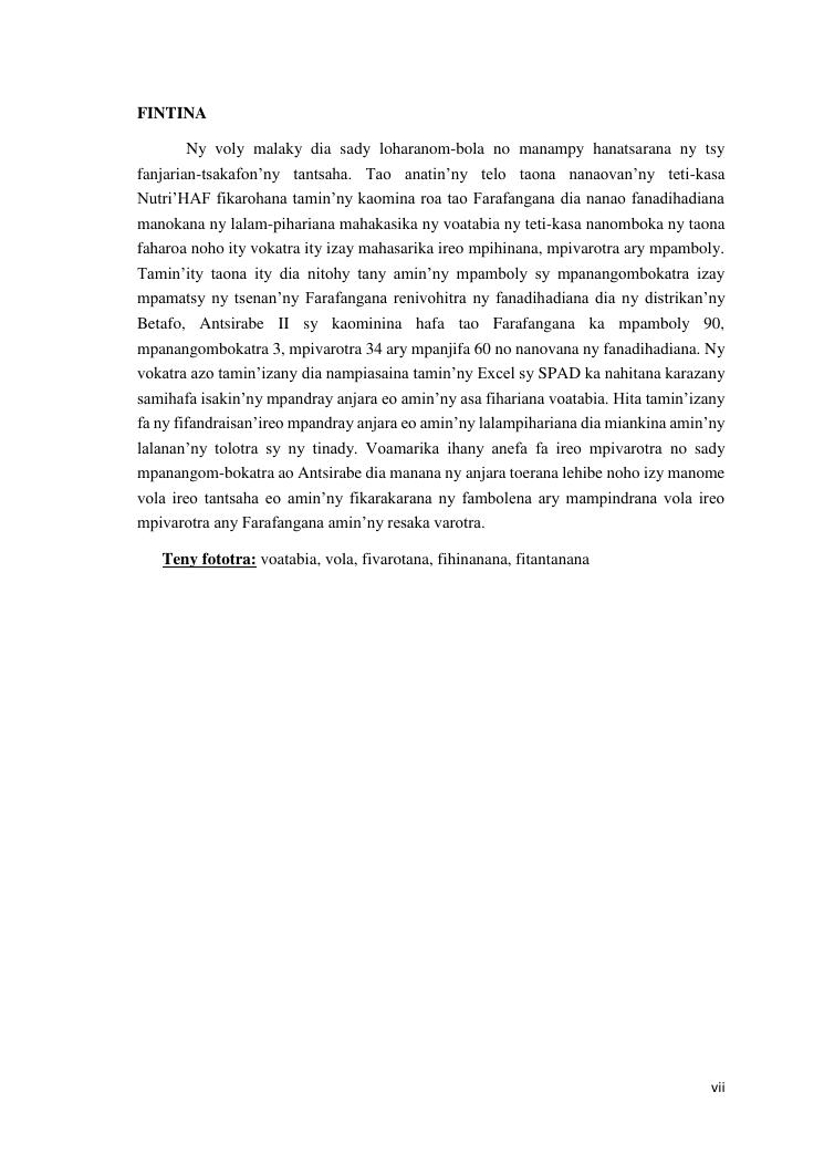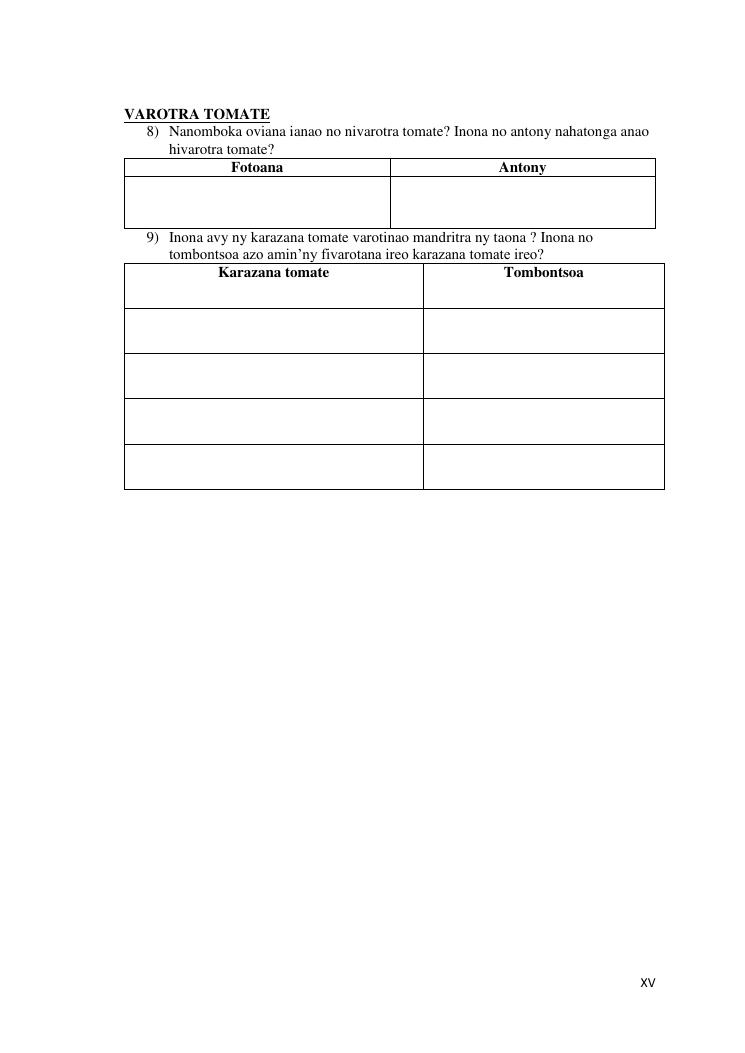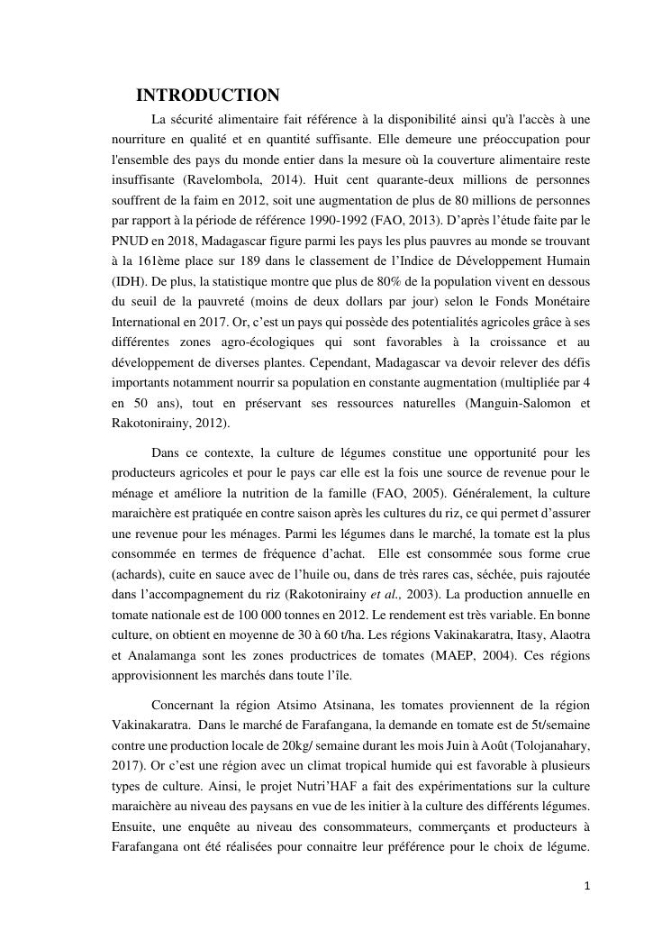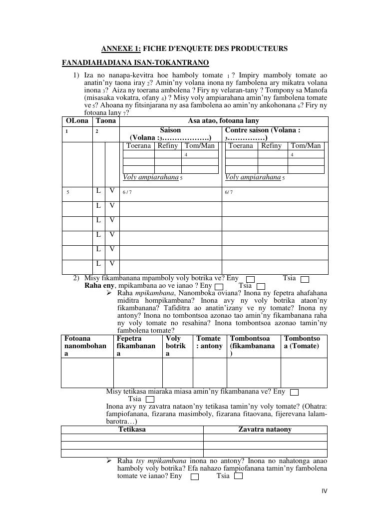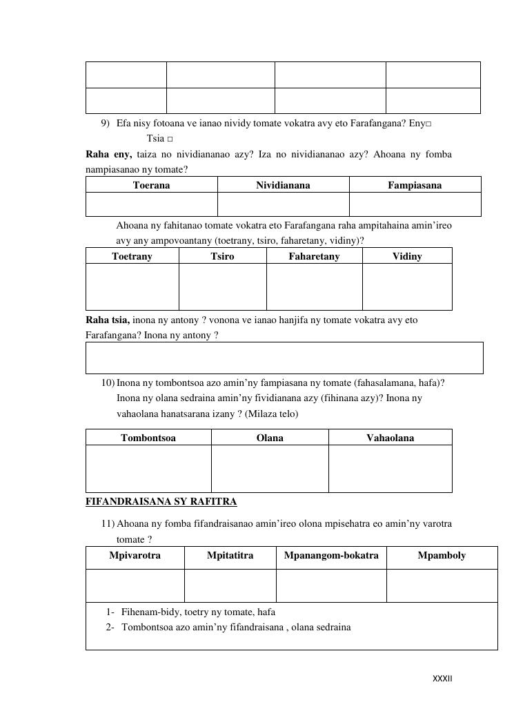 analyse de la chaine de valeur des tomates. cas des districts : farafangana, betafo, antsirabe ii