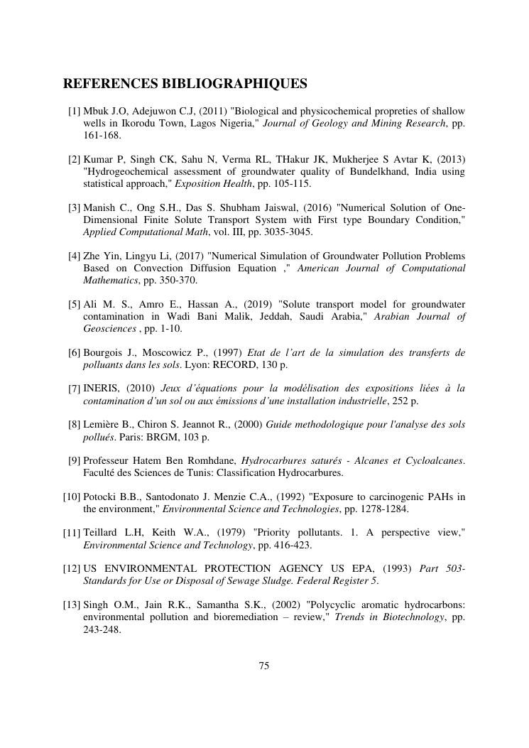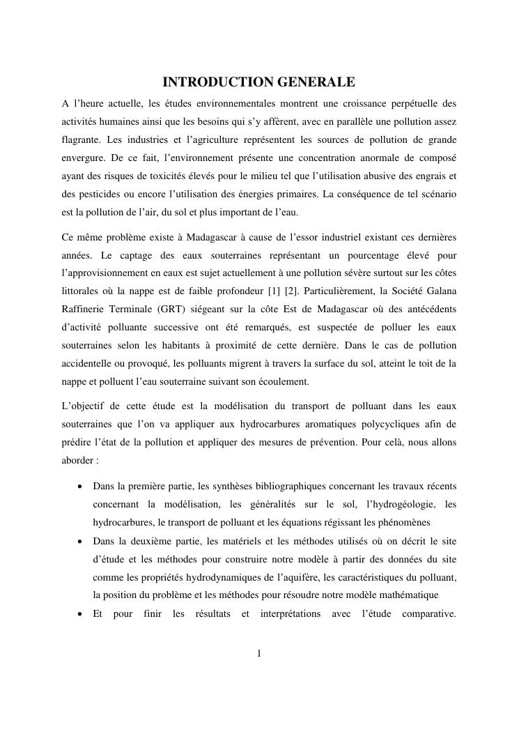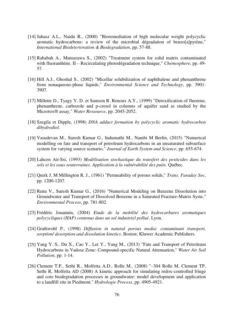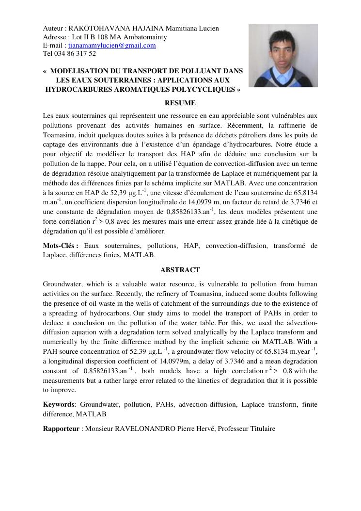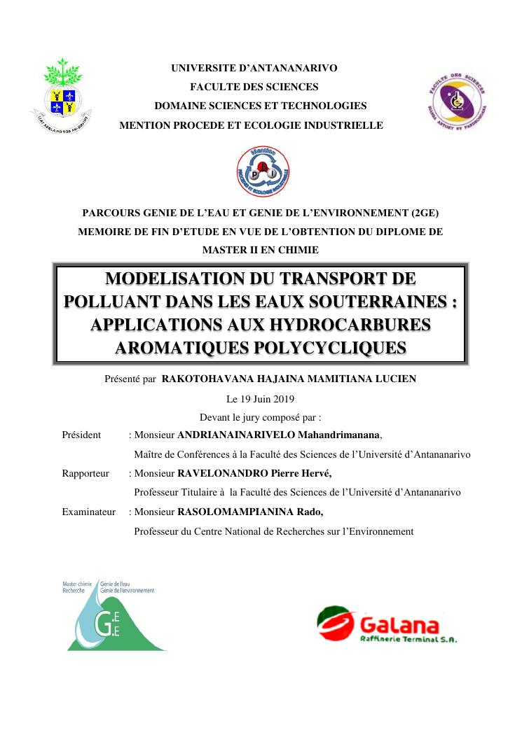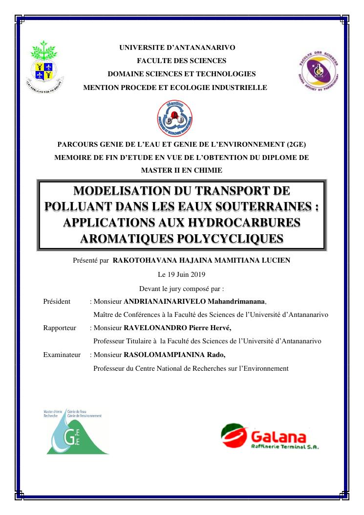 modelisation du transport de polluant dans les eaux souterraines : applications aux hydrocarbures aromatiques polycycliques
