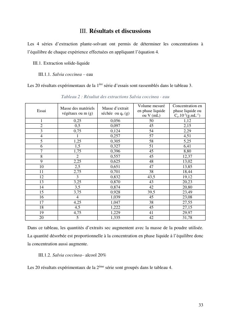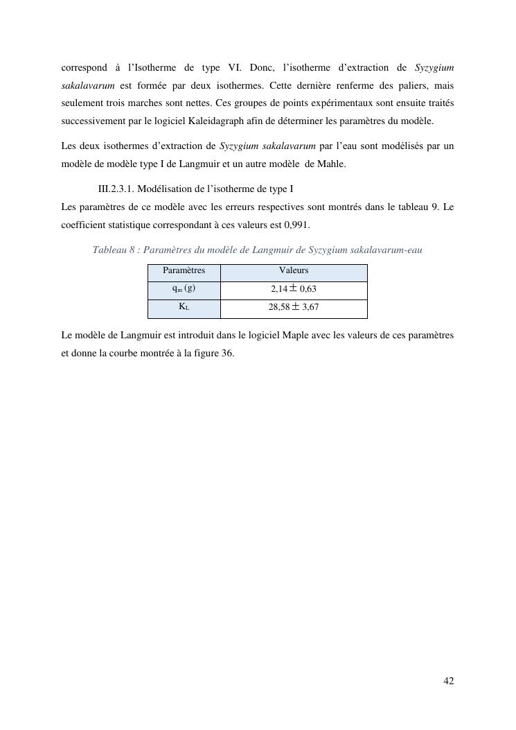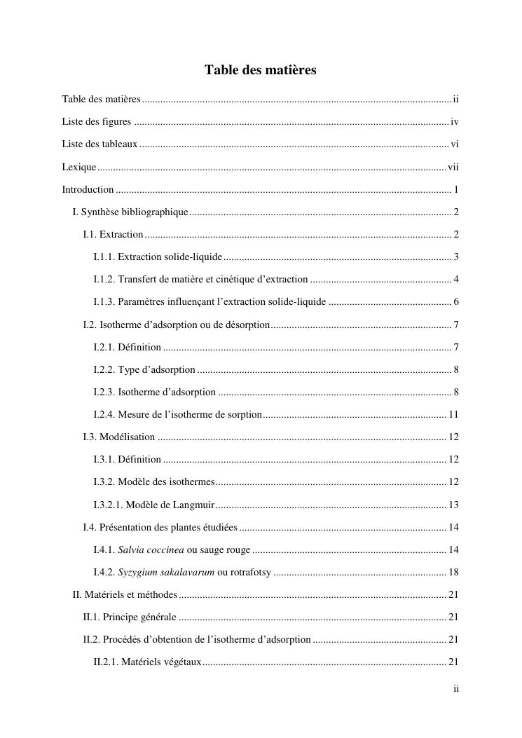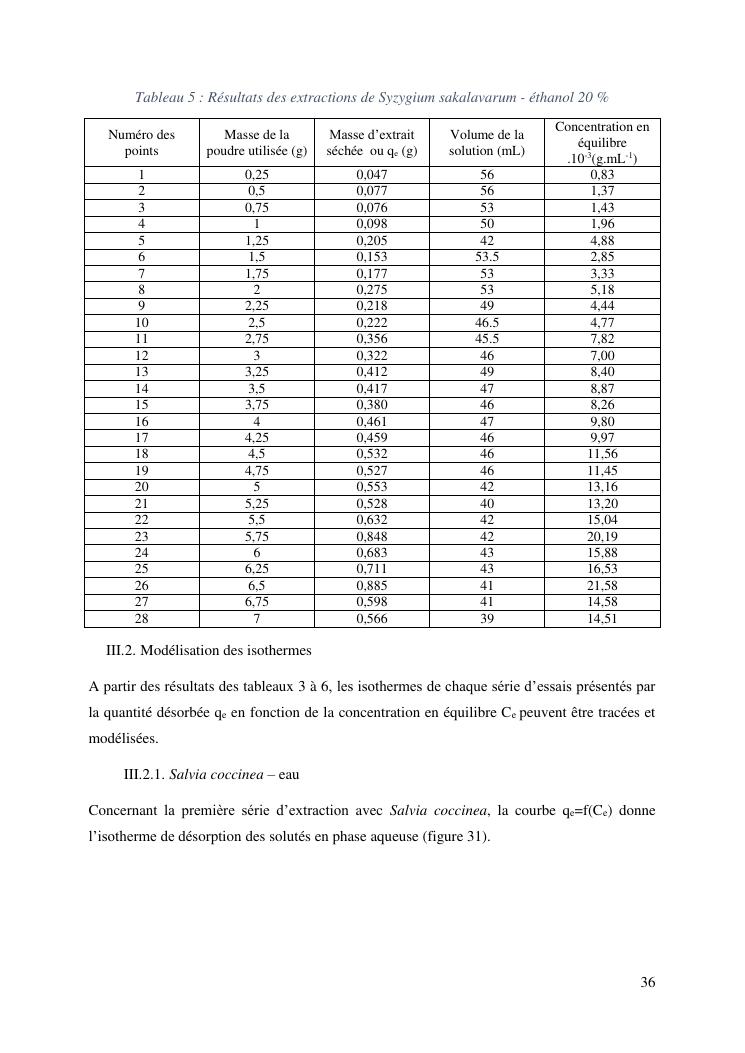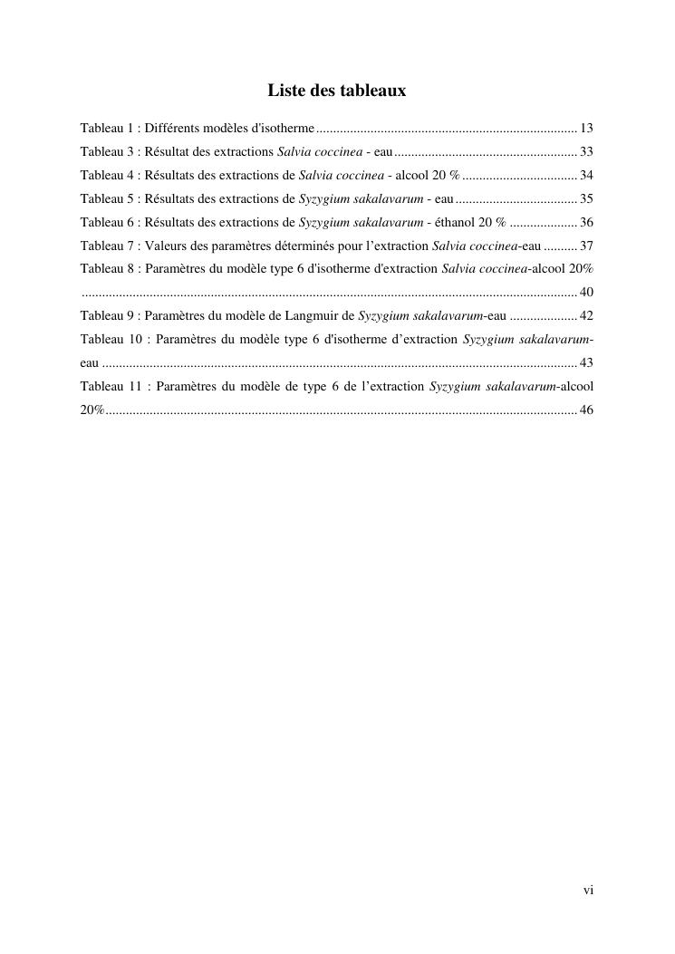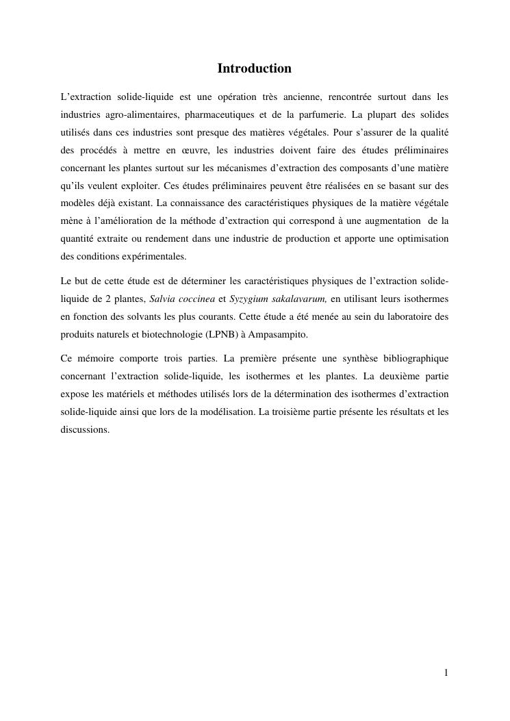 etude de l'extraction solide-liquide à partir des deux plantes salvia coccinea et syzygium sakalavarum : modélisation des isothermes