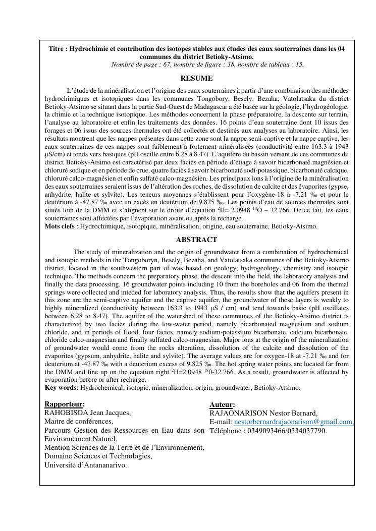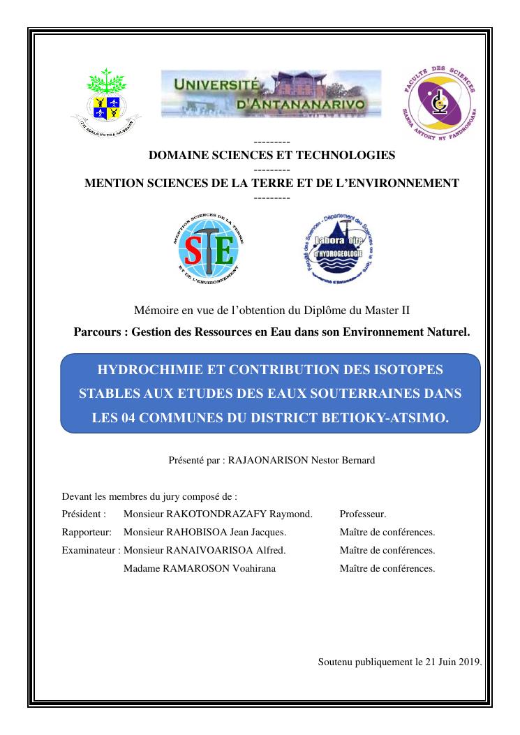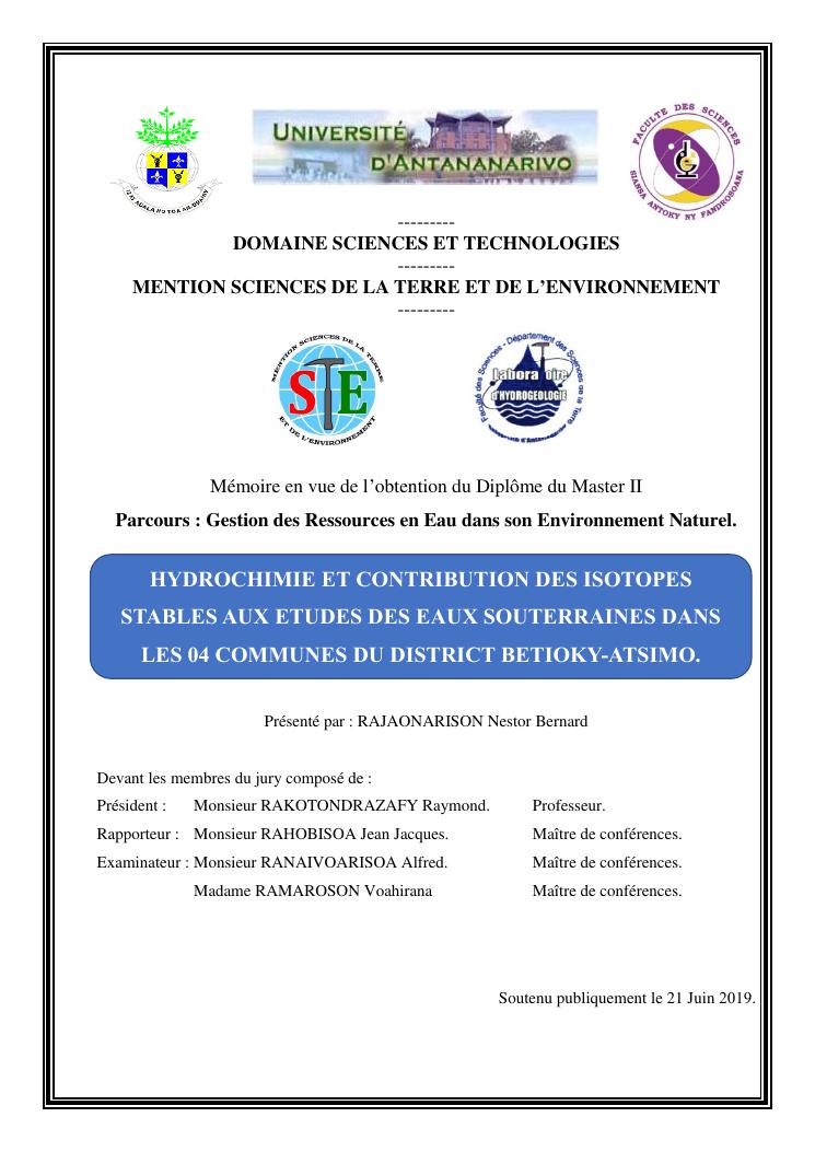 hydrochimie et contribution des isotopes stables aux etudes des eaux souterraines dans les 04 communes du district betioky-atsimo
