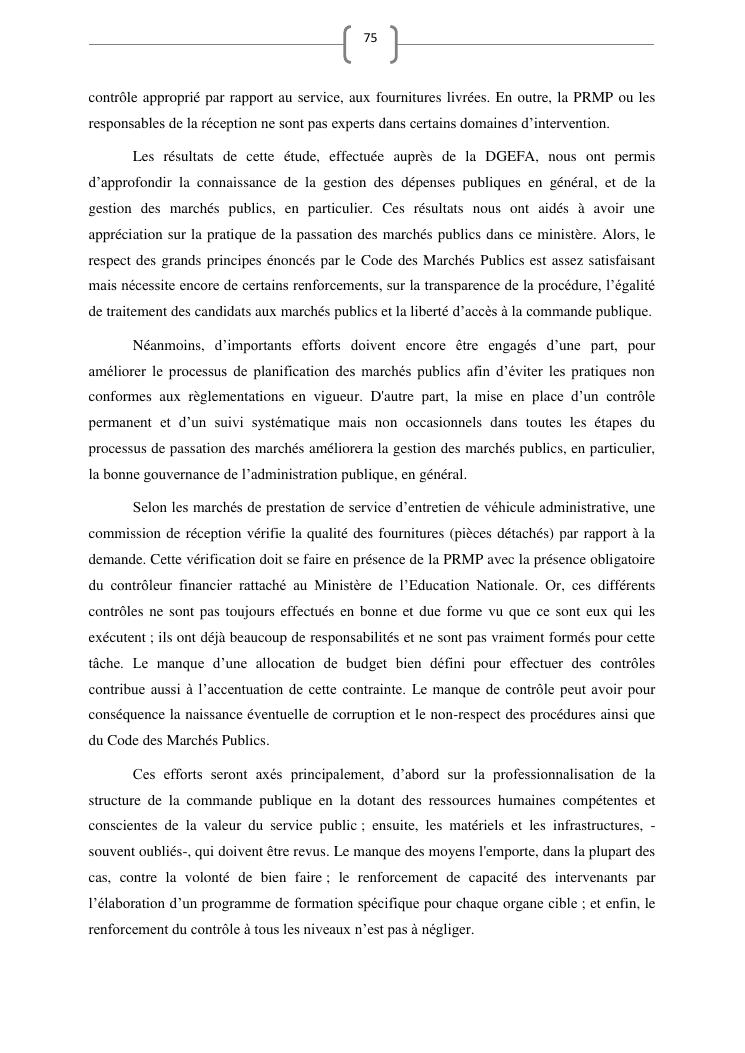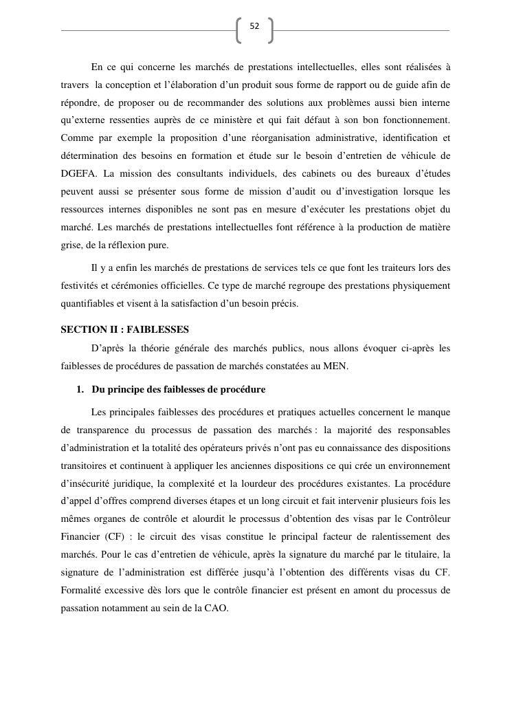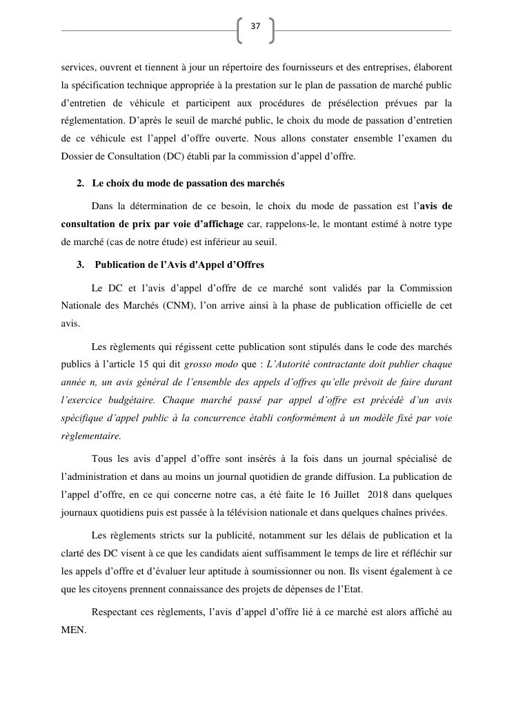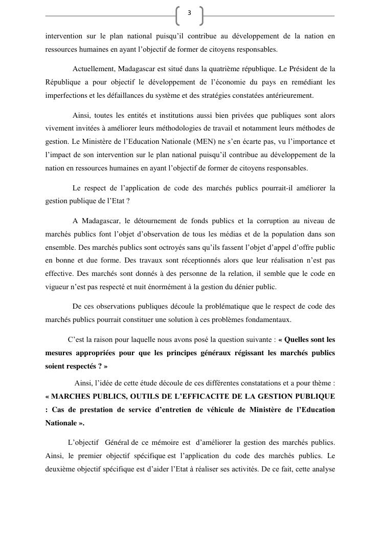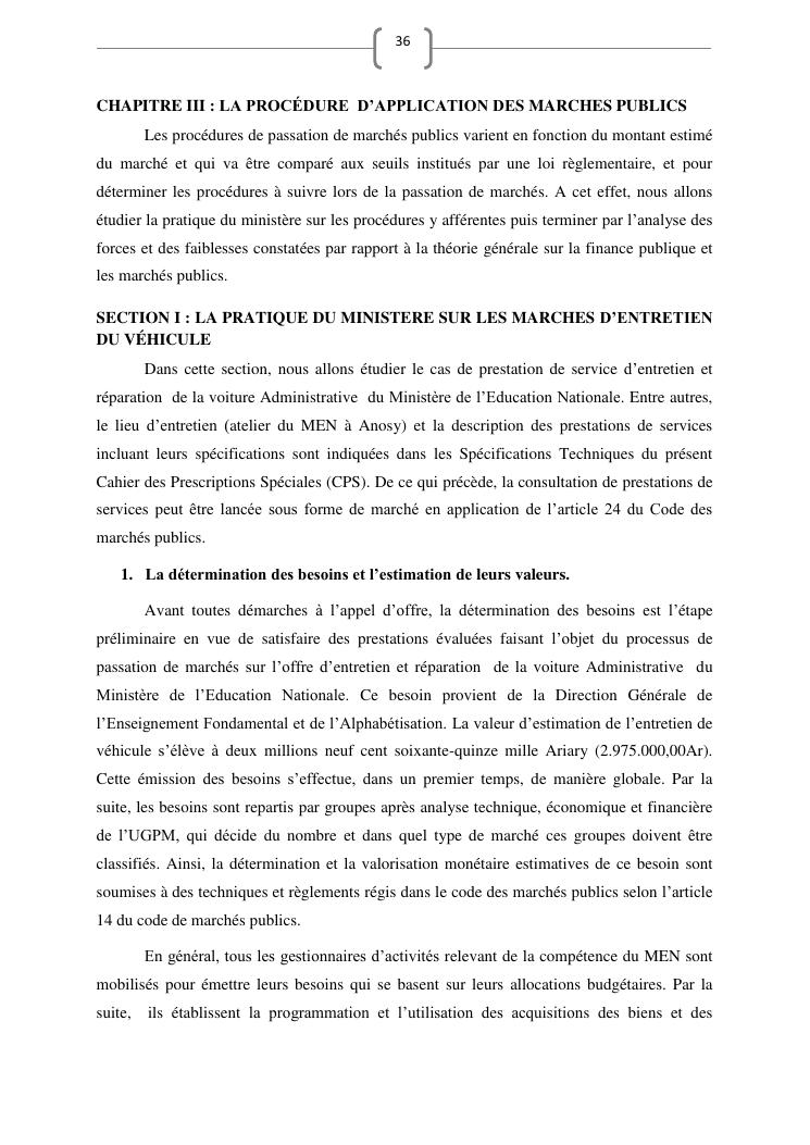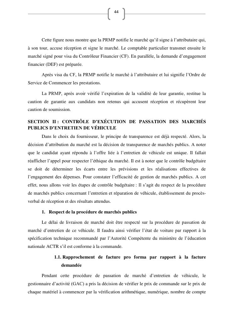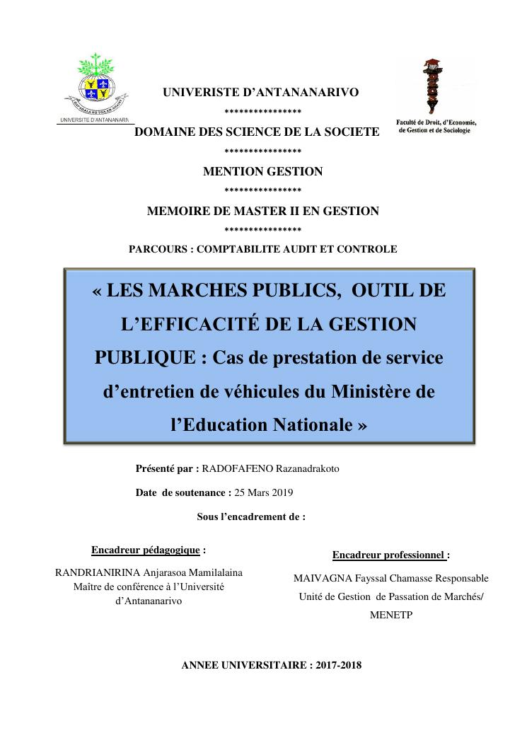 les marches publics, outil de l'efficacité de la gestion publique : cas de prestation de service d'entretien de véhicules du ministère de l'education nationale
