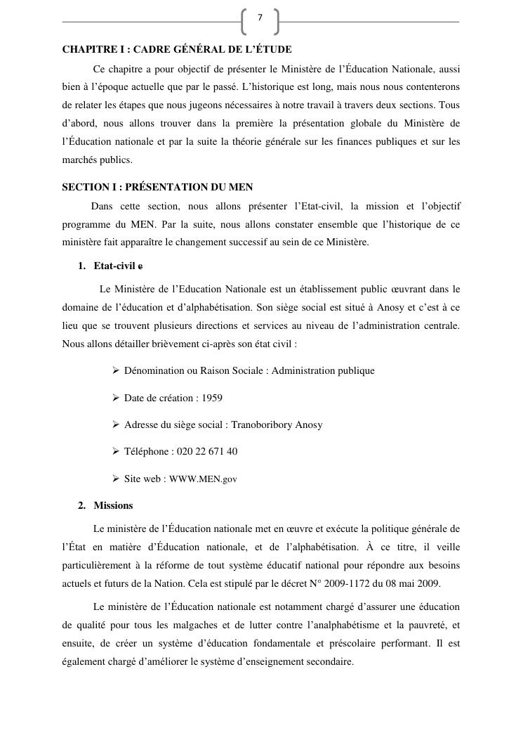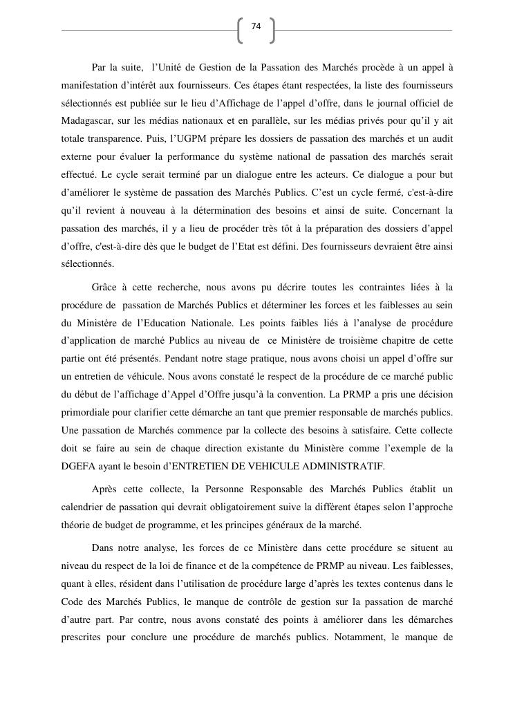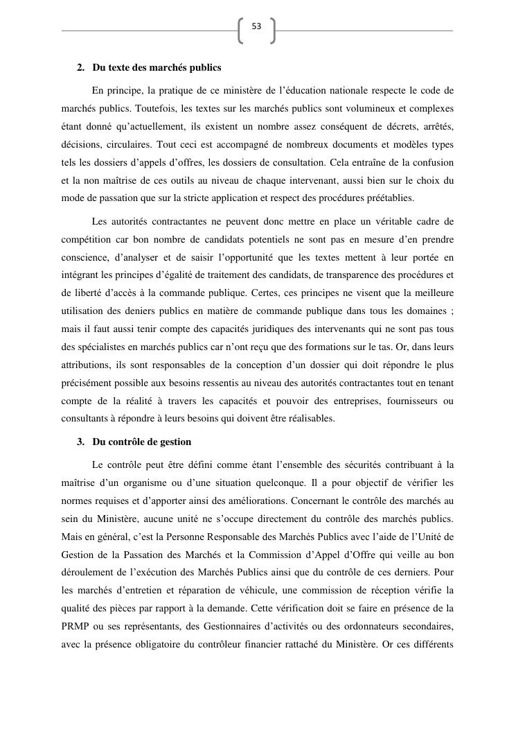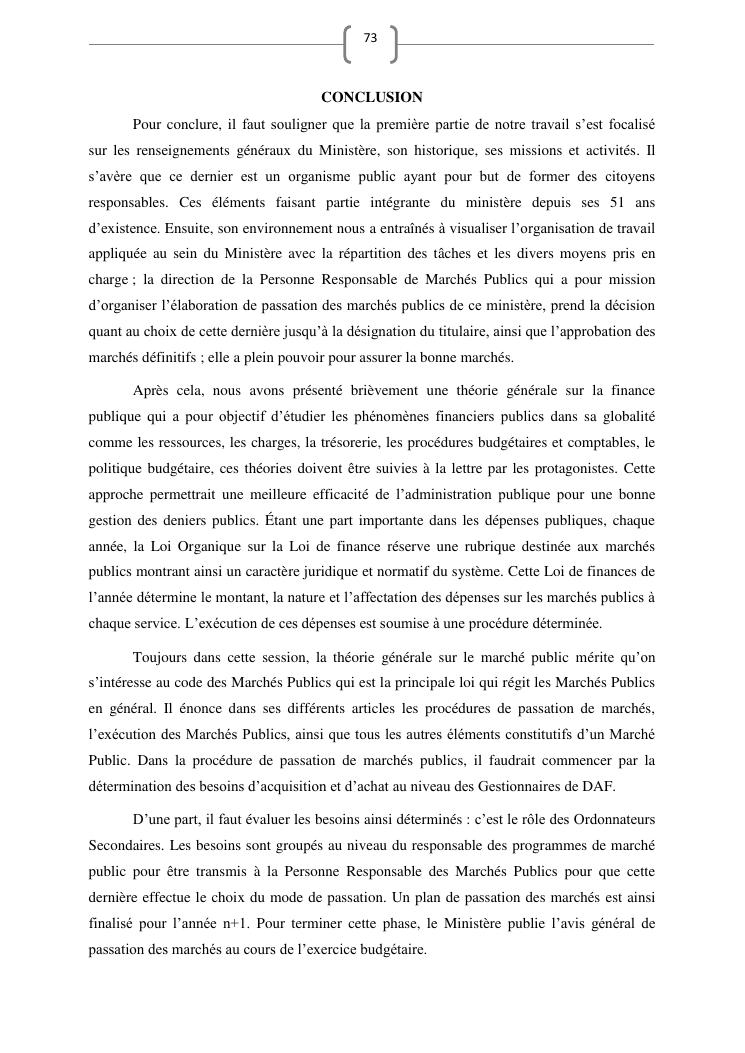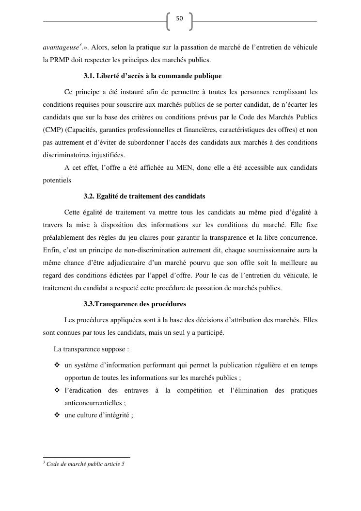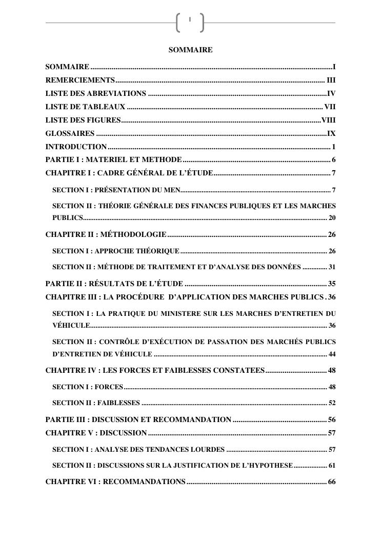 les marches publics, outil de l'efficacité de la gestion publique : cas de prestation de service d'entretien de véhicules du ministère de l'education nationale