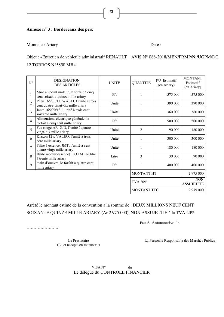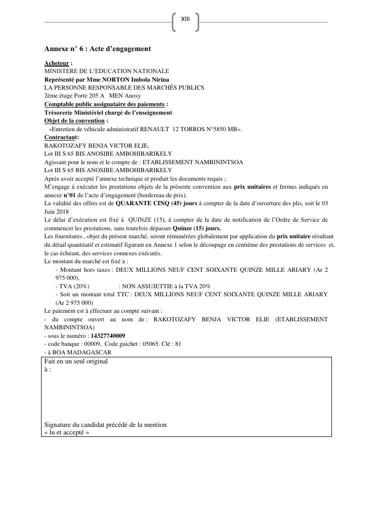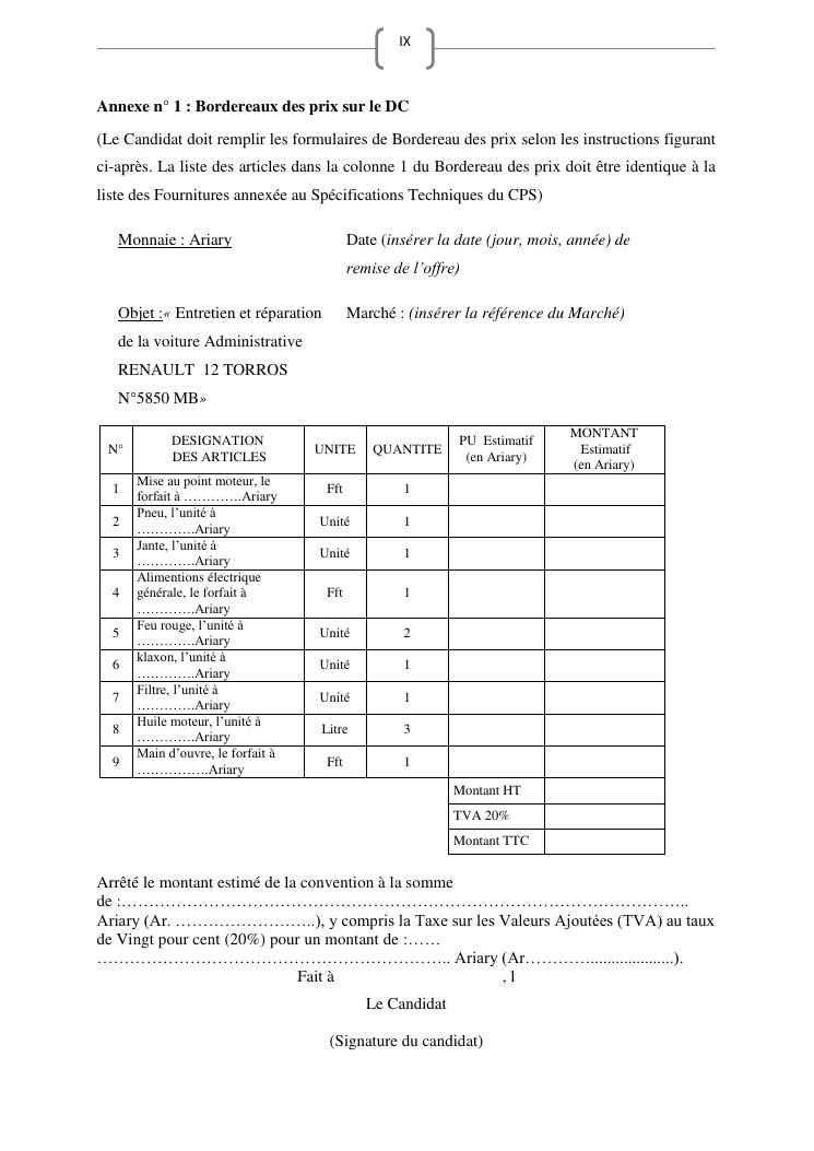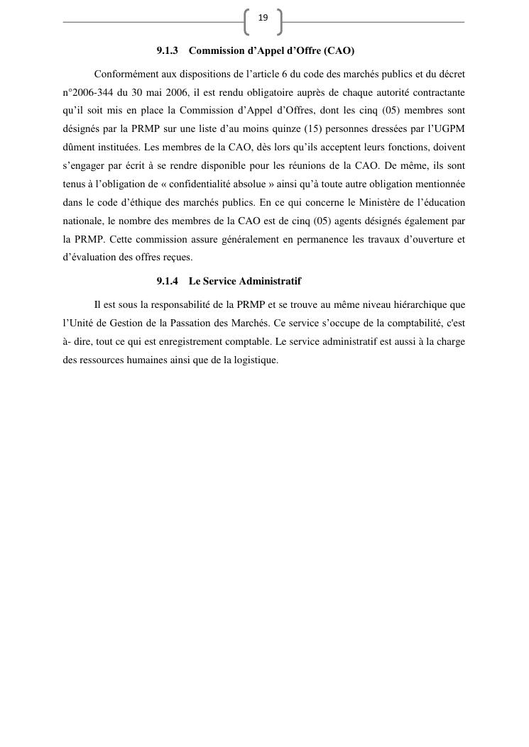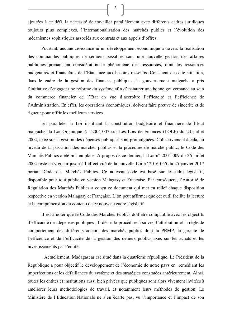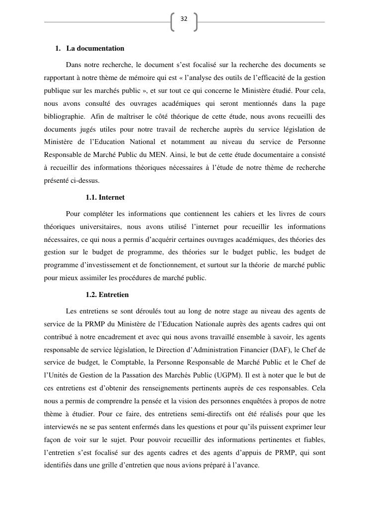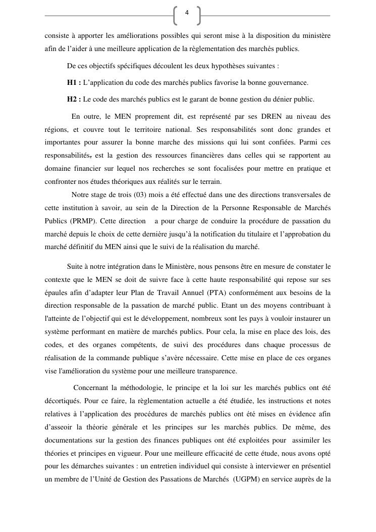 les marches publics, outil de l'efficacité de la gestion publique : cas de prestation de service d'entretien de véhicules du ministère de l'education nationale